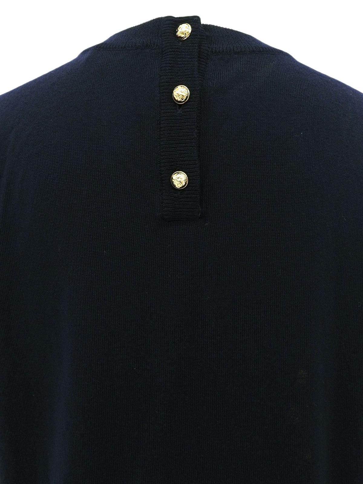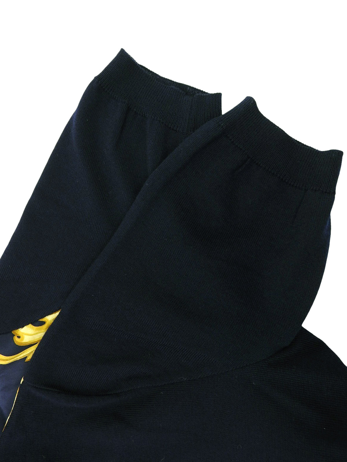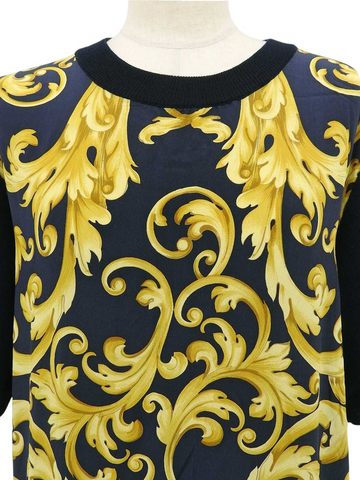 ウールシルクコンビデザイン半袖トップス ネイビー