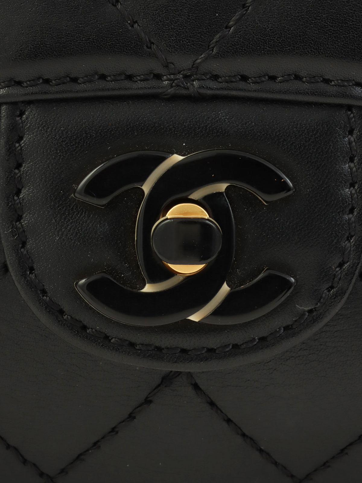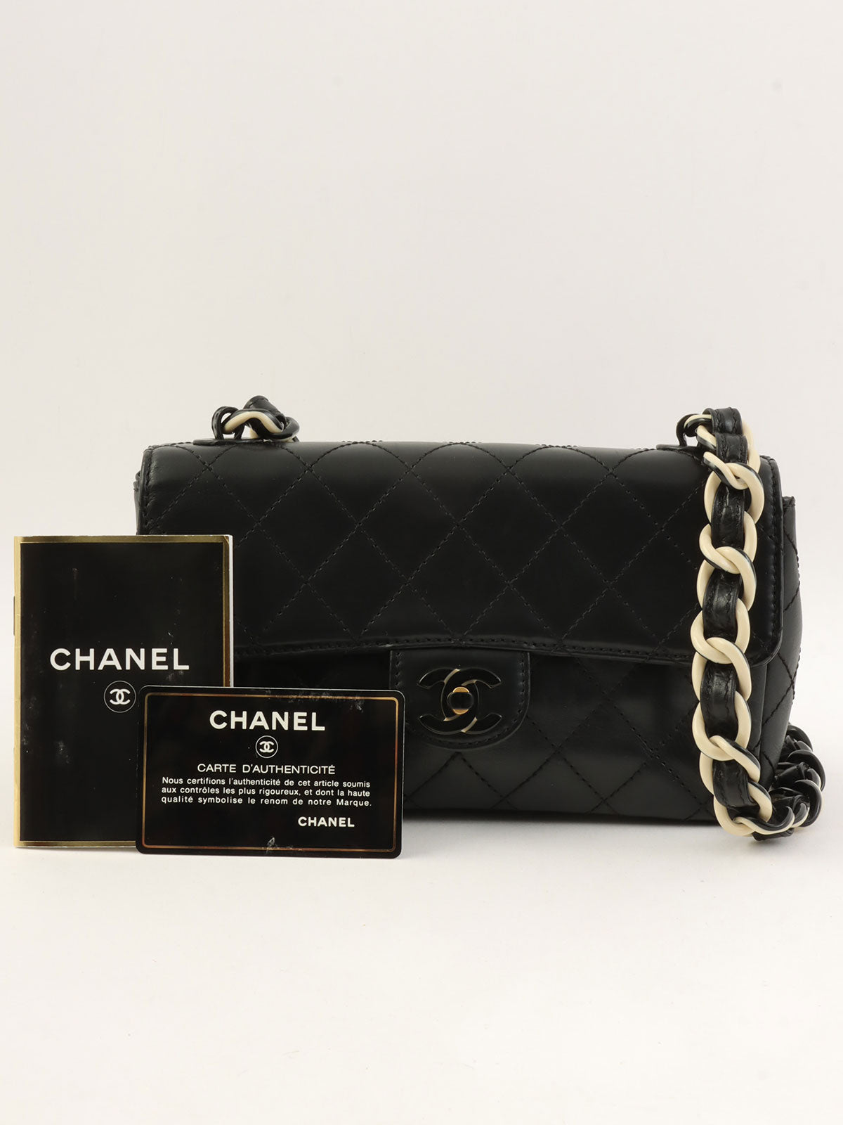 2000年頃製 マトラッセステッチCCターンロックプラスティックチェーンショルダーバッグ ブラック