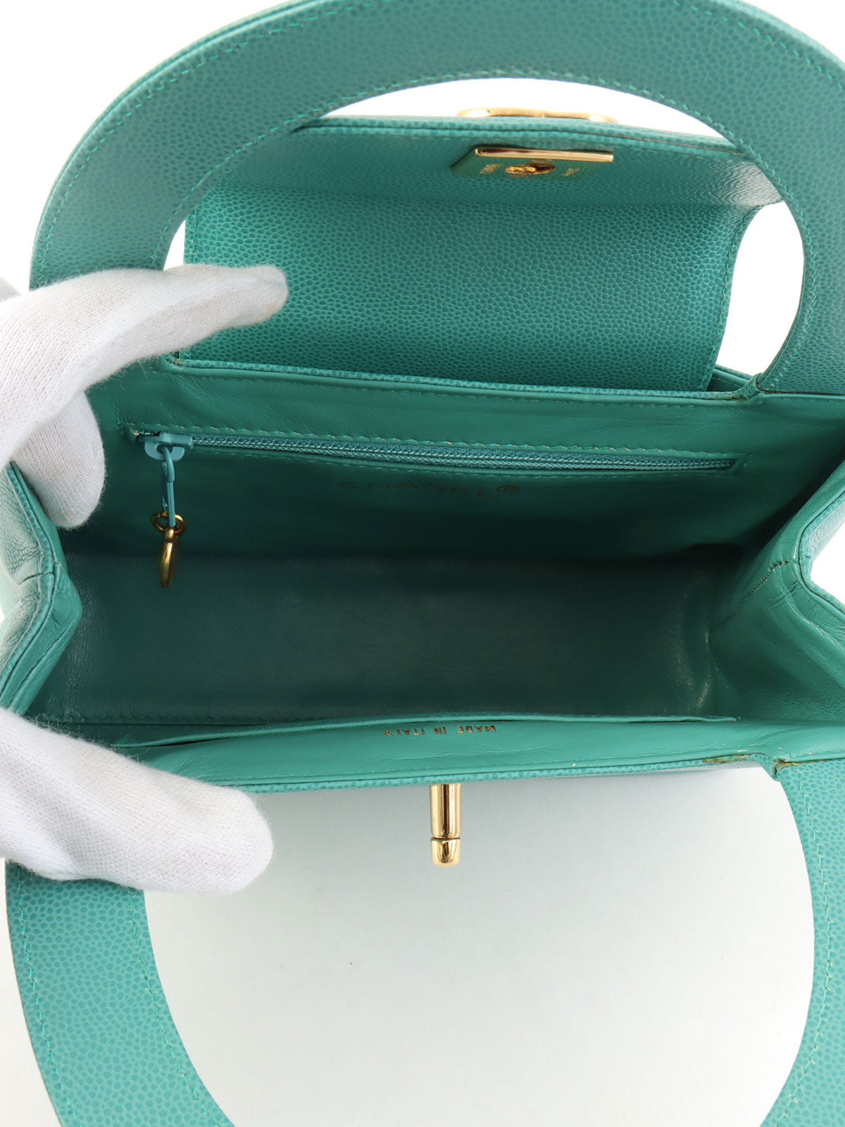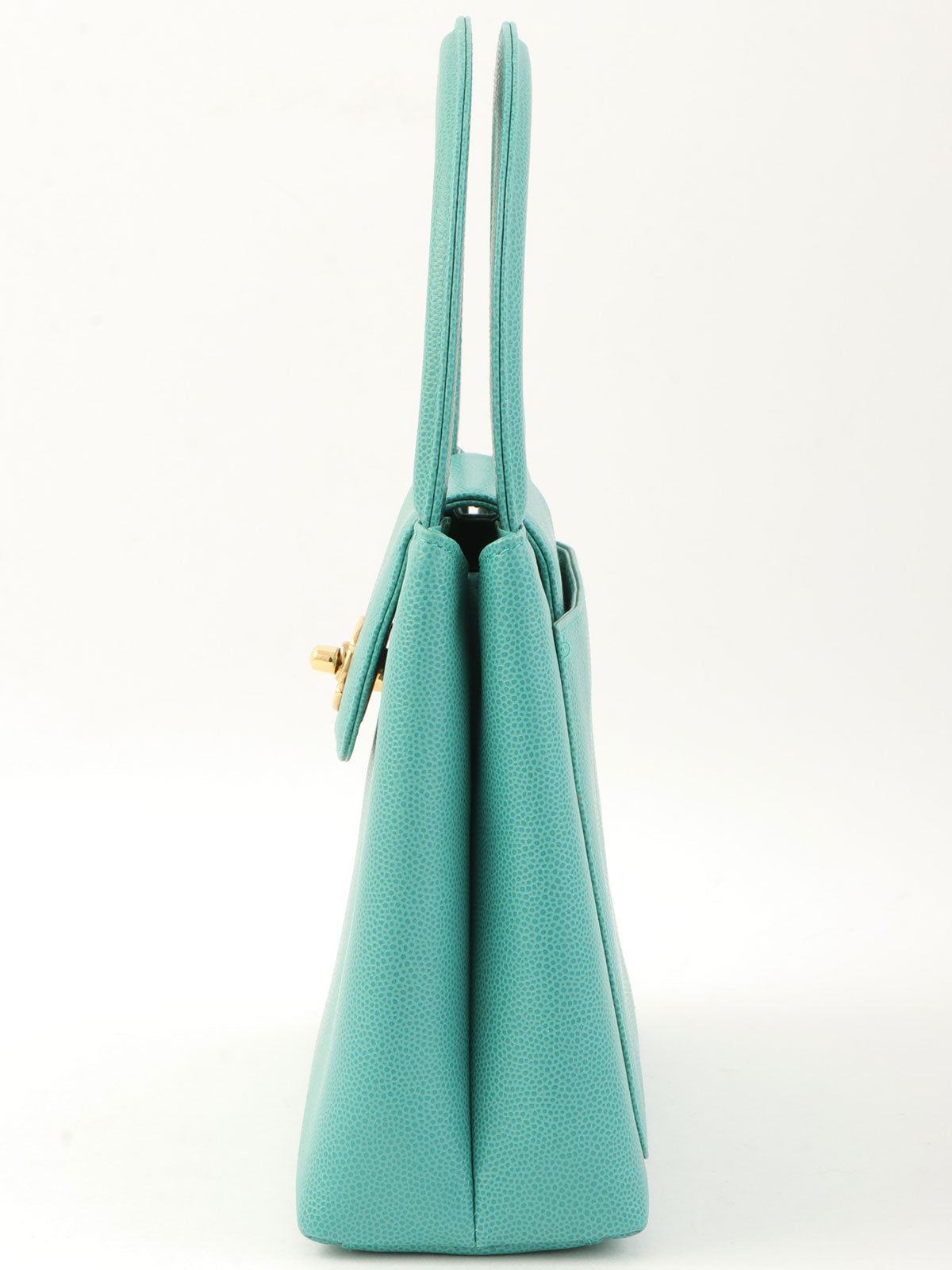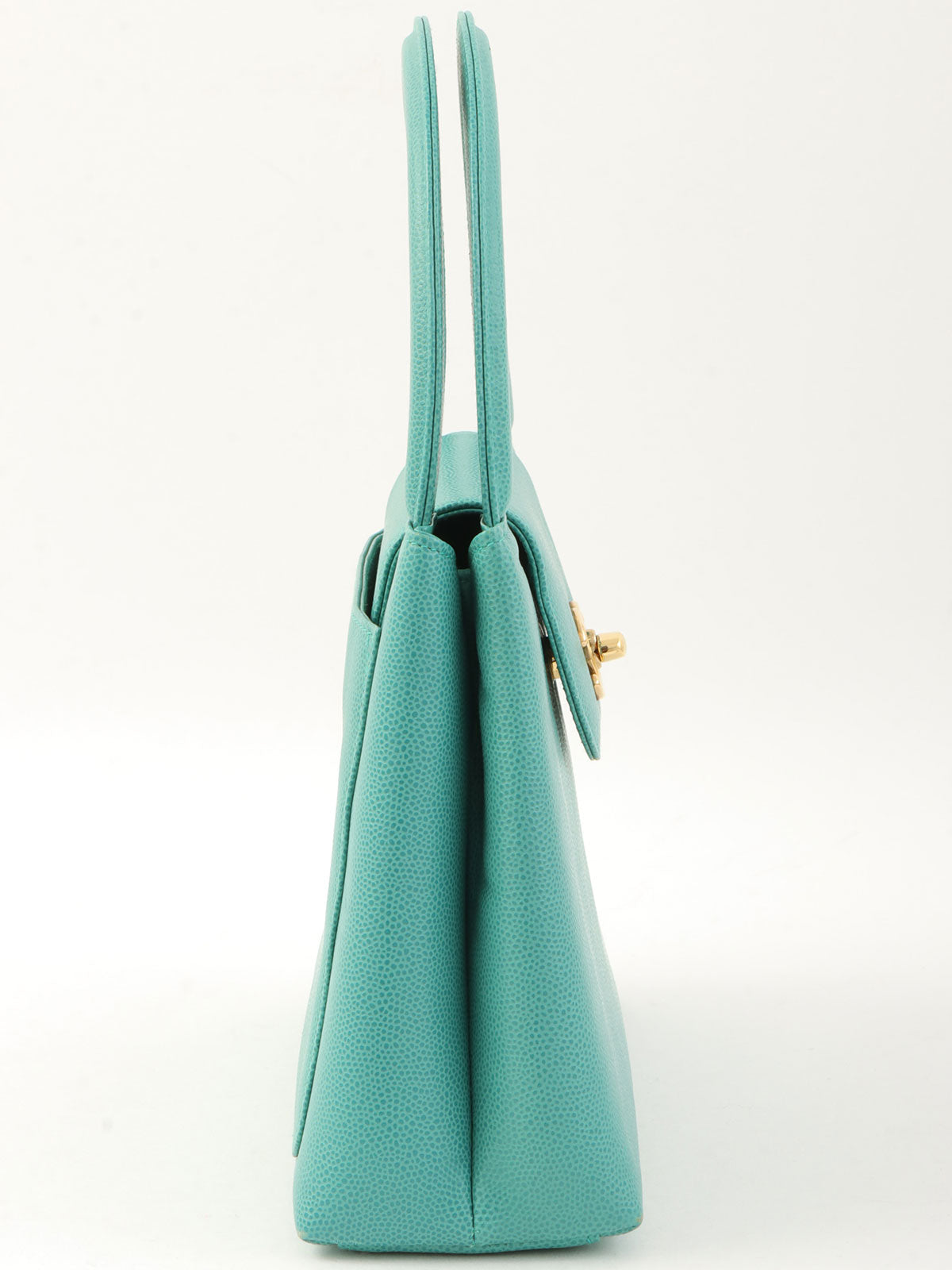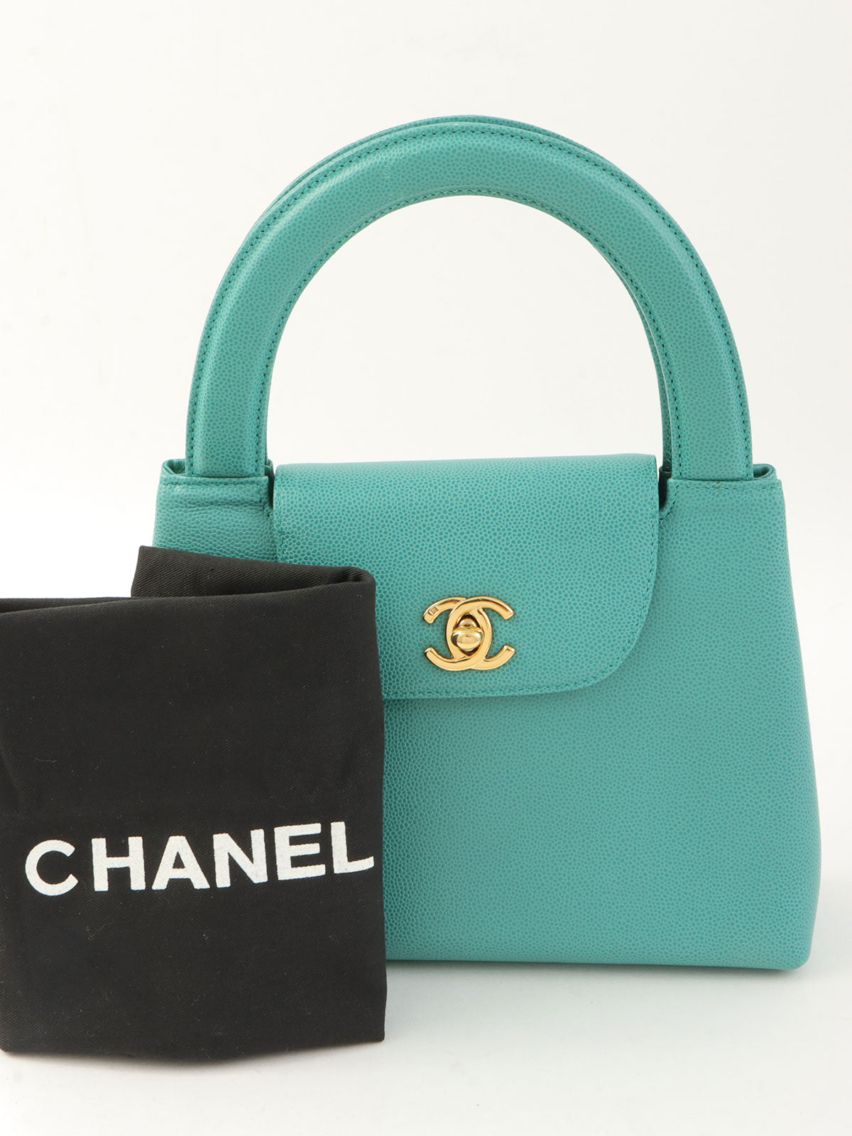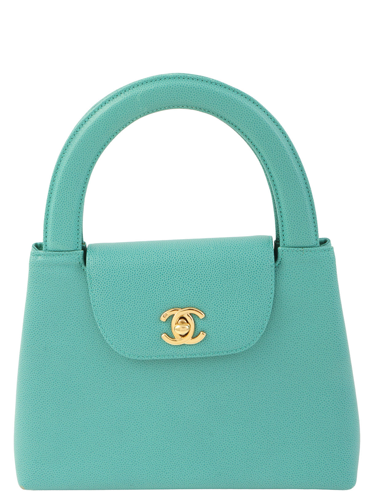1995年頃製 キャビアスキンCCターンロックハンドバッグ ミントグリーン