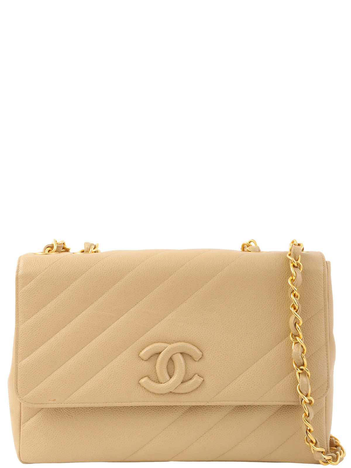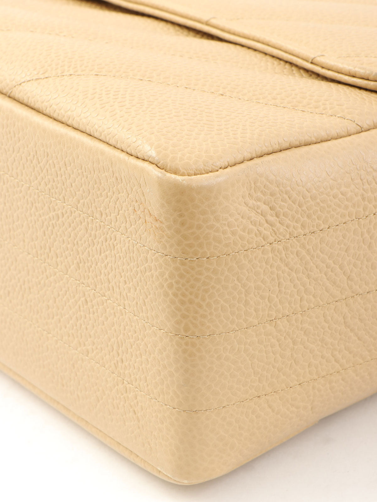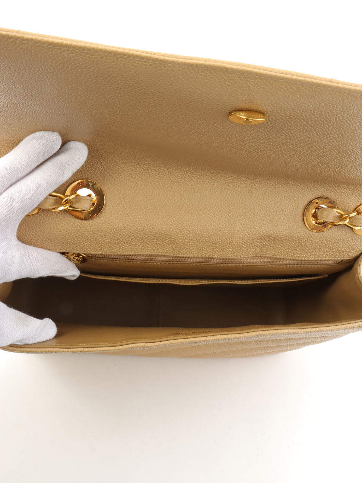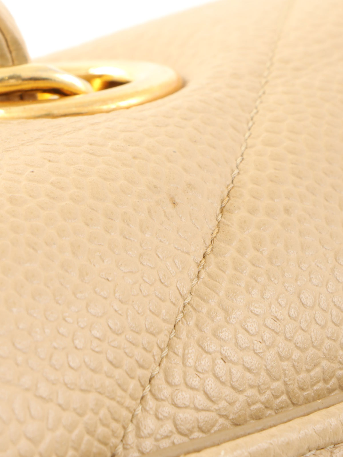 1995年頃製 キャビアスキンバイアスステッチチェーンショルダーバッグ ベージュ