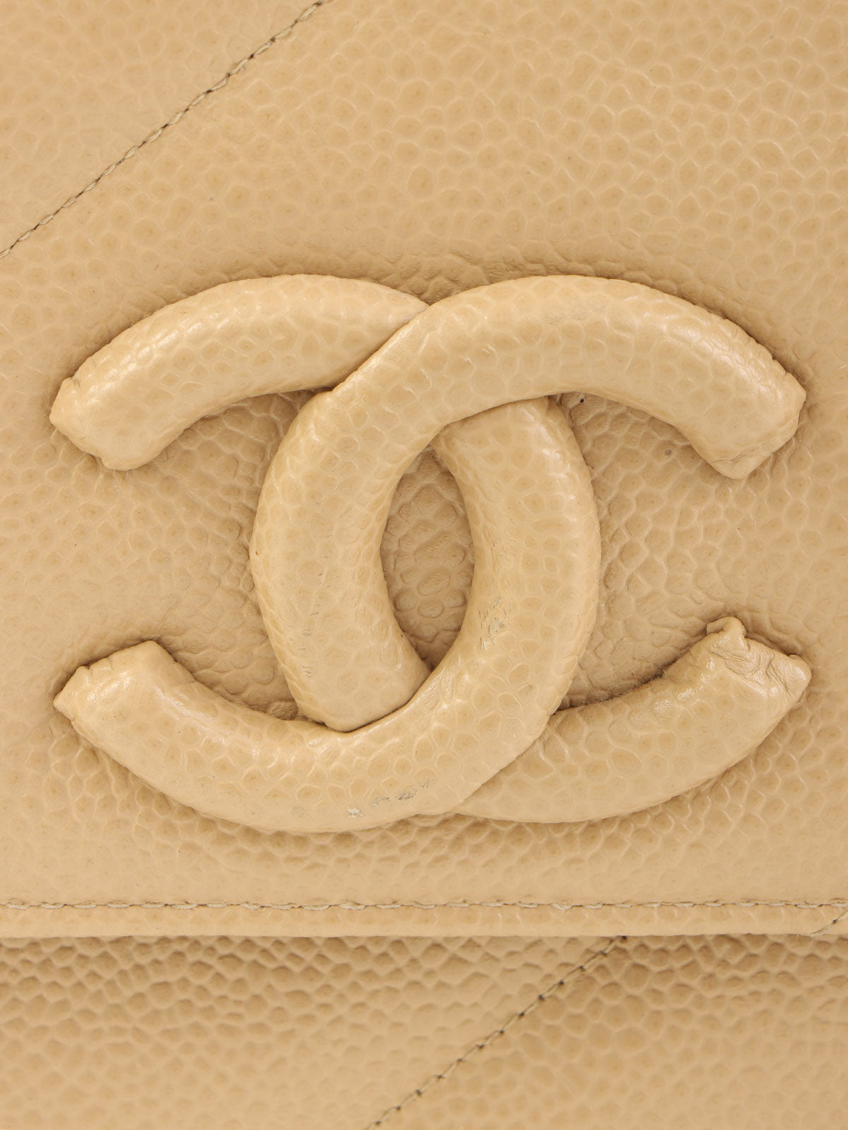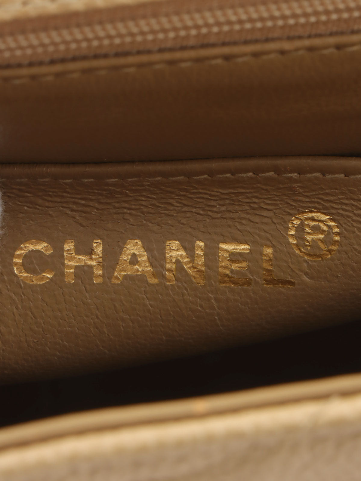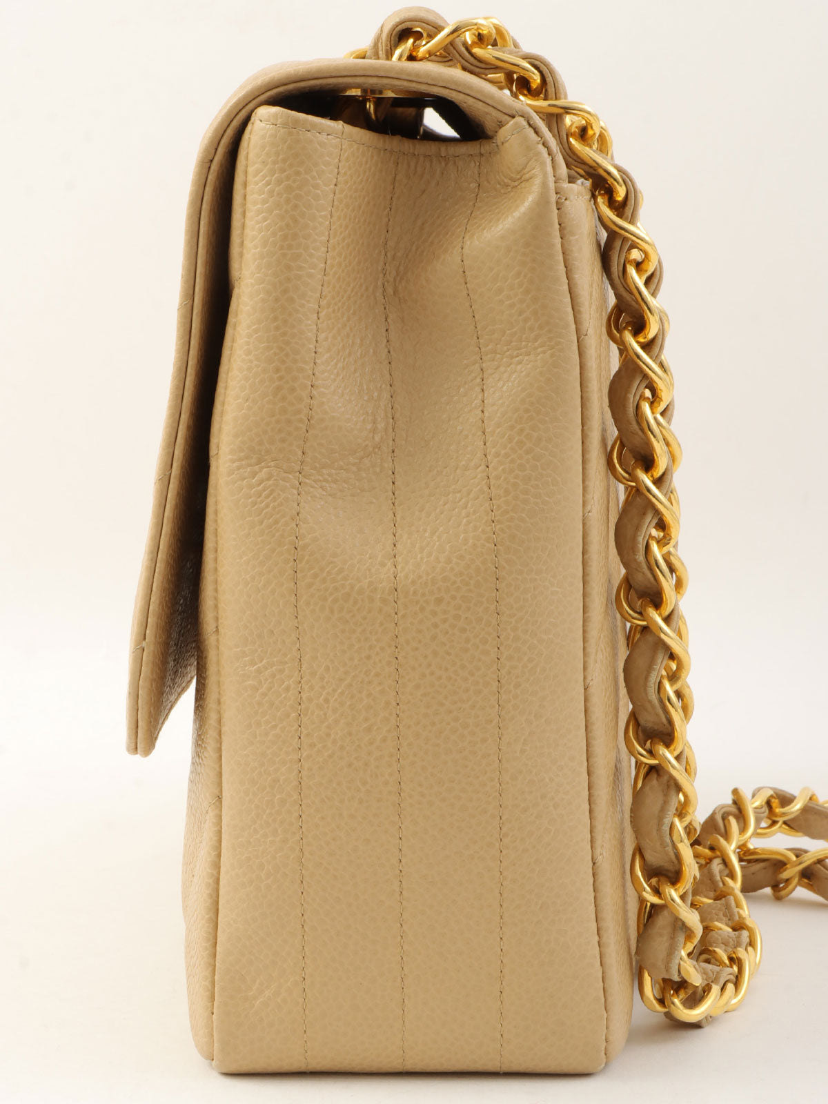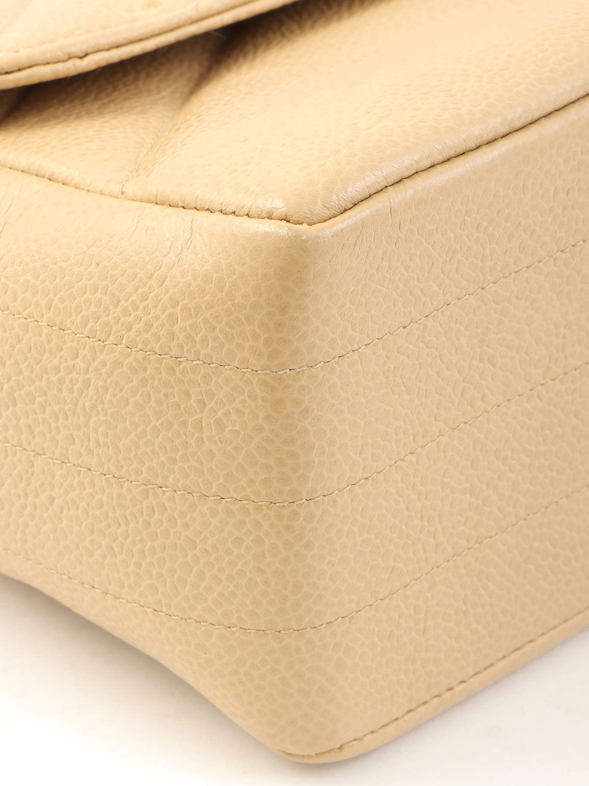 1995年頃製 キャビアスキンバイアスステッチチェーンショルダーバッグ ベージュ