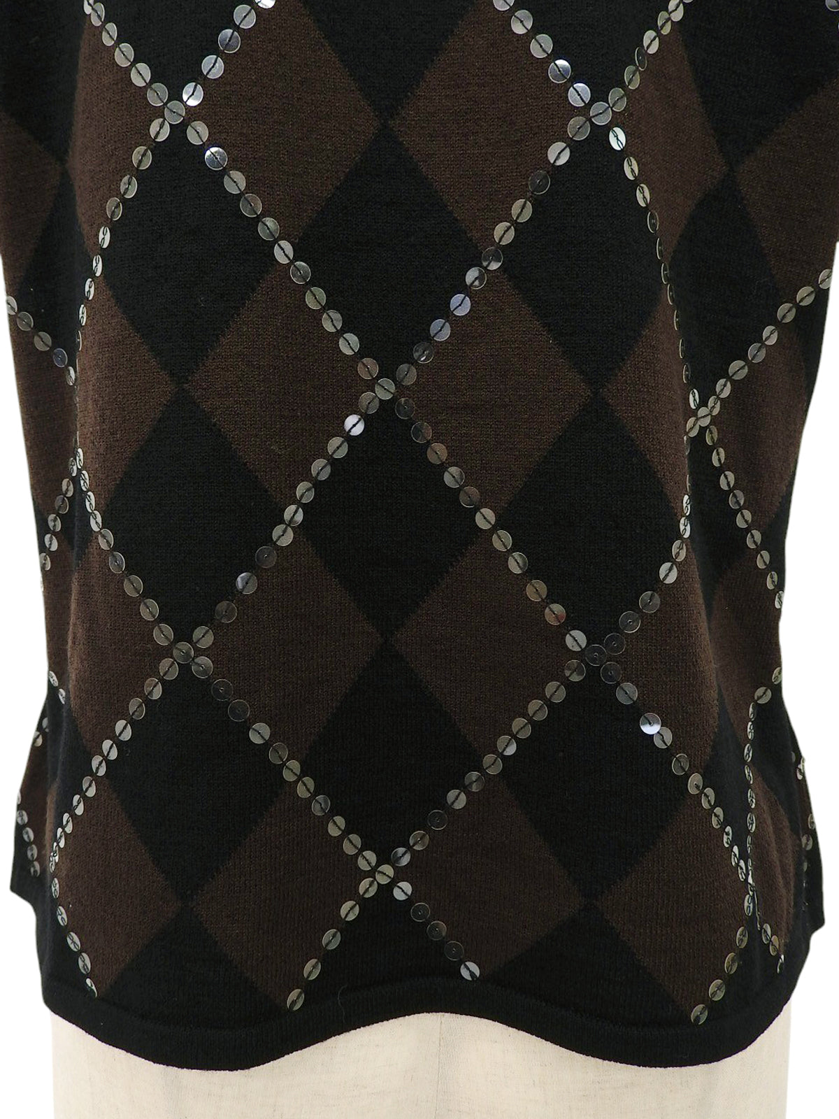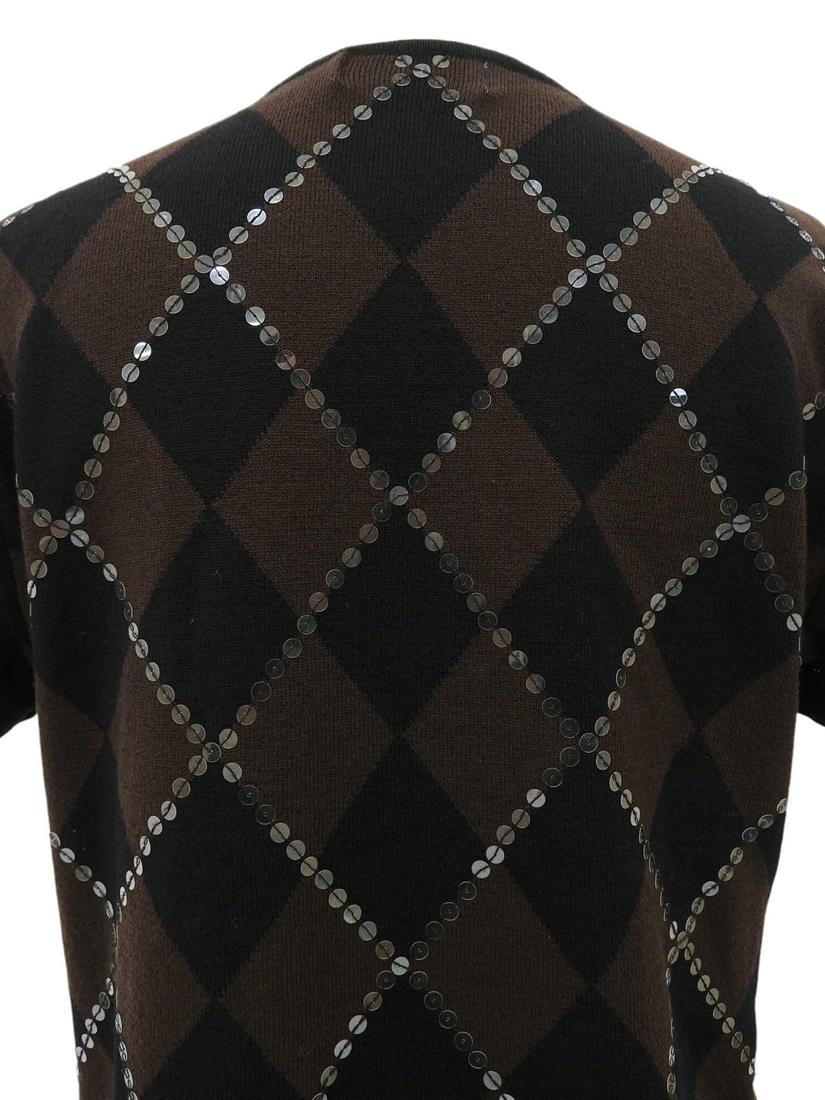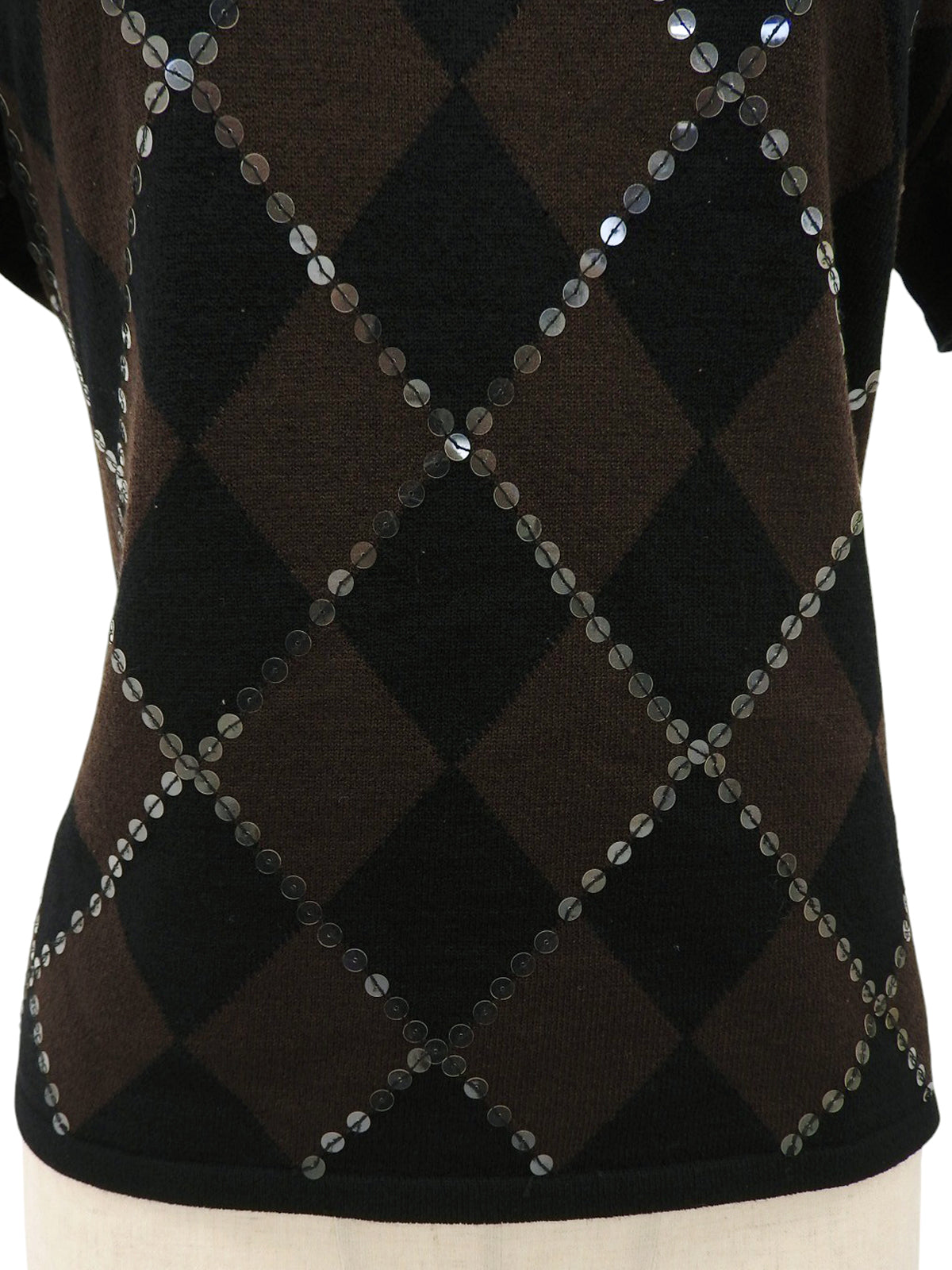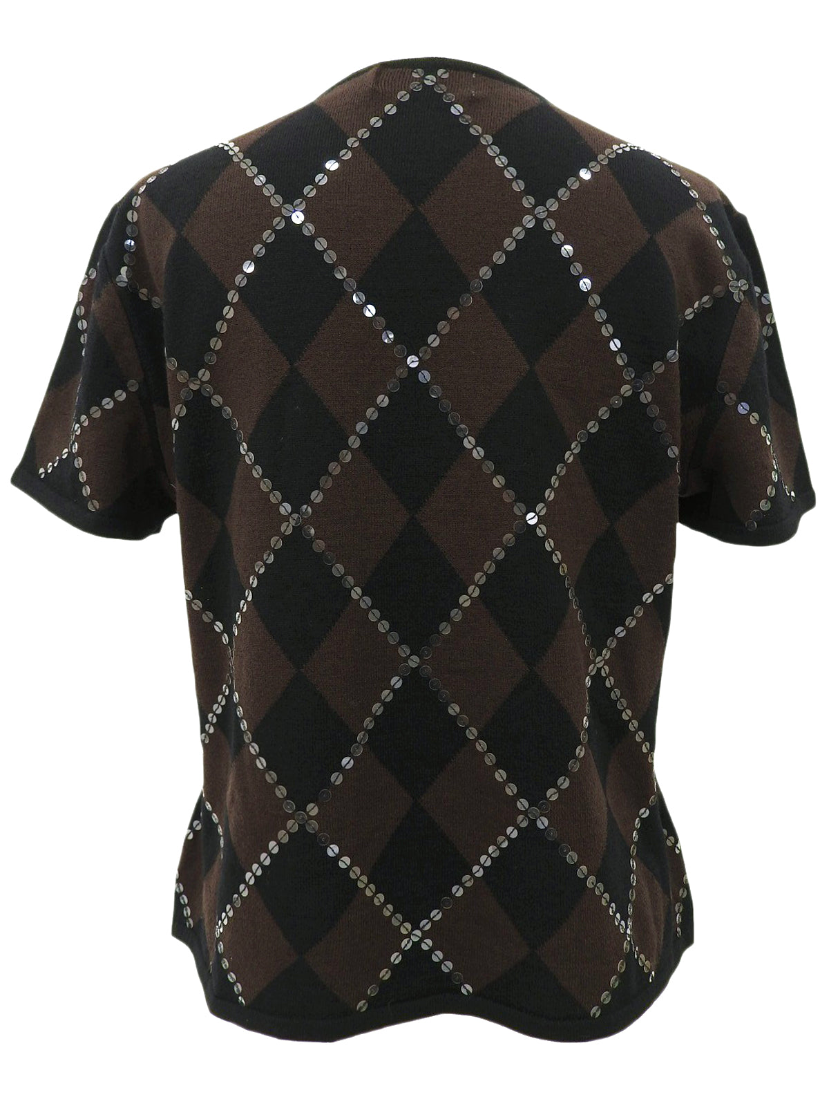 スパンコールアーガイルパターン半袖ニットトップス ブラウン/ブラック