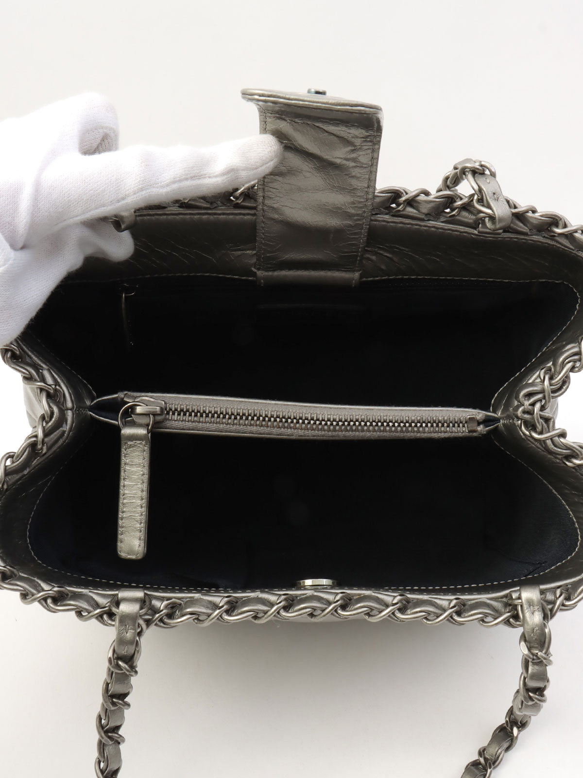 2012年頃製 CCマークステッチチェーンハンドバッグ シルバー