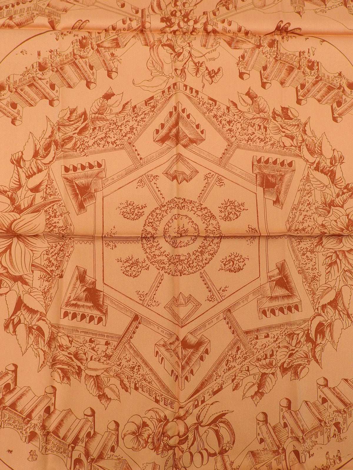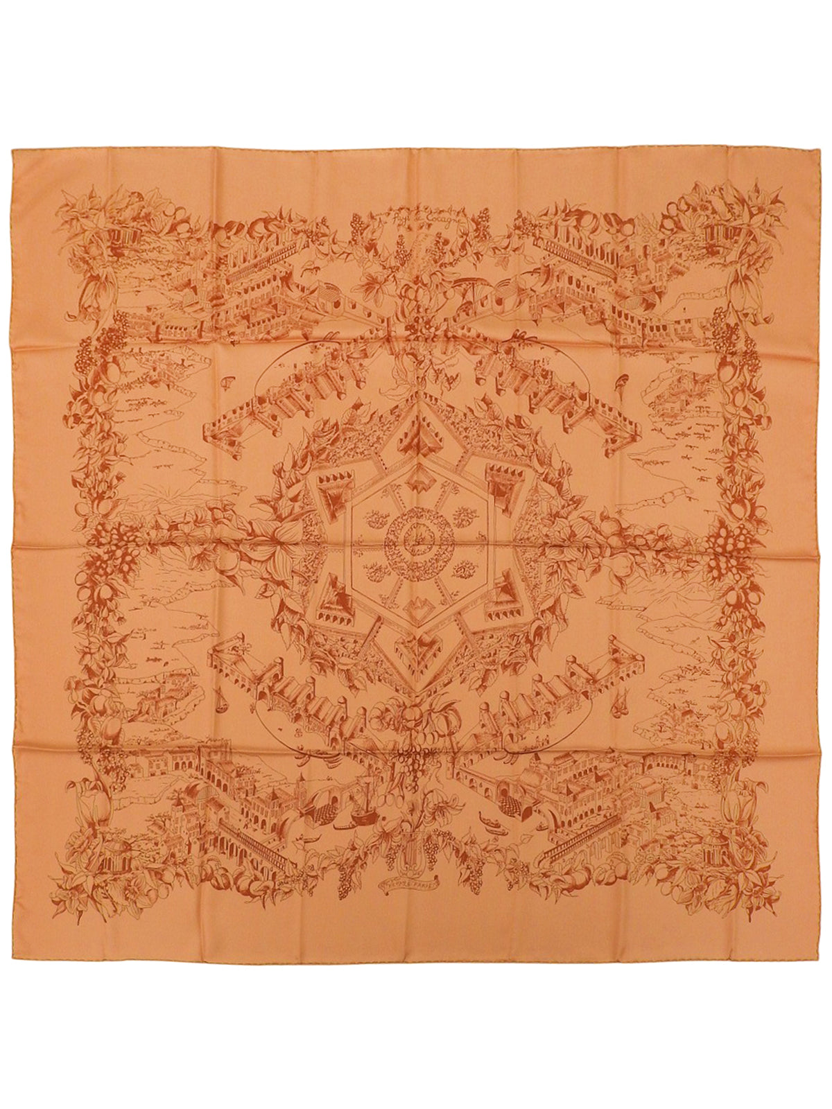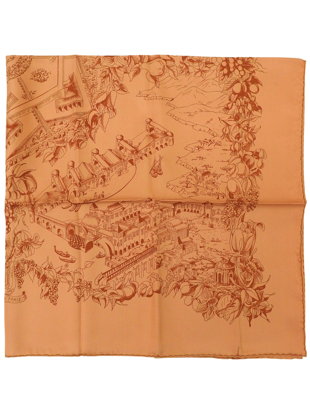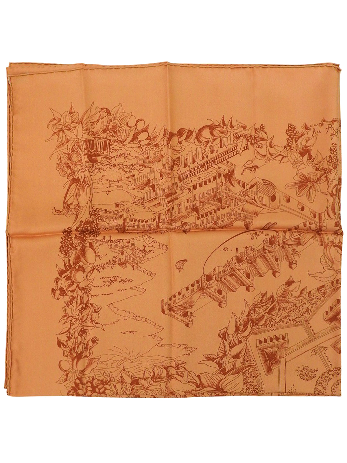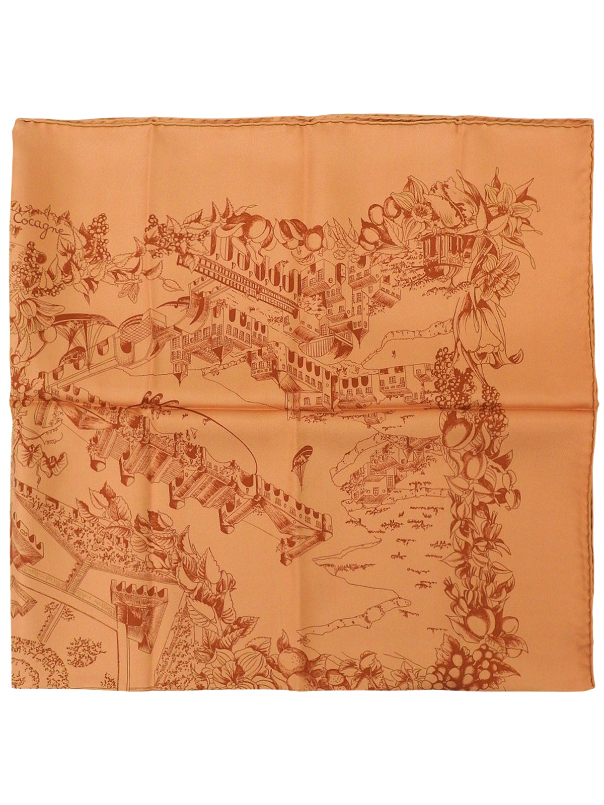 カレ90 Au Pays de Cocagneパターンスカーフ オレンジ