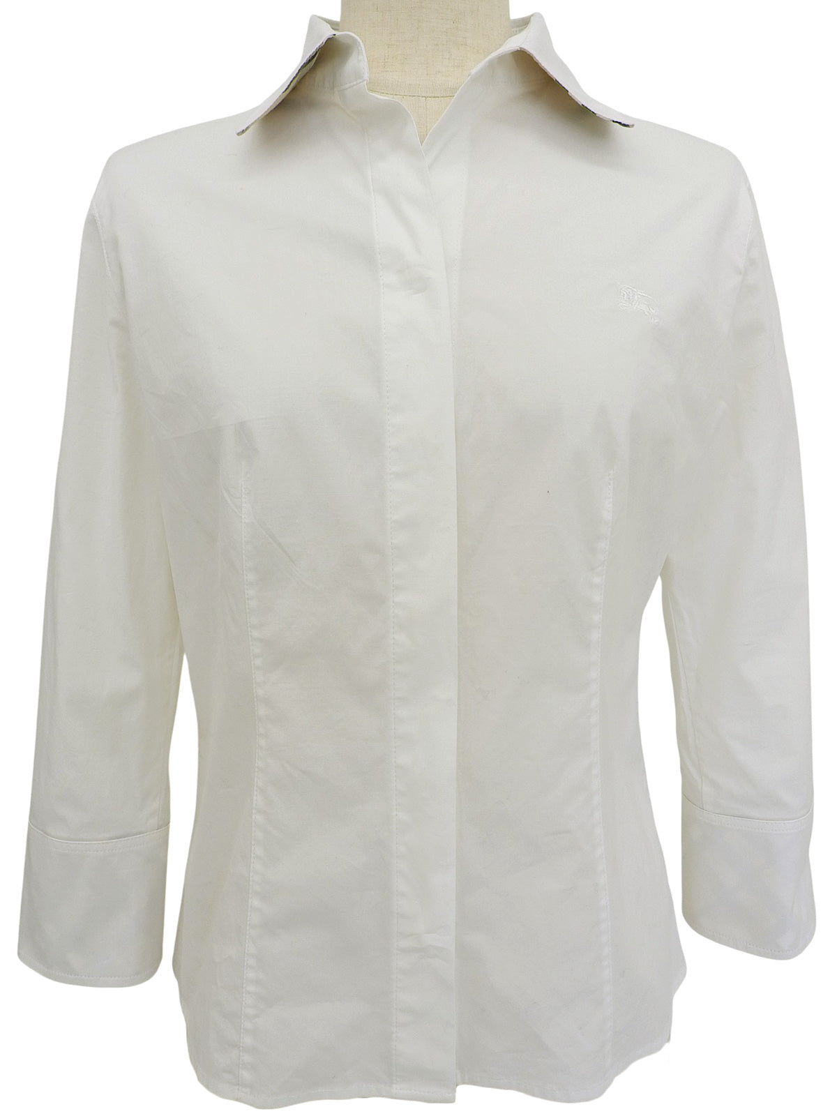 ロゴ刺繍クウォータースリーブシャツ ホワイト