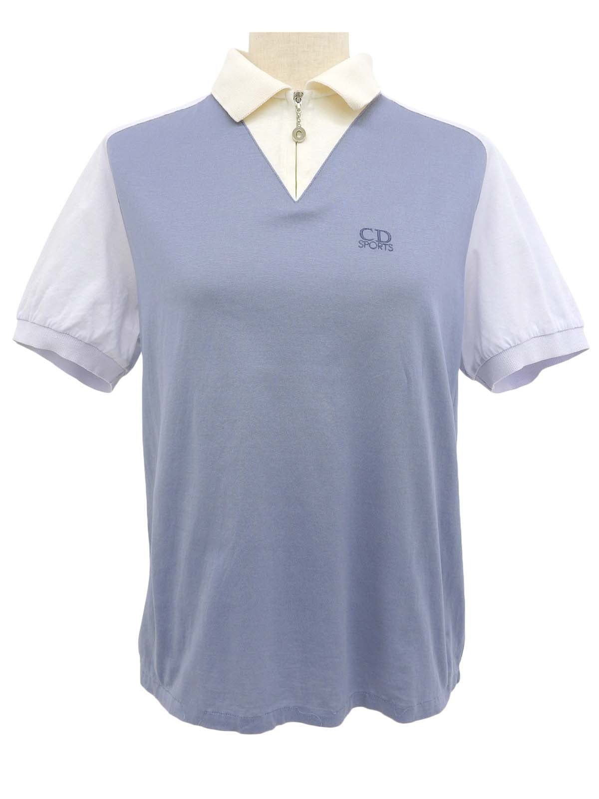 ロゴ刺繍ジップアップポロシャツ ブルー