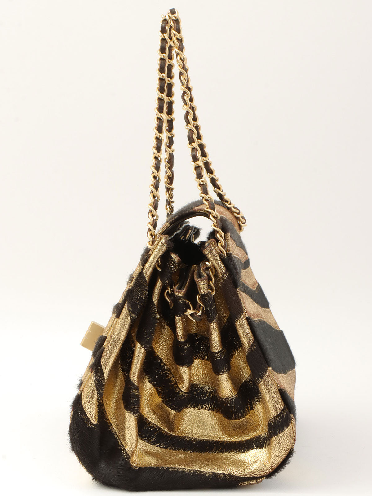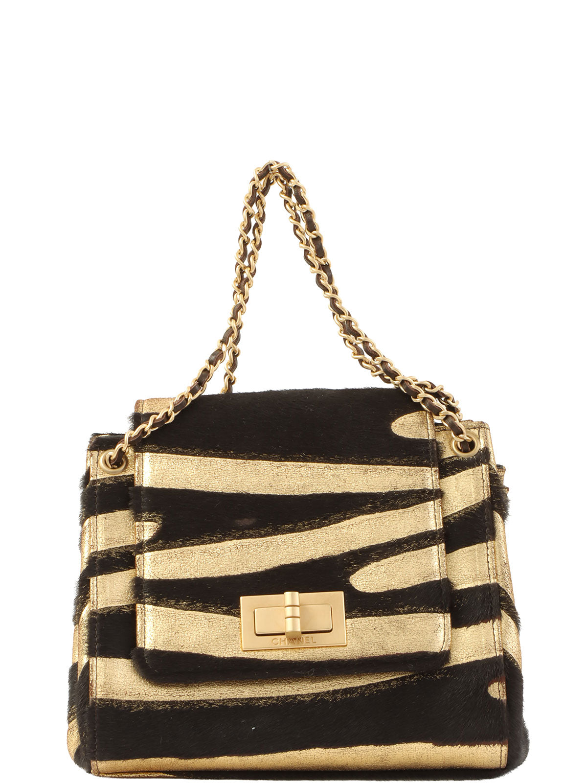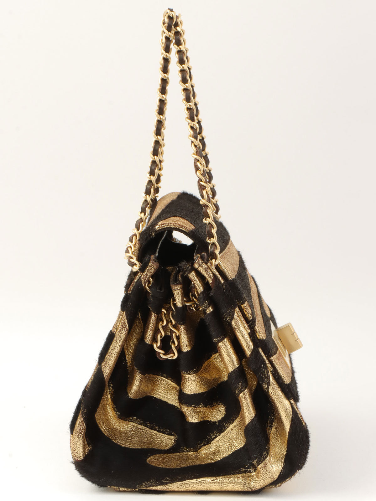 2000年頃製 ゼブラモチーフ2.55チェーンミニハンドバッグ ゴールド/ブラック