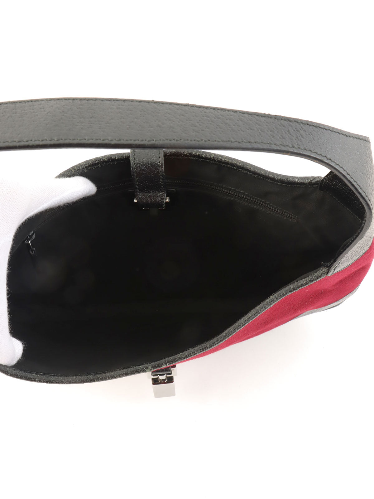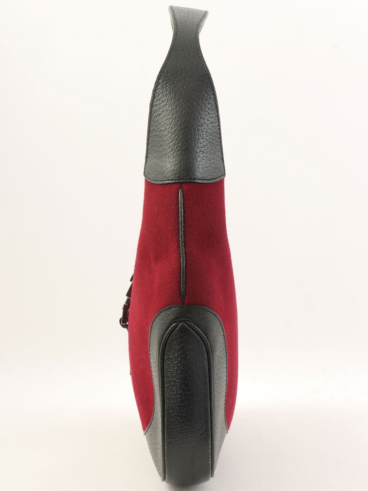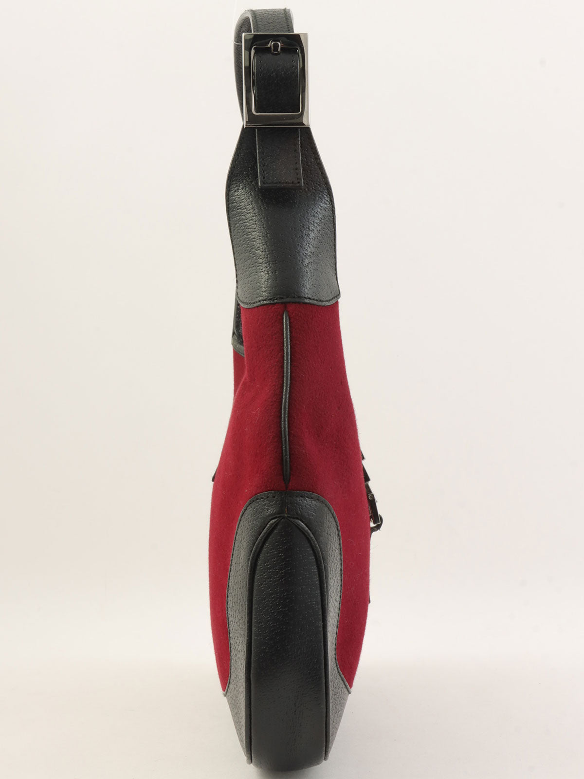 ウールレザーコンビジャッキーワンショルダーバッグ ボルドー/ブラック