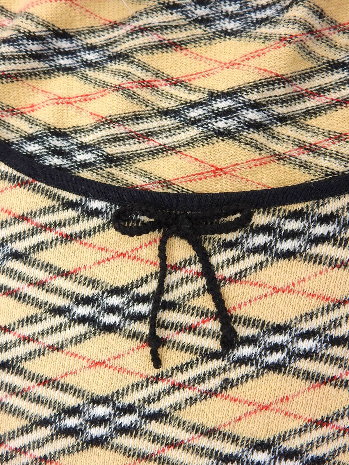 ノバチェックパターンリボン半袖トップス #M ベージュ