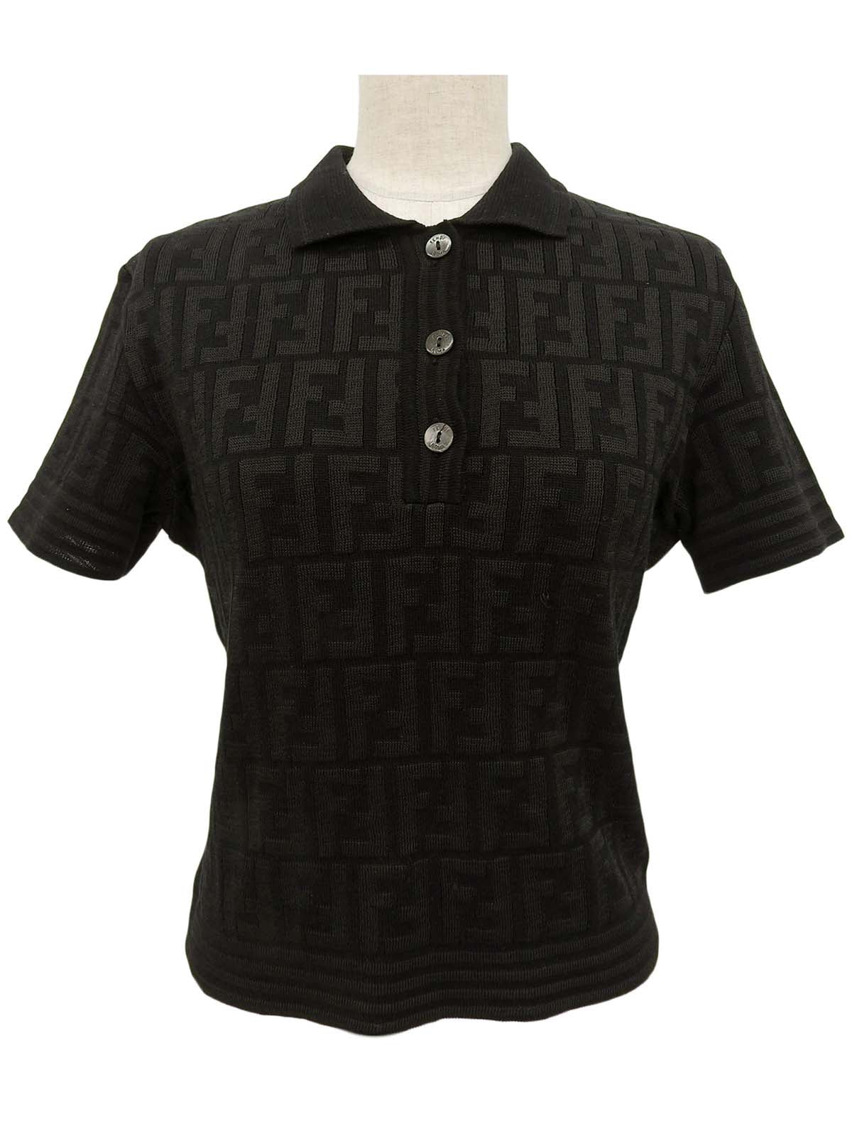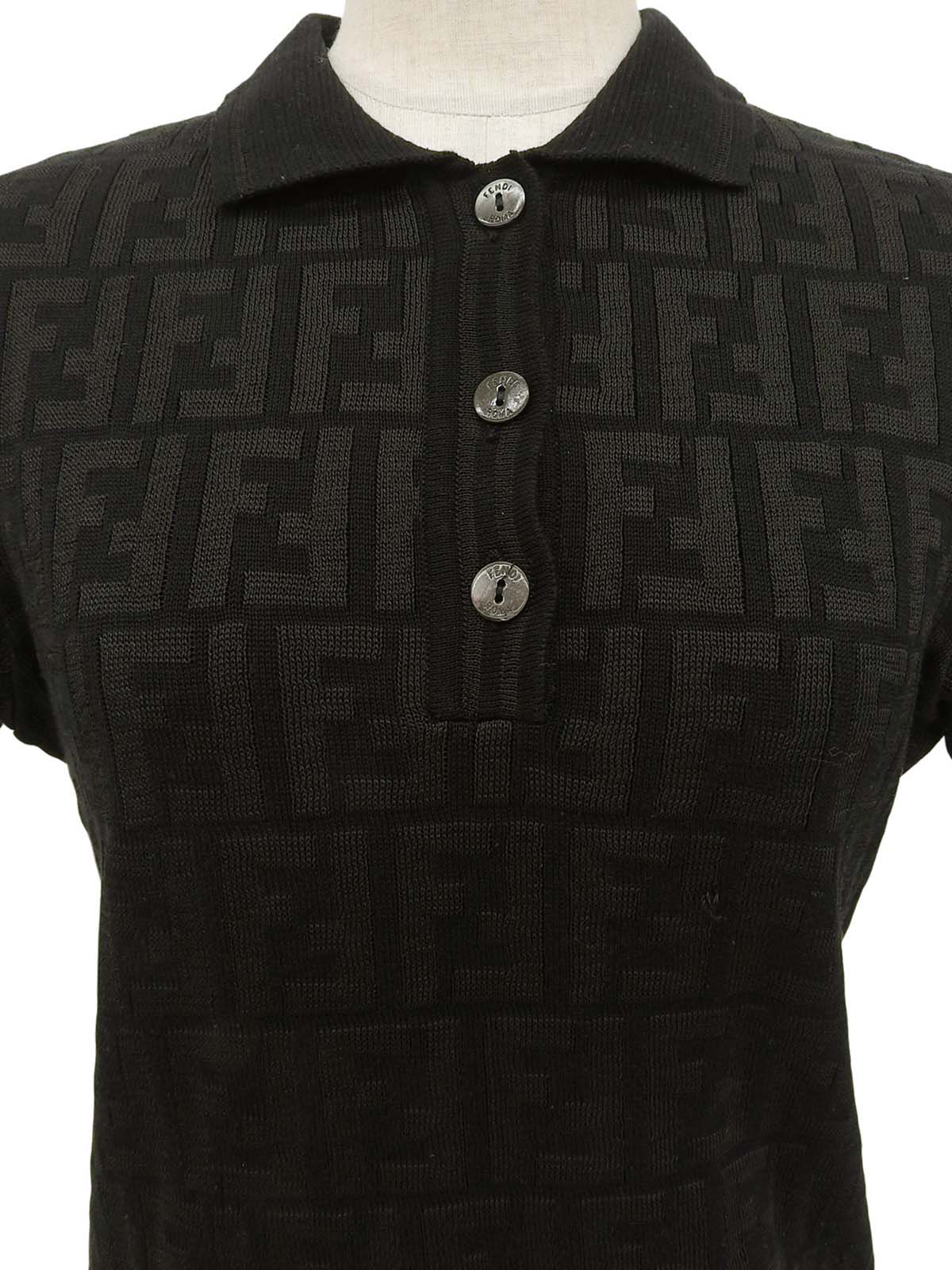 FFズッカパターン半袖ニットトップス ブラック