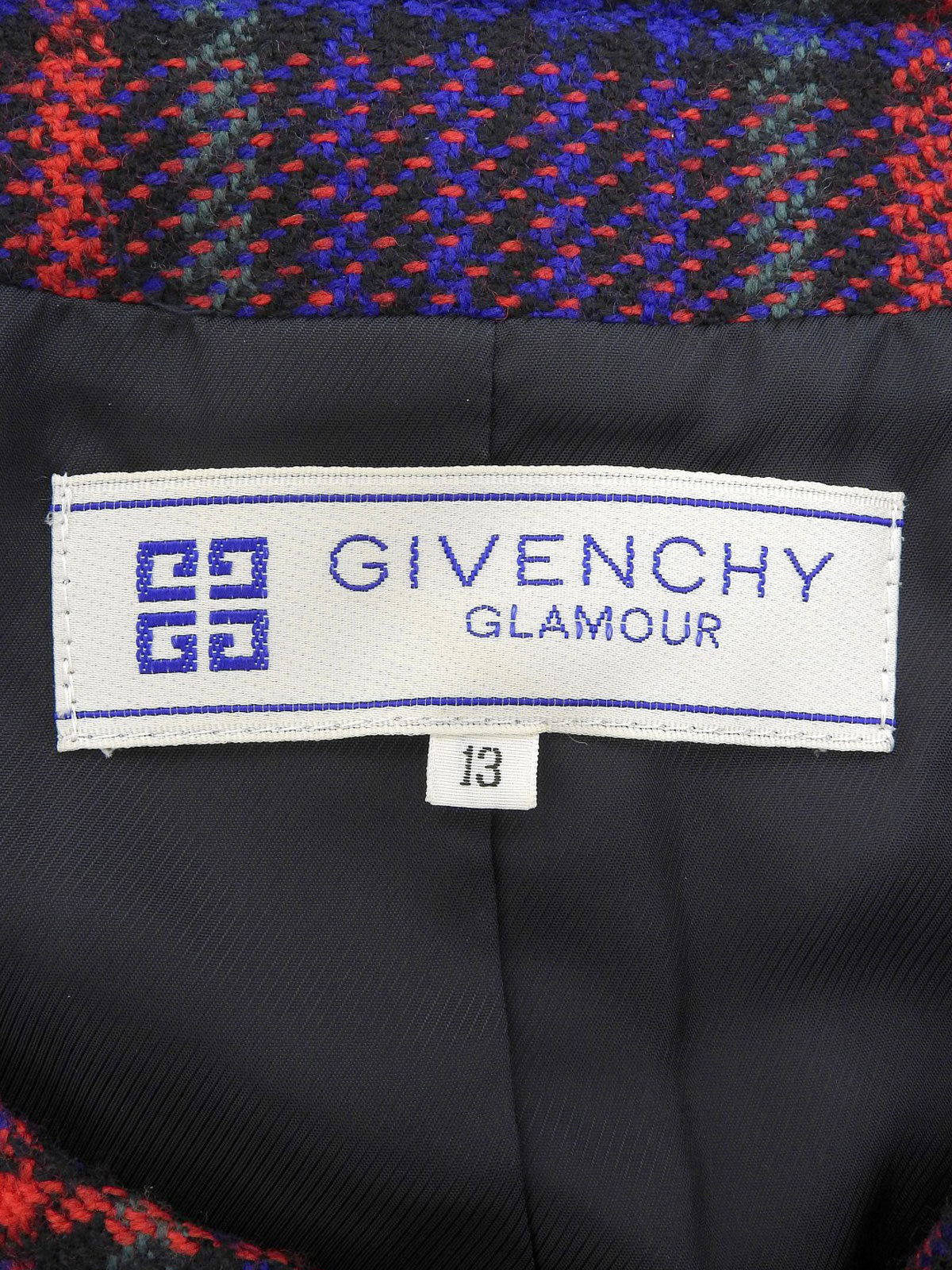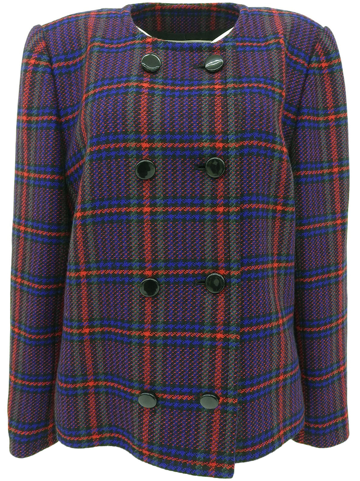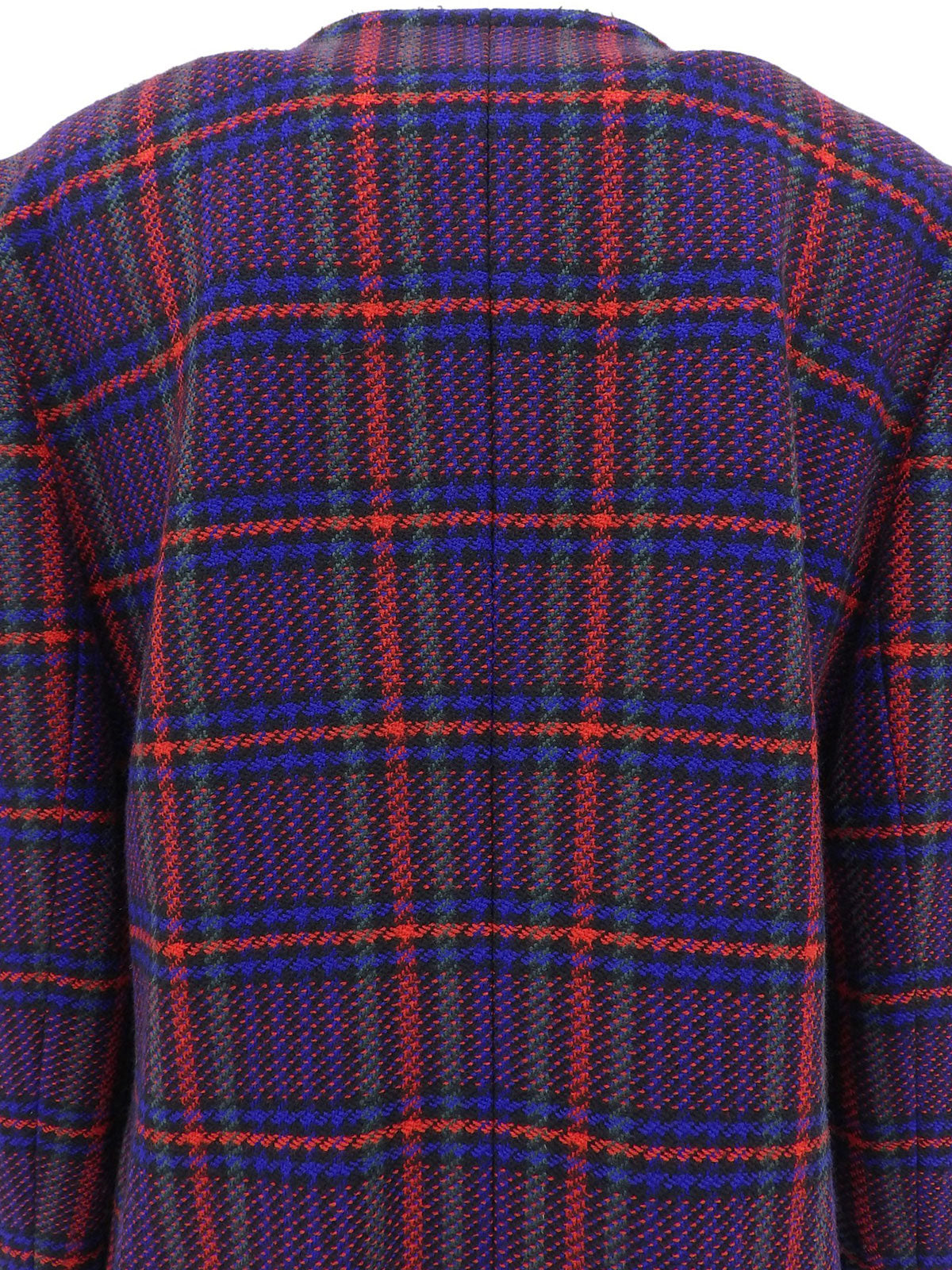 ウールチェックパターンノーカラージャケット レッド/ブルー/マルチ