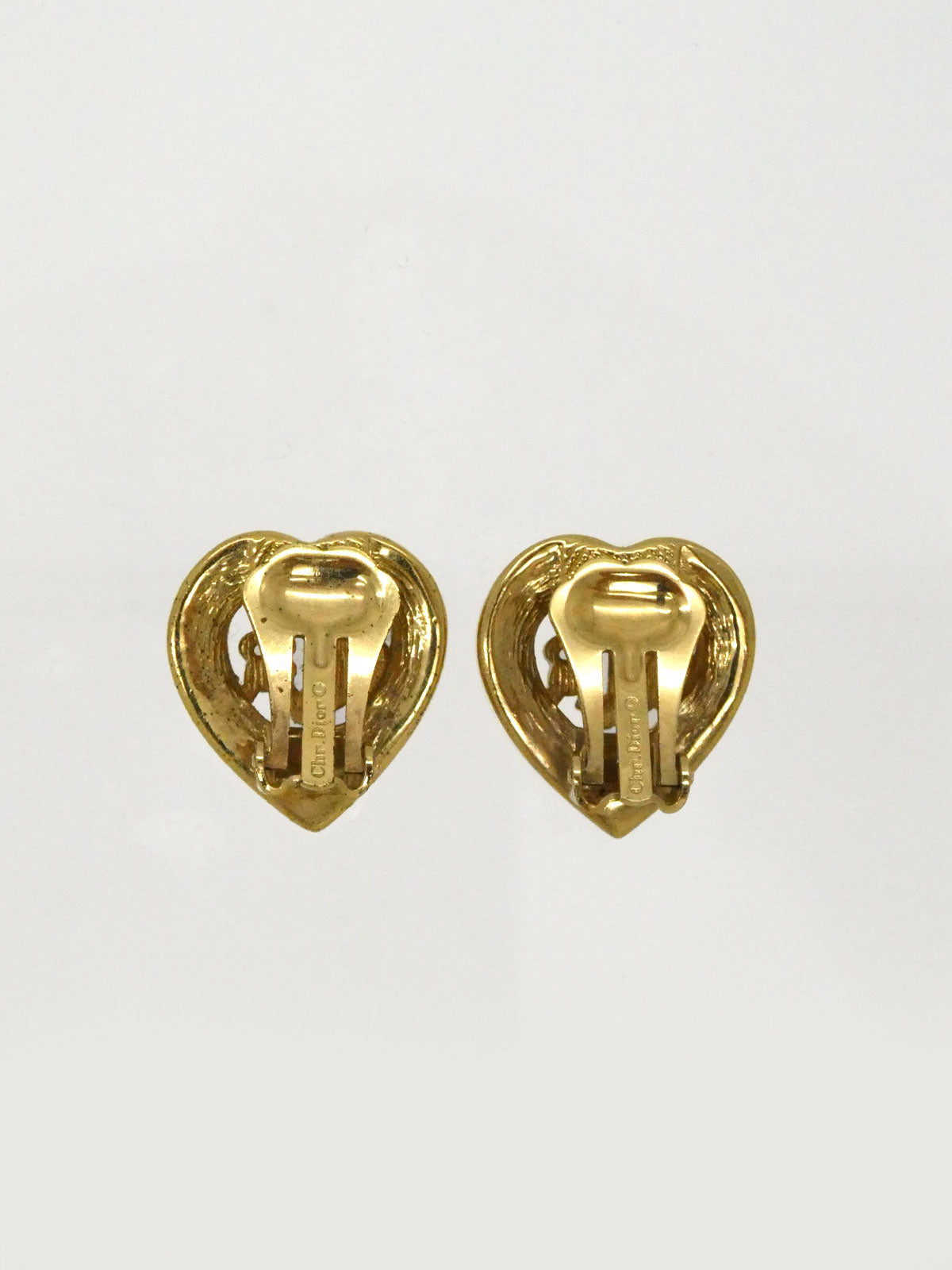 ラインストーンハートロゴエンブレムイヤリング ゴールド