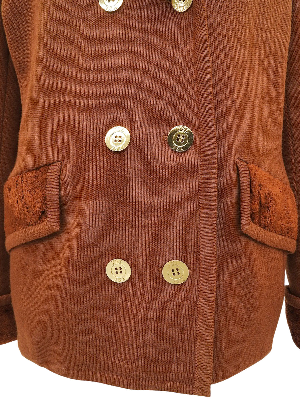 ウールボアコンビロゴボタンダブルブレストジャケット ブラウン