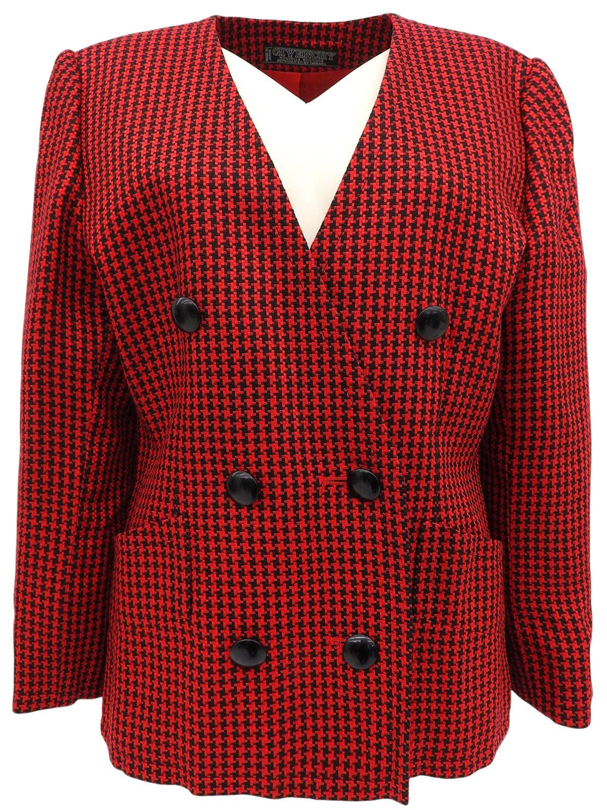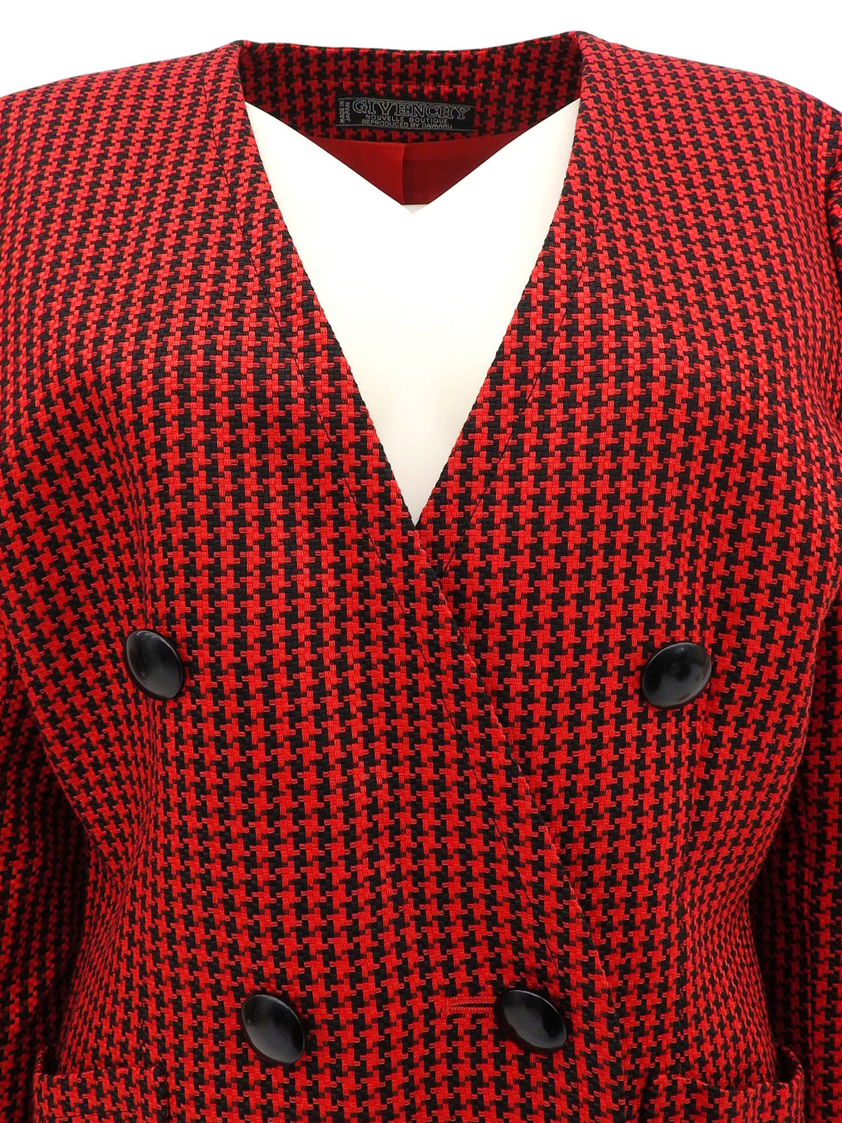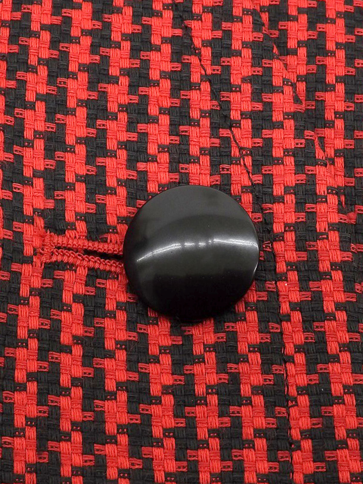 ハウンドトゥースパターンノーカラージャケット レッド/ブラック