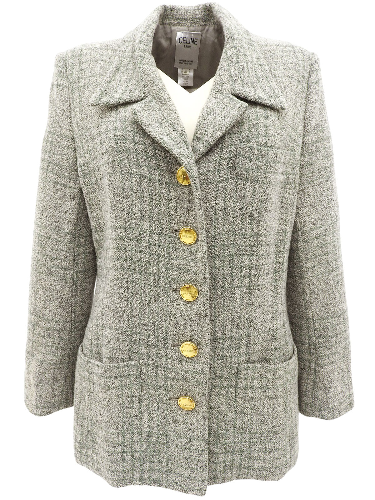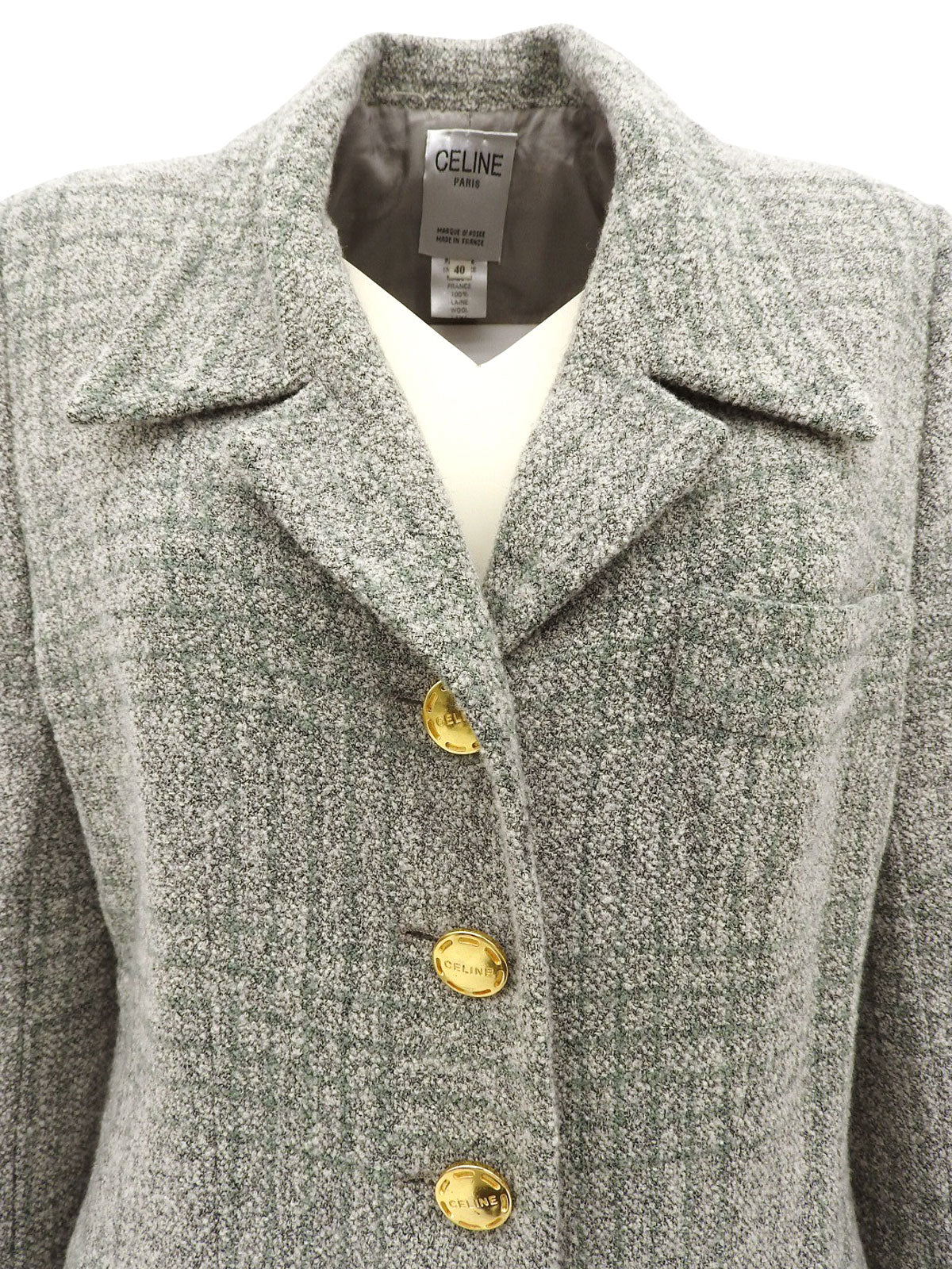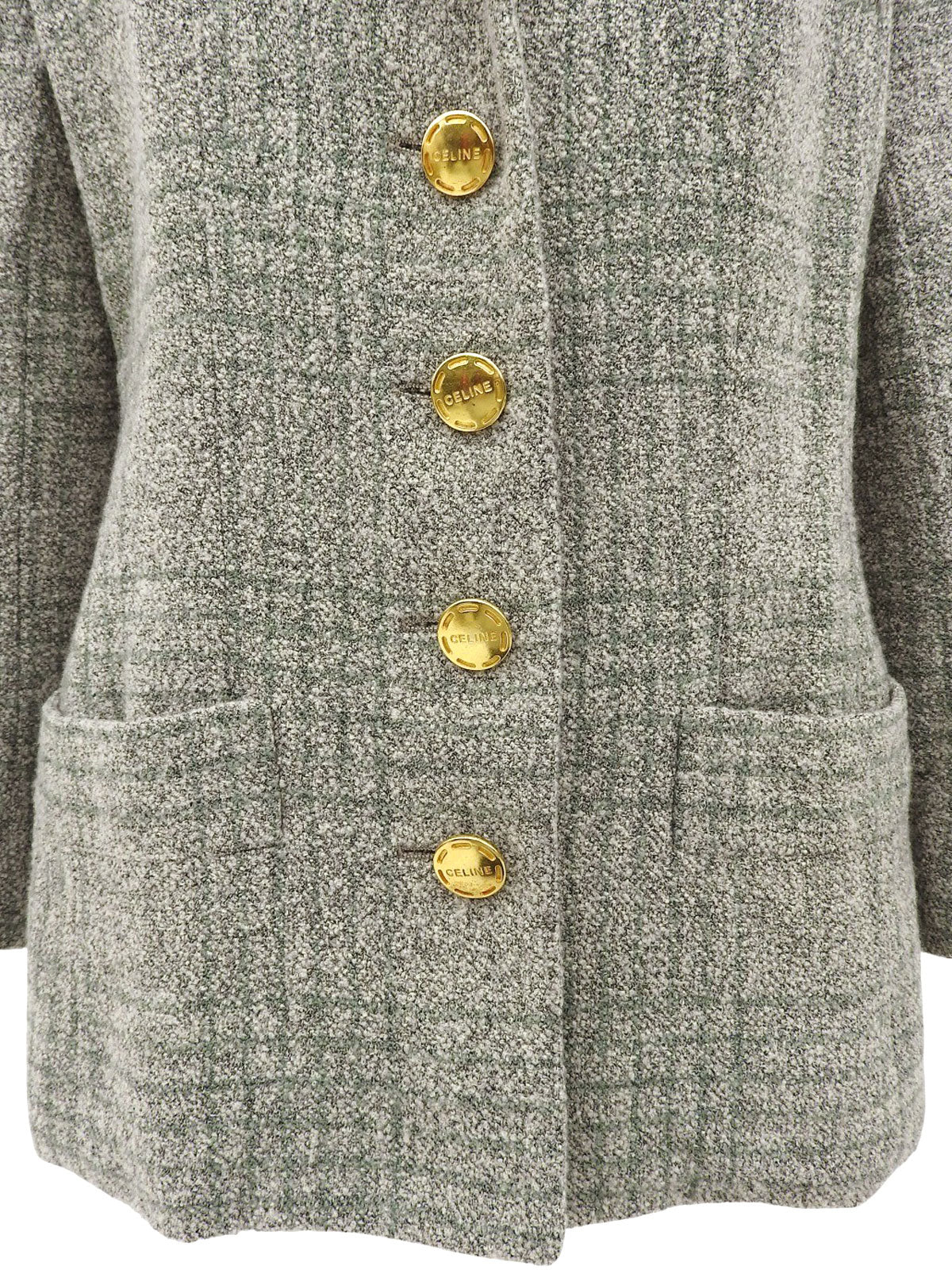 チェックパターンロゴボタンジャケット グレー/グリーン