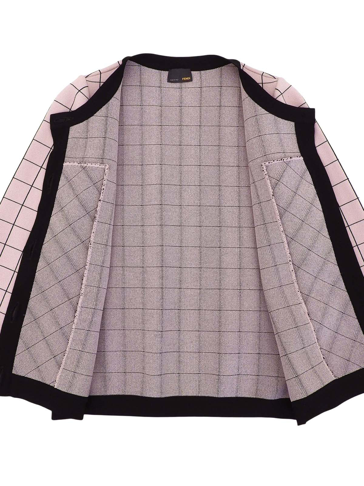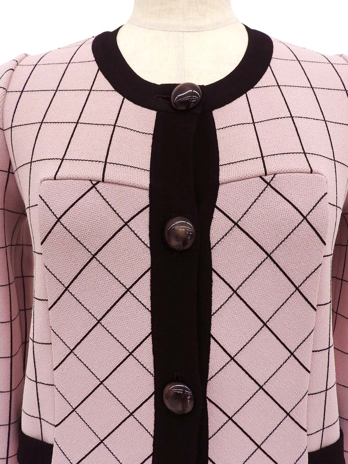 ブロックチェックパターンロゴボタンカーディガン ピンク/ブラック