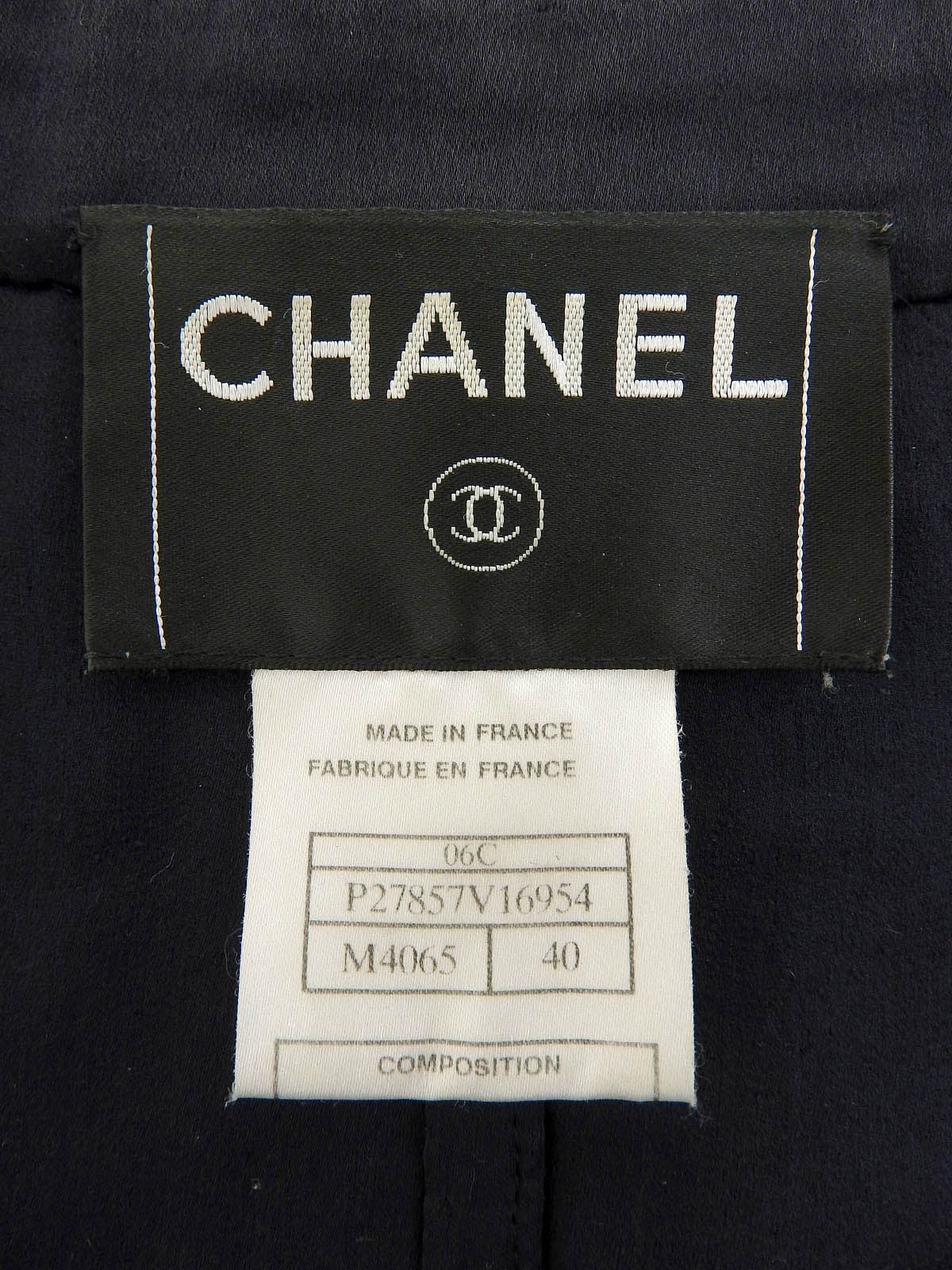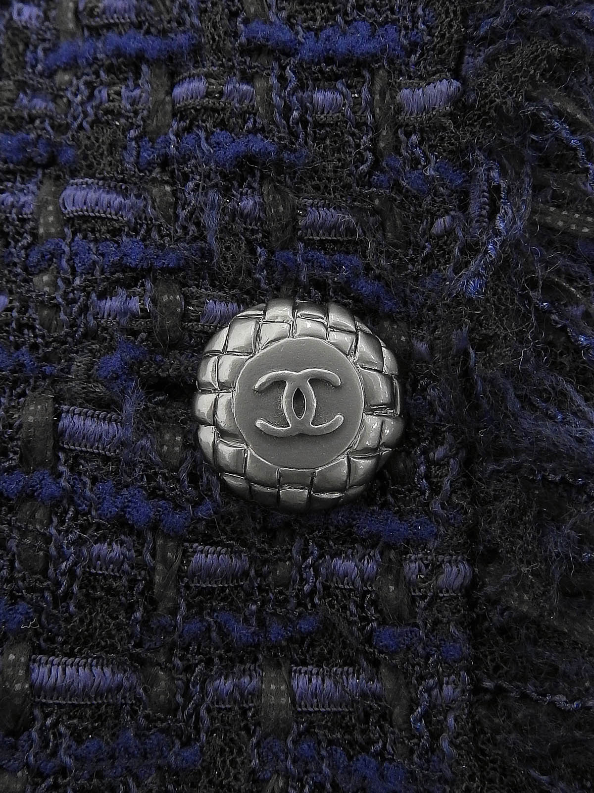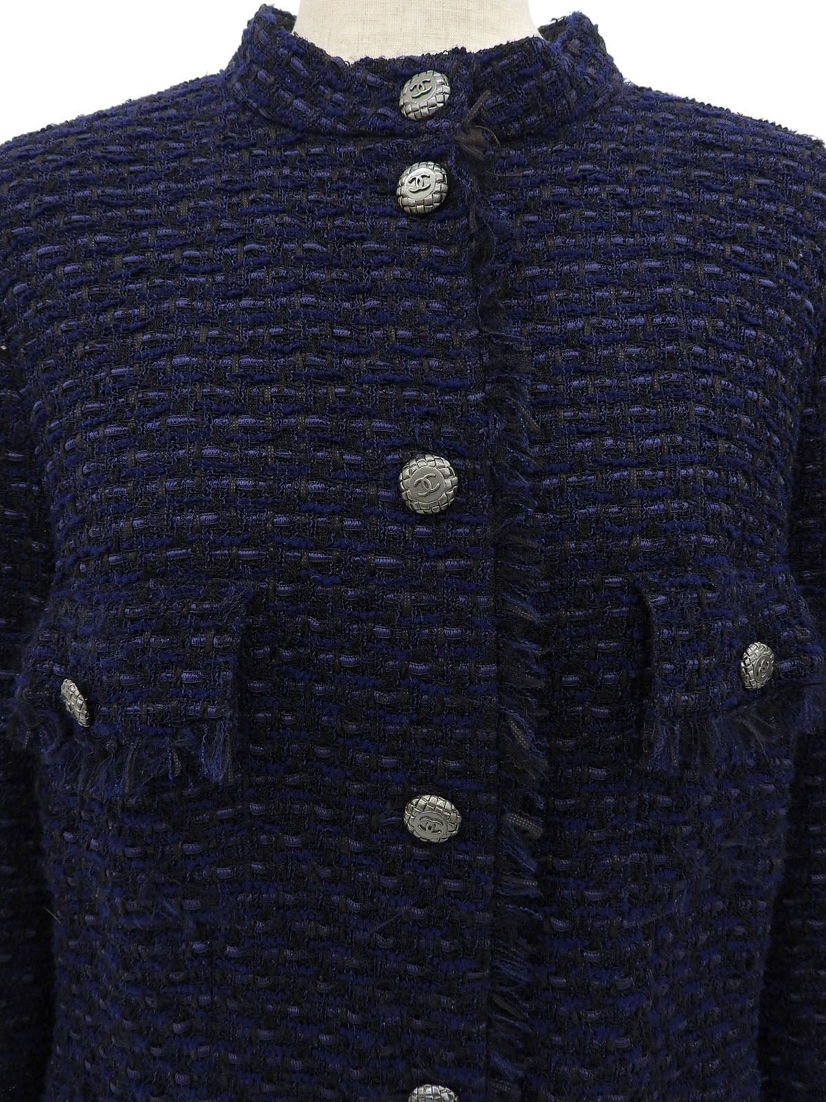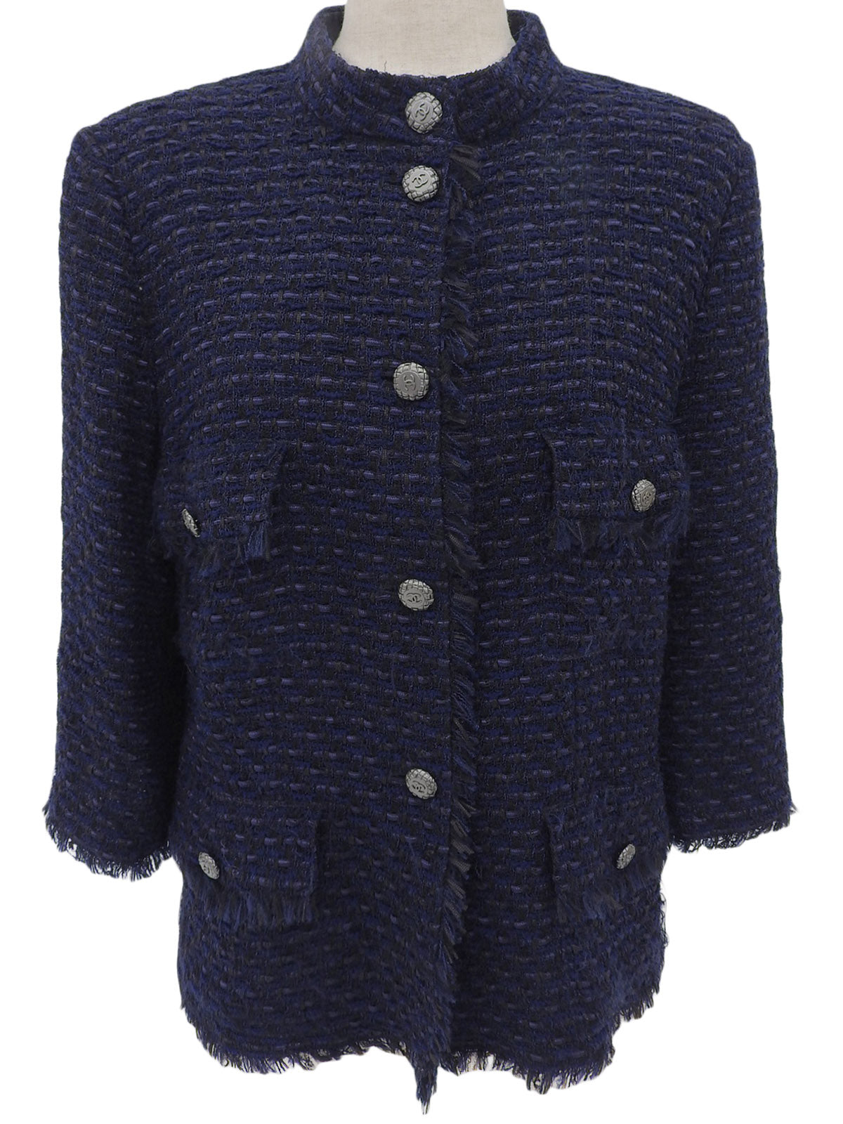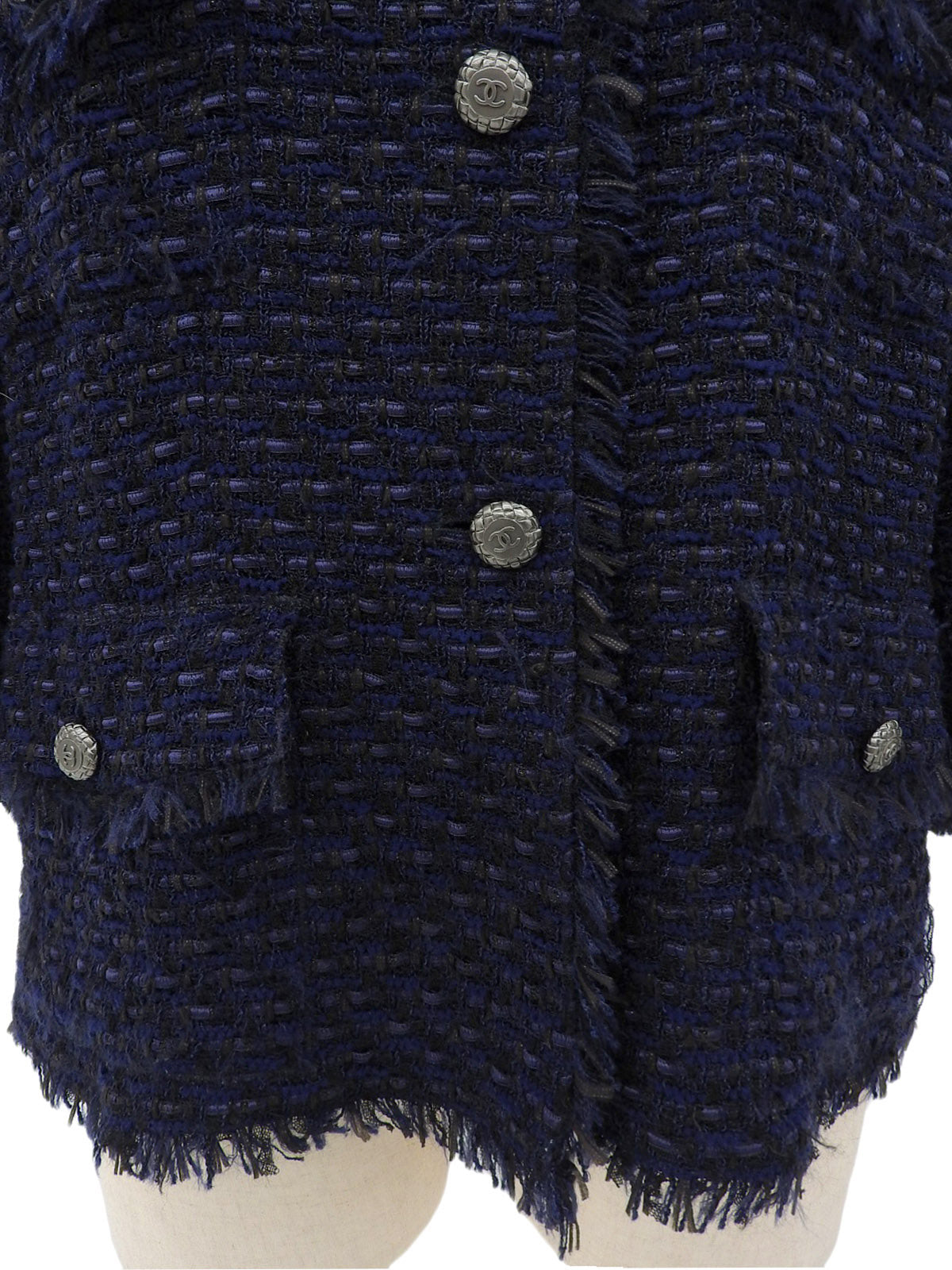 2006年製 ツイードCCマークボタンスタンドカラー七分袖ジャケット ネイビー/ブラック
