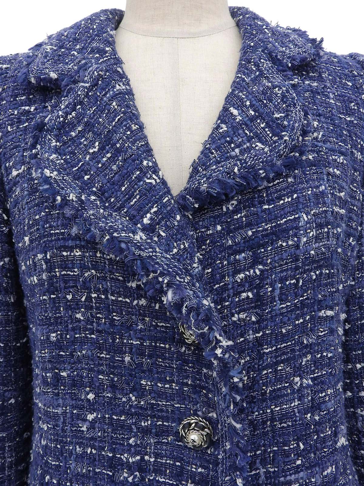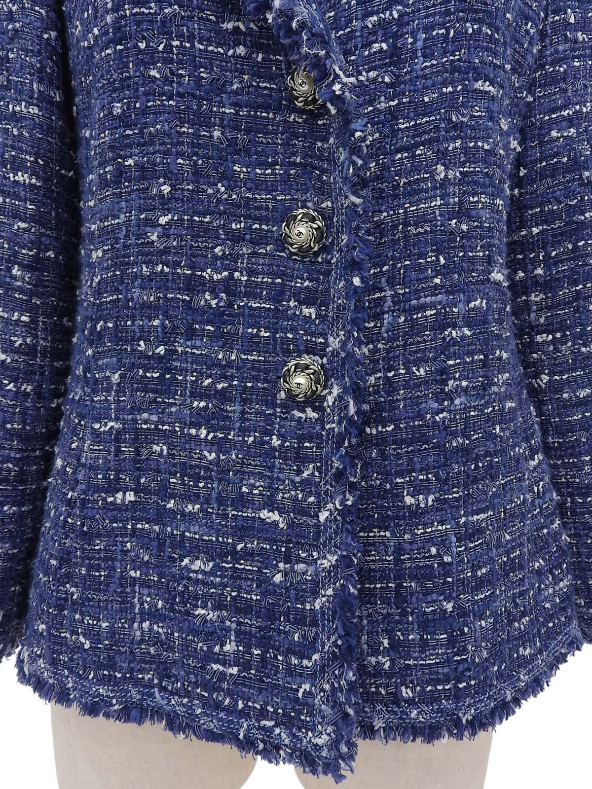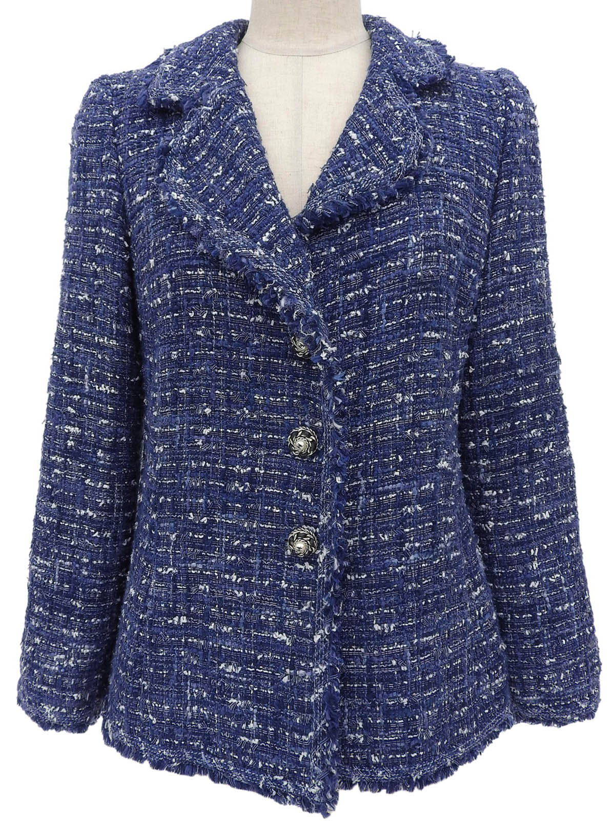 ツイードパールチェーンCCマークボタンジャケット ブルー/マルチ