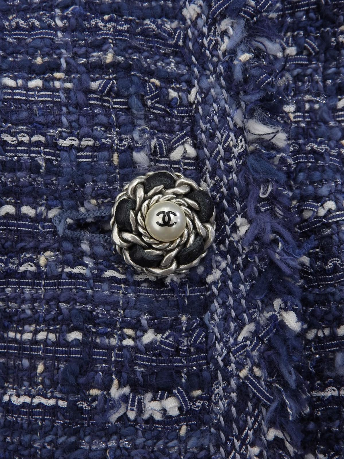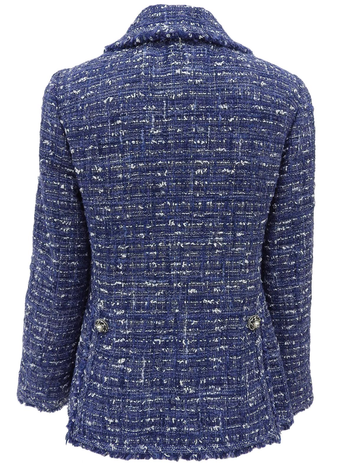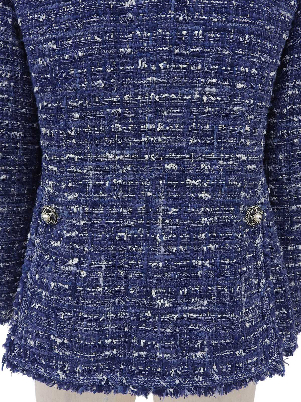 ツイードパールチェーンCCマークボタンジャケット ブルー/マルチ