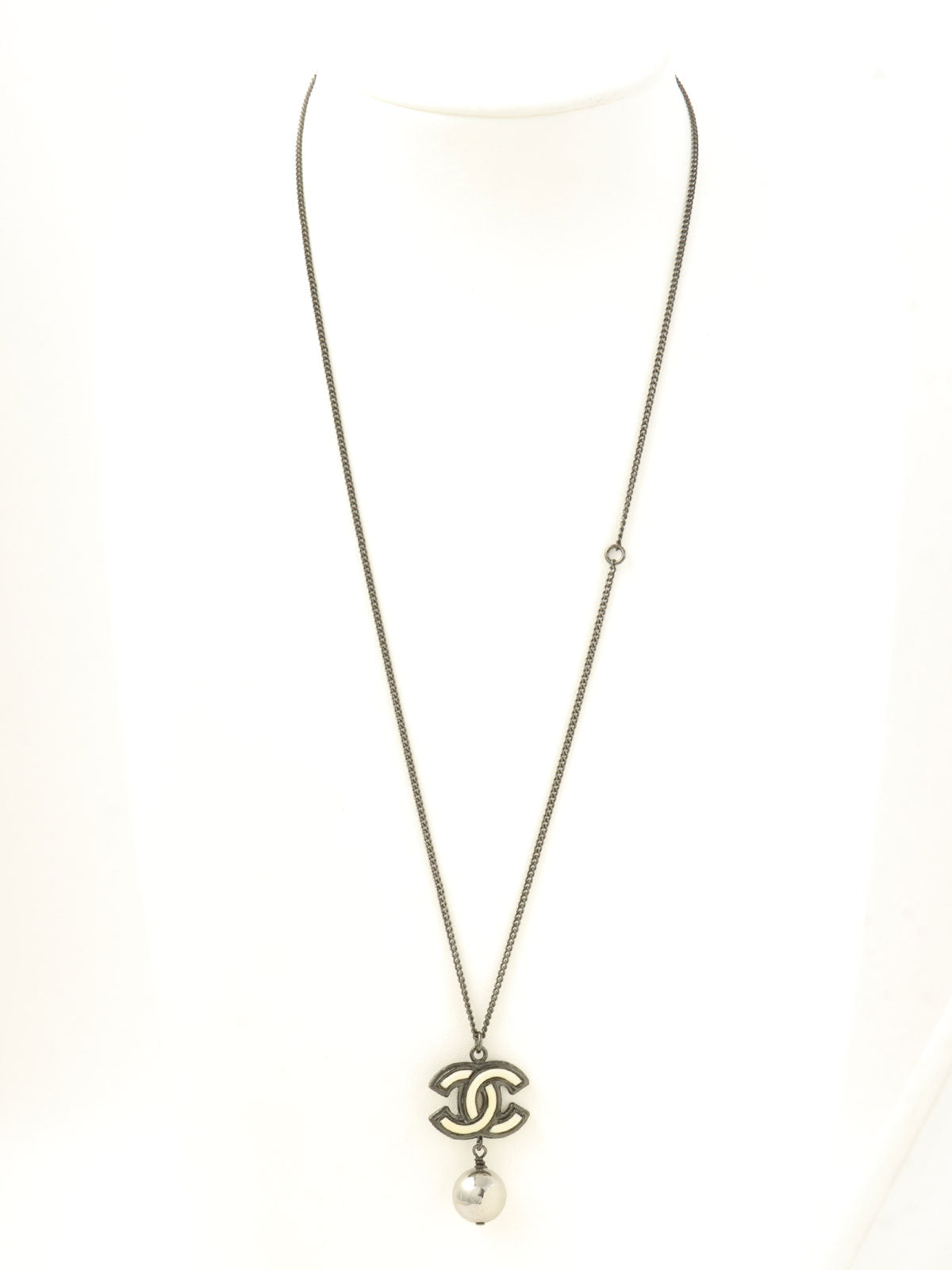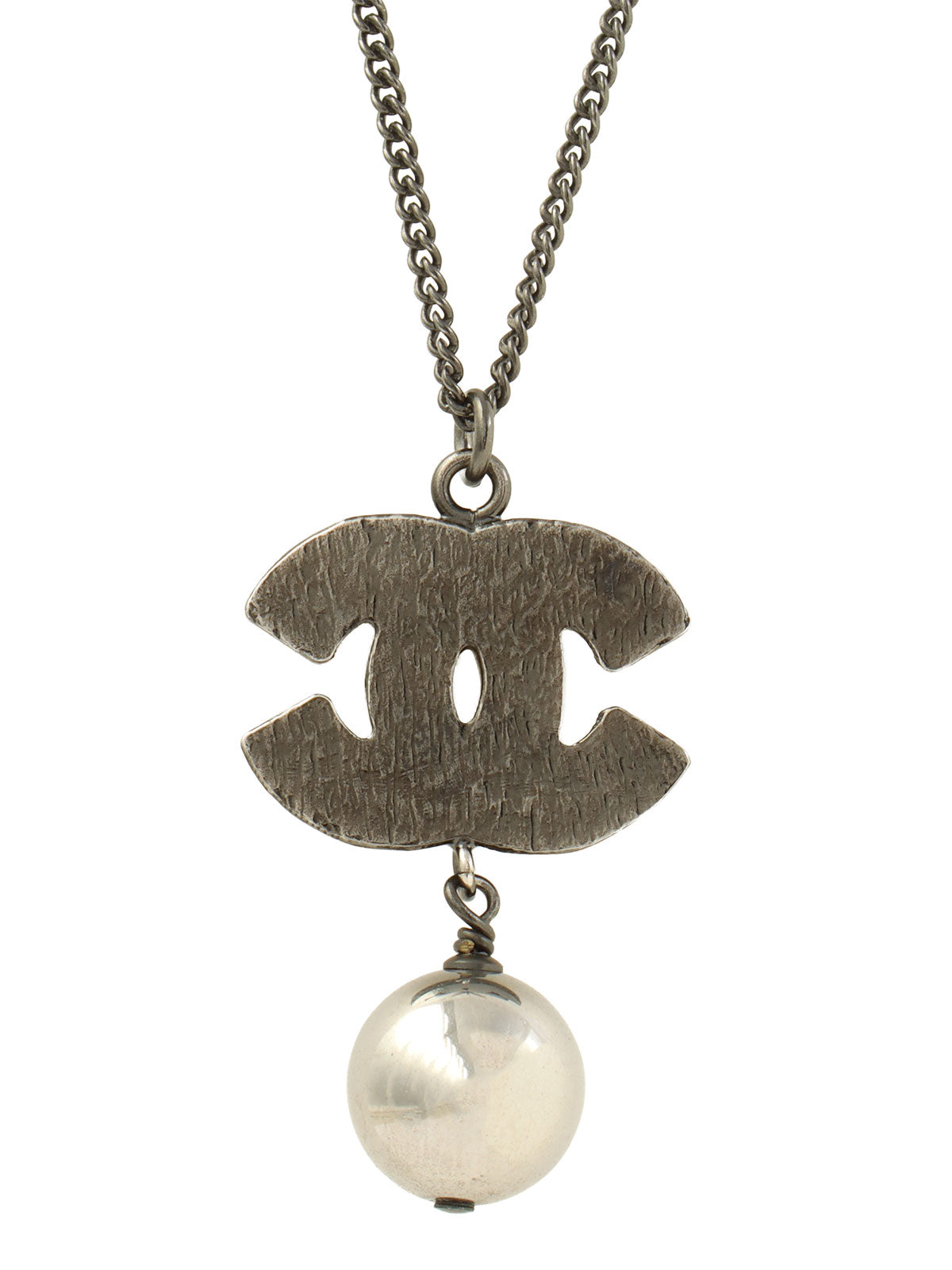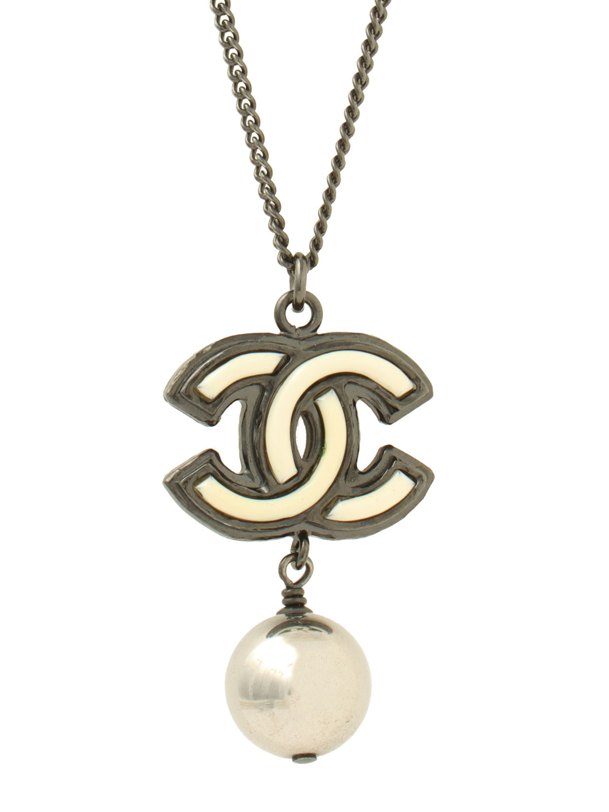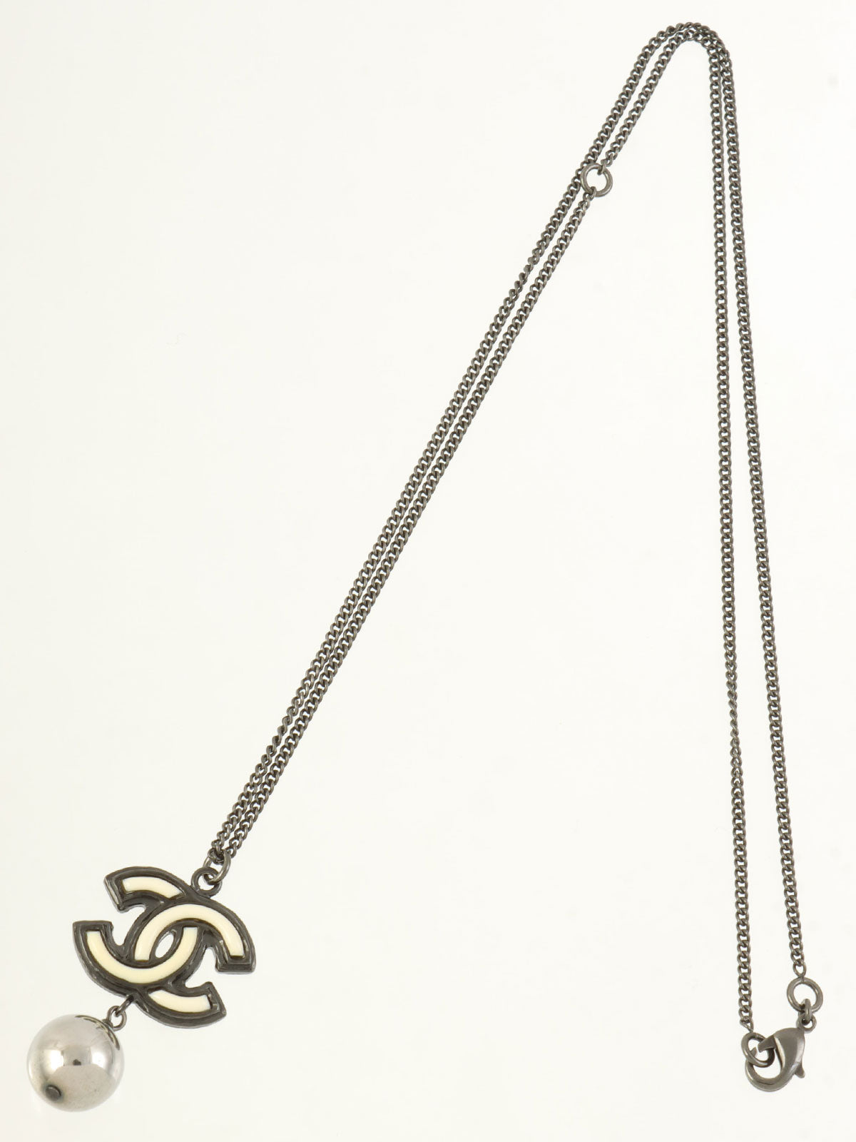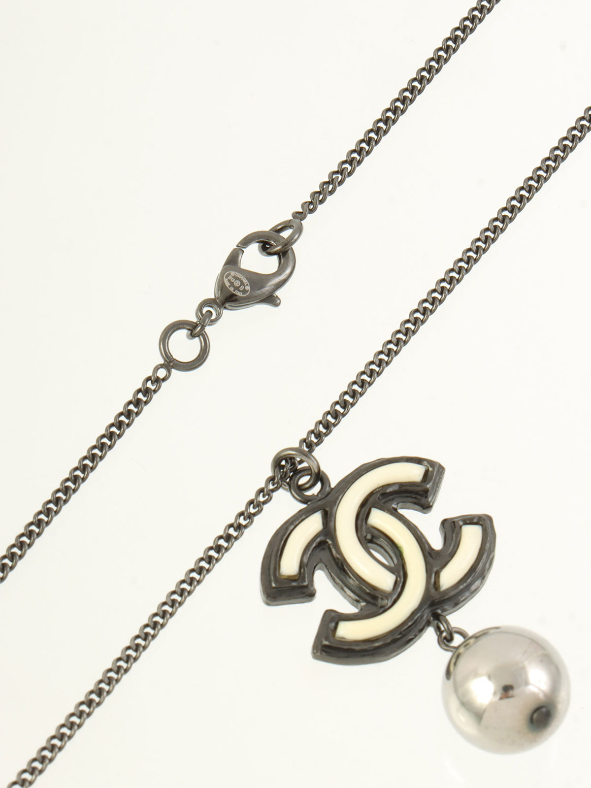 2013年製 CCマークボールスウィングネックレス ガンメタル/ホワイト