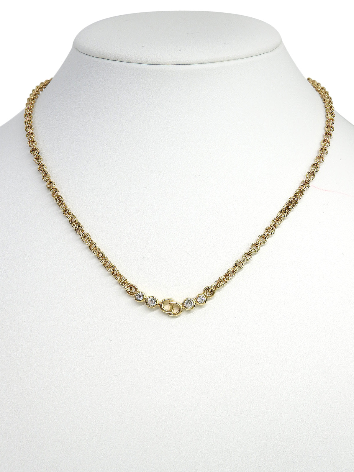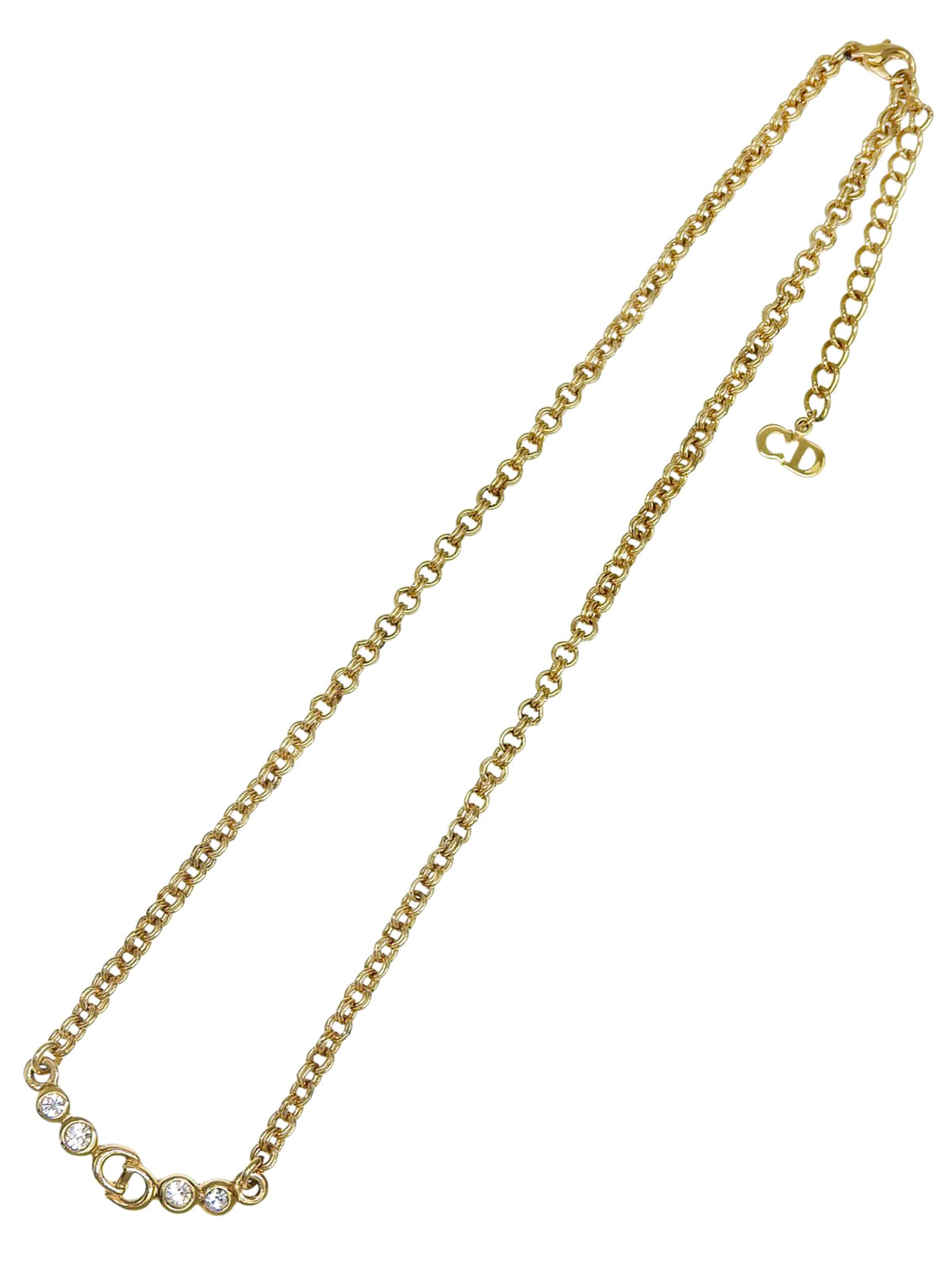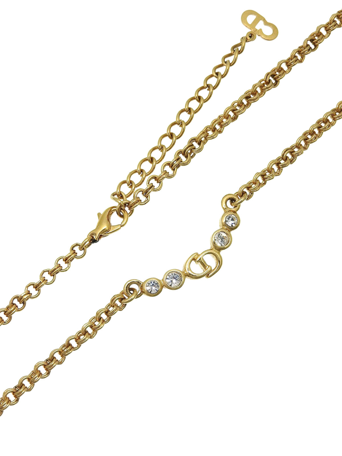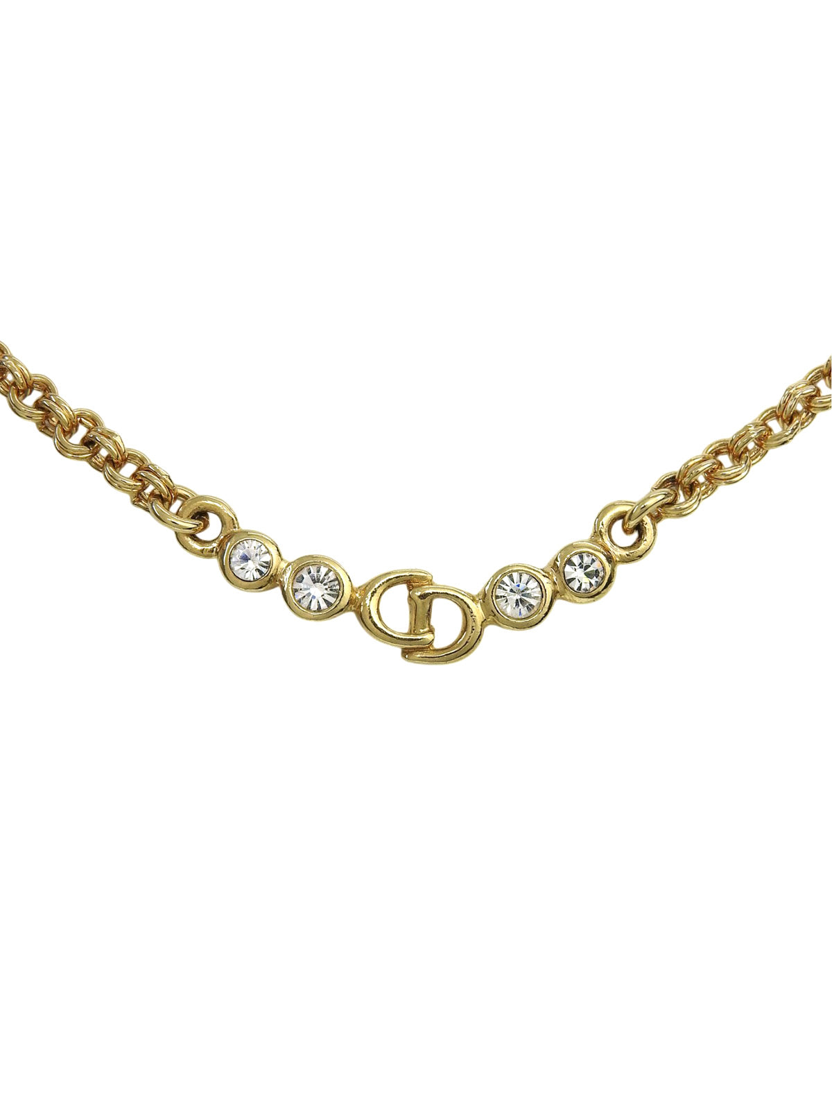 ラインストーンロゴプレートチェーンネックレス ゴールド