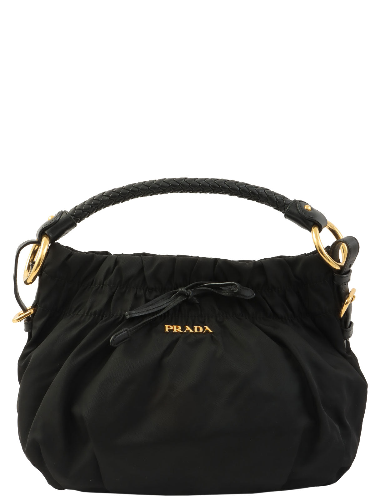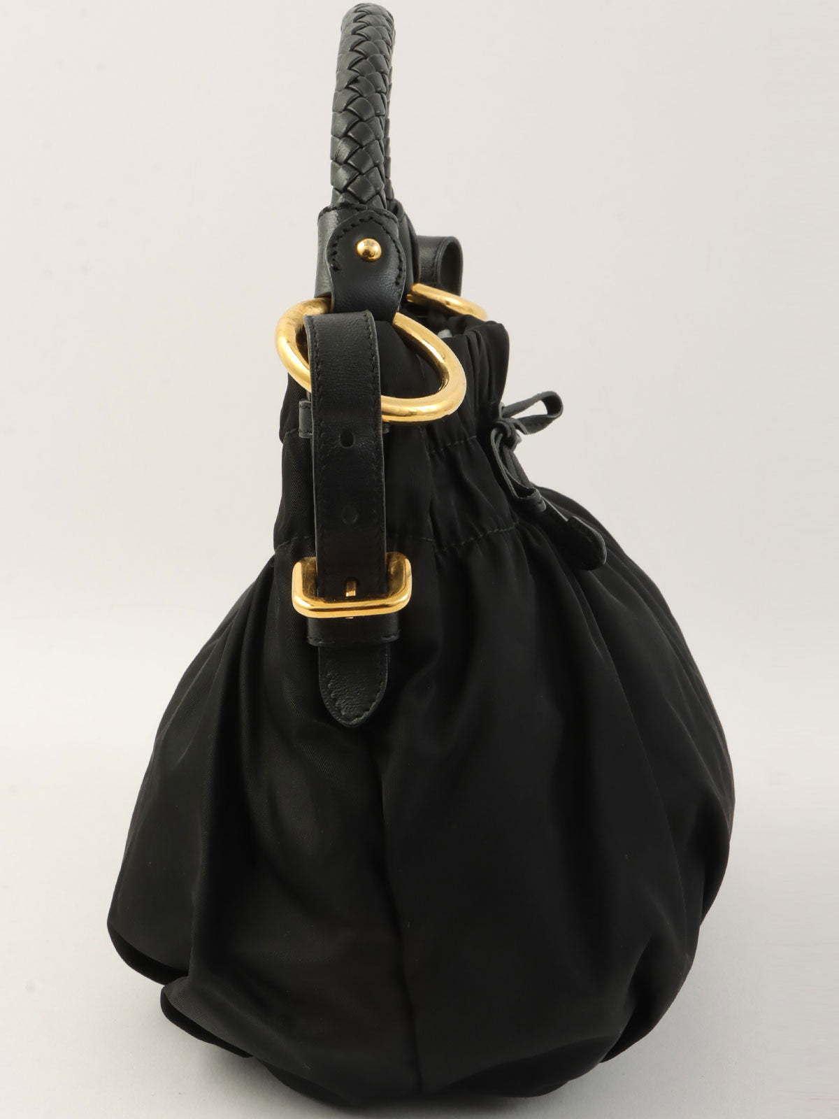 ナイロンロゴプレートリボンハンドバッグ ブラック