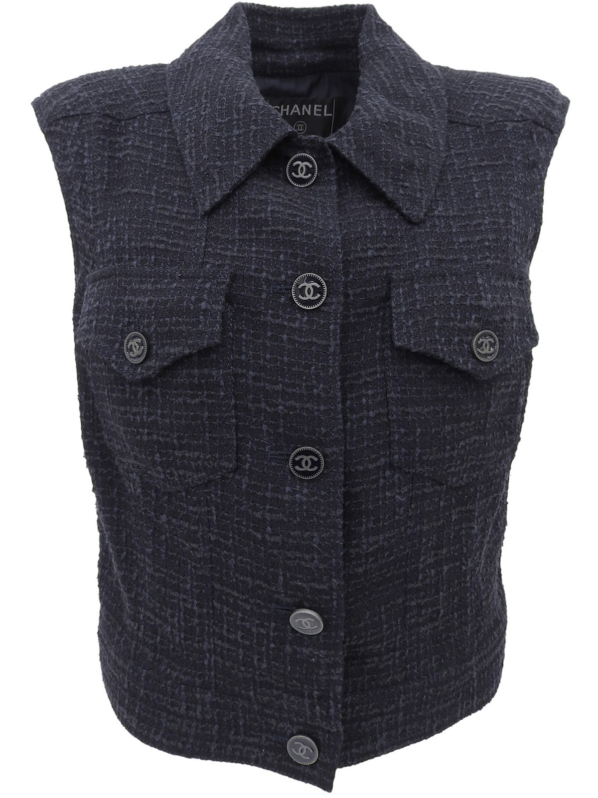 2001年製 ツイードCCマークボタンベスト ネイビー