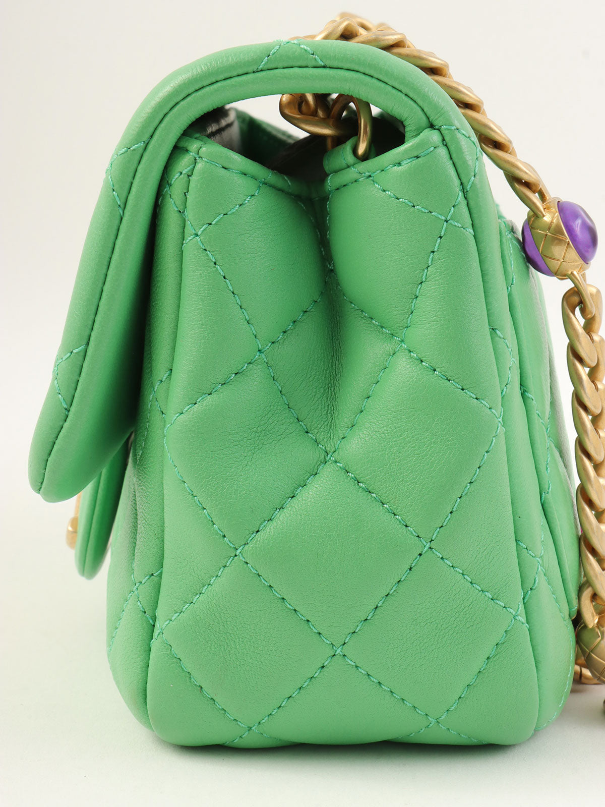 2021年頃製 カラーストーンチェーンクラシックフラップチェーンバッグミニ グリーン