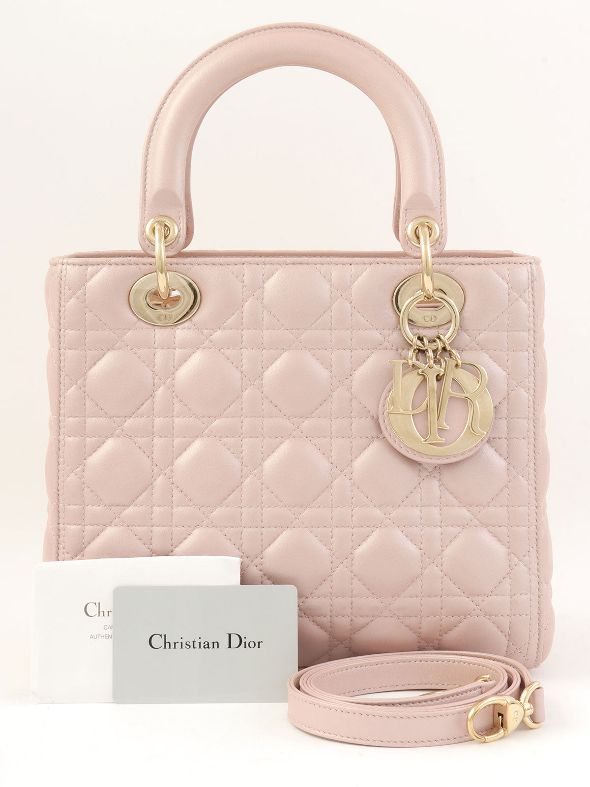 レディディオールカナージュステッチ2wayバッグM ピンク