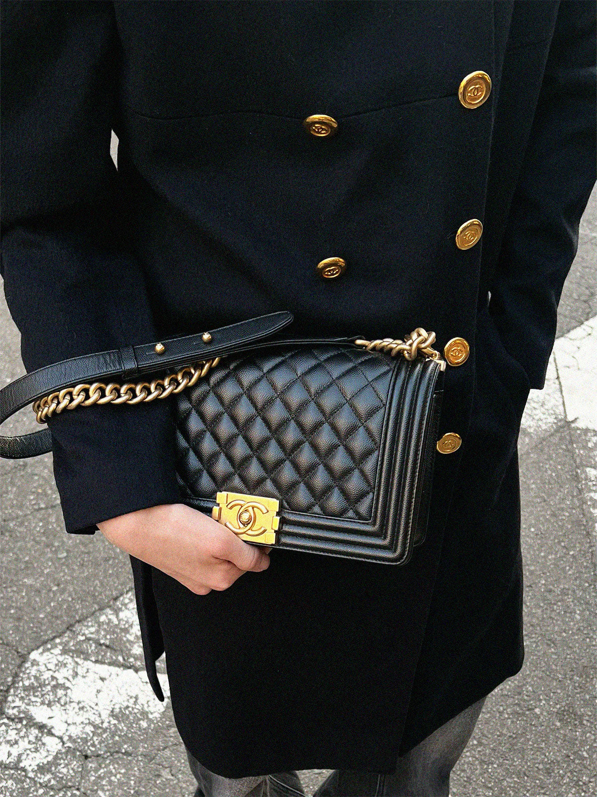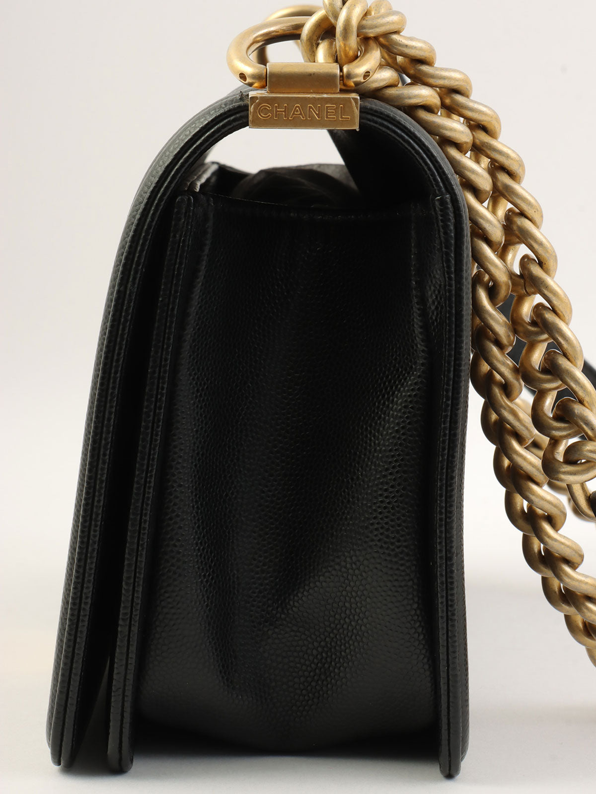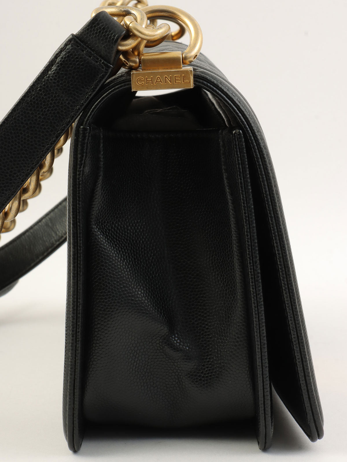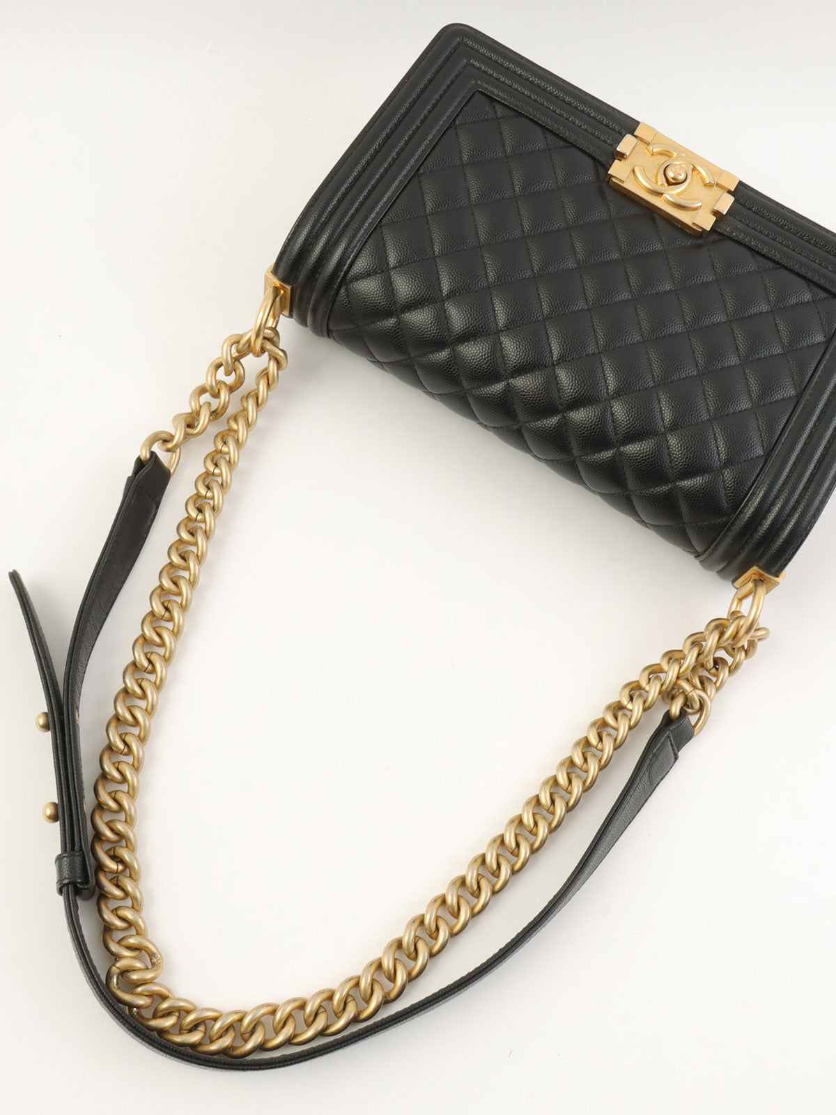 2003年頃製 キャビアスキンボーイシャネルチェーンショルダーバッグ ブラック