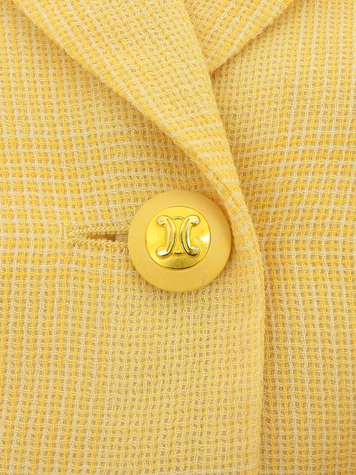チェックパターンマカダムボタンセットアップ クリームイエロー