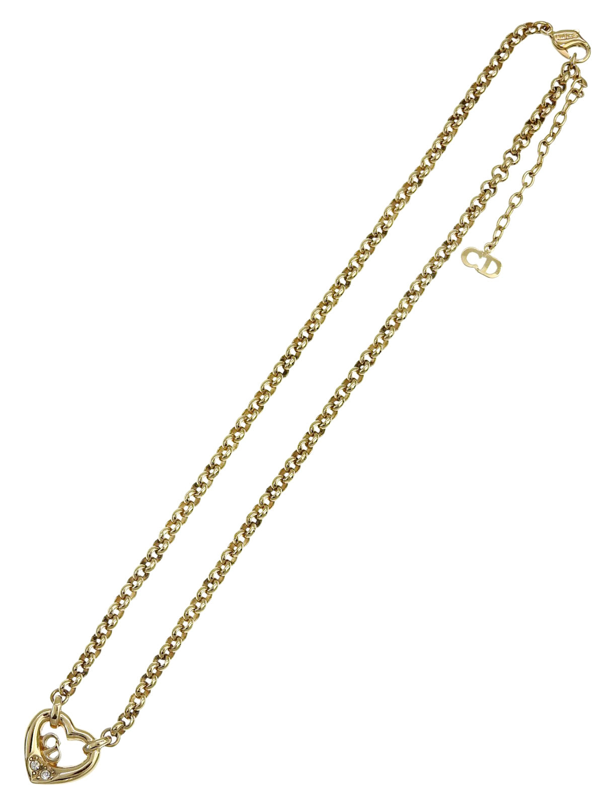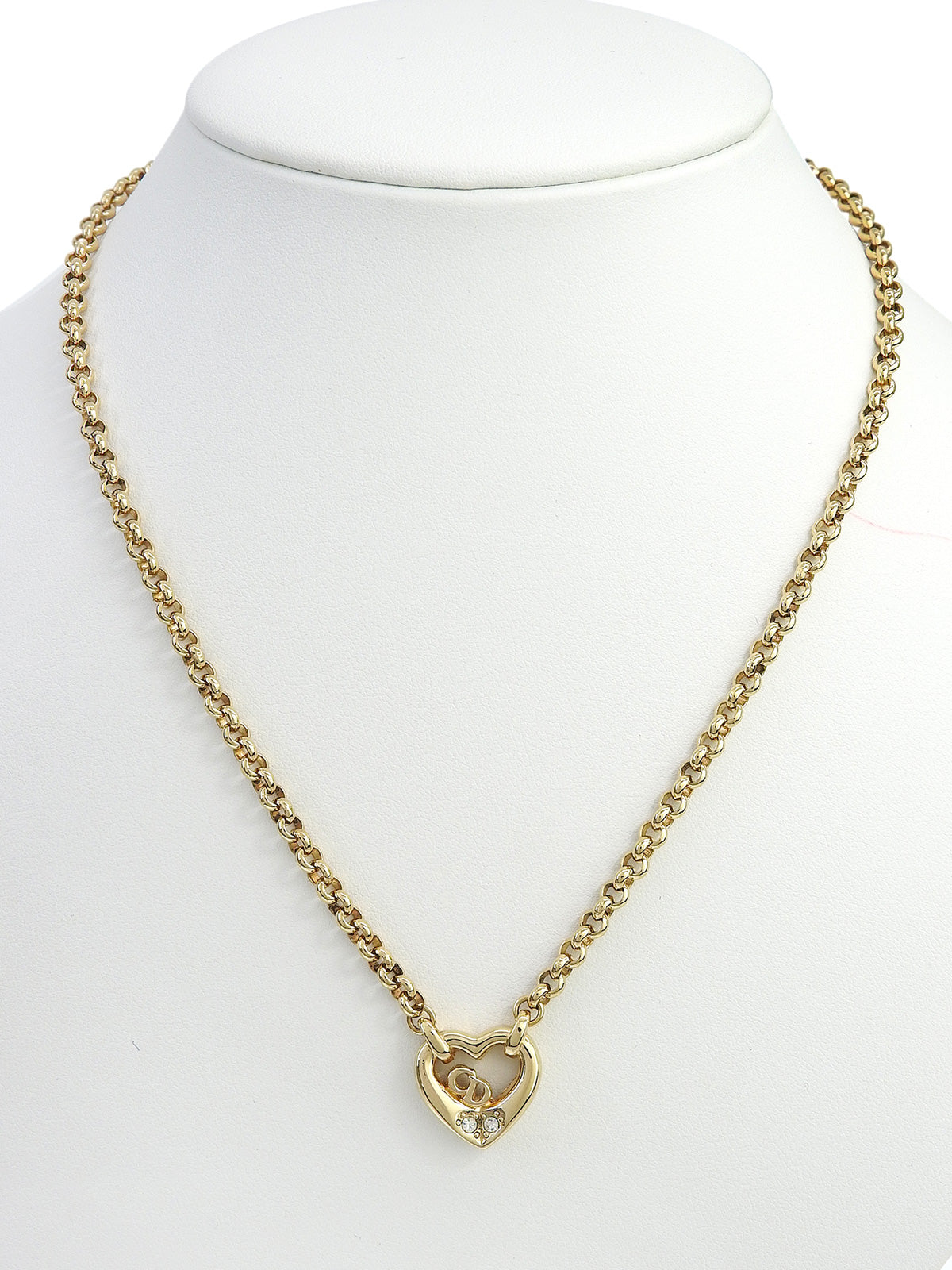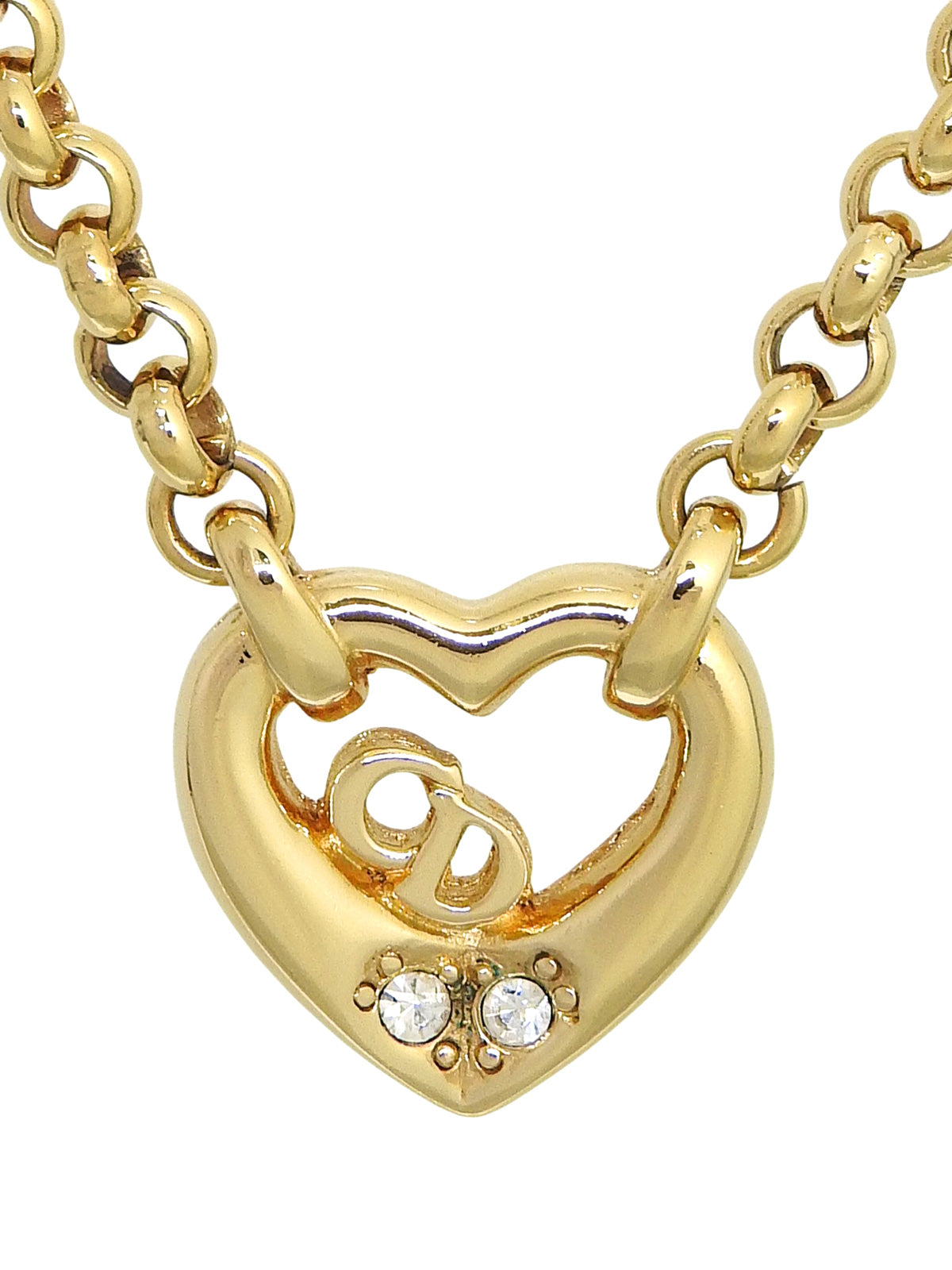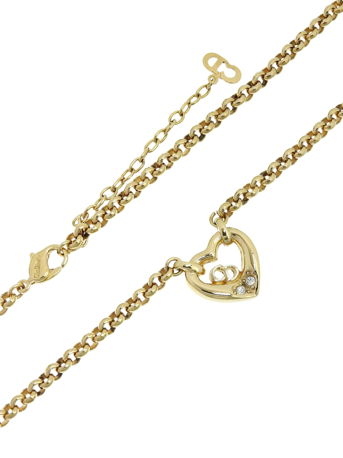 ラインストーンハートモチーフロゴネックレス ゴールド
