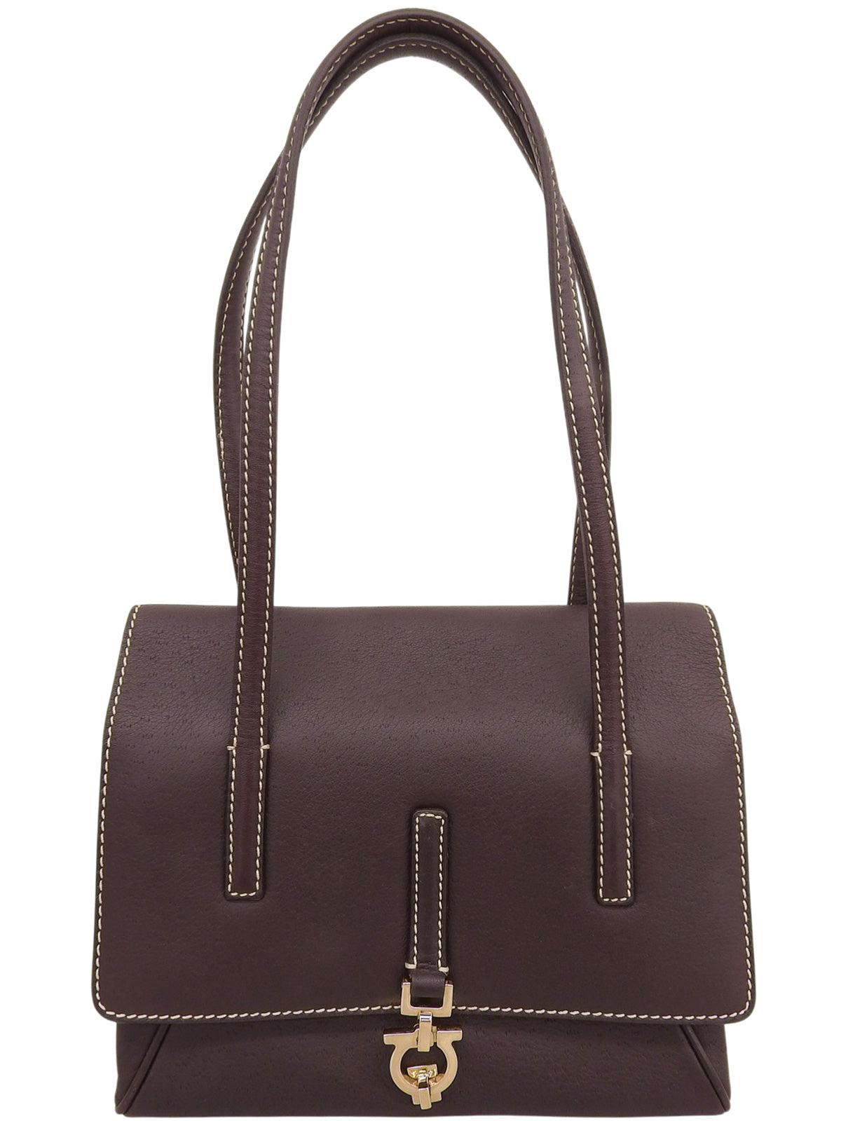 ガンチーニプレートハンドバッグ ブラウン