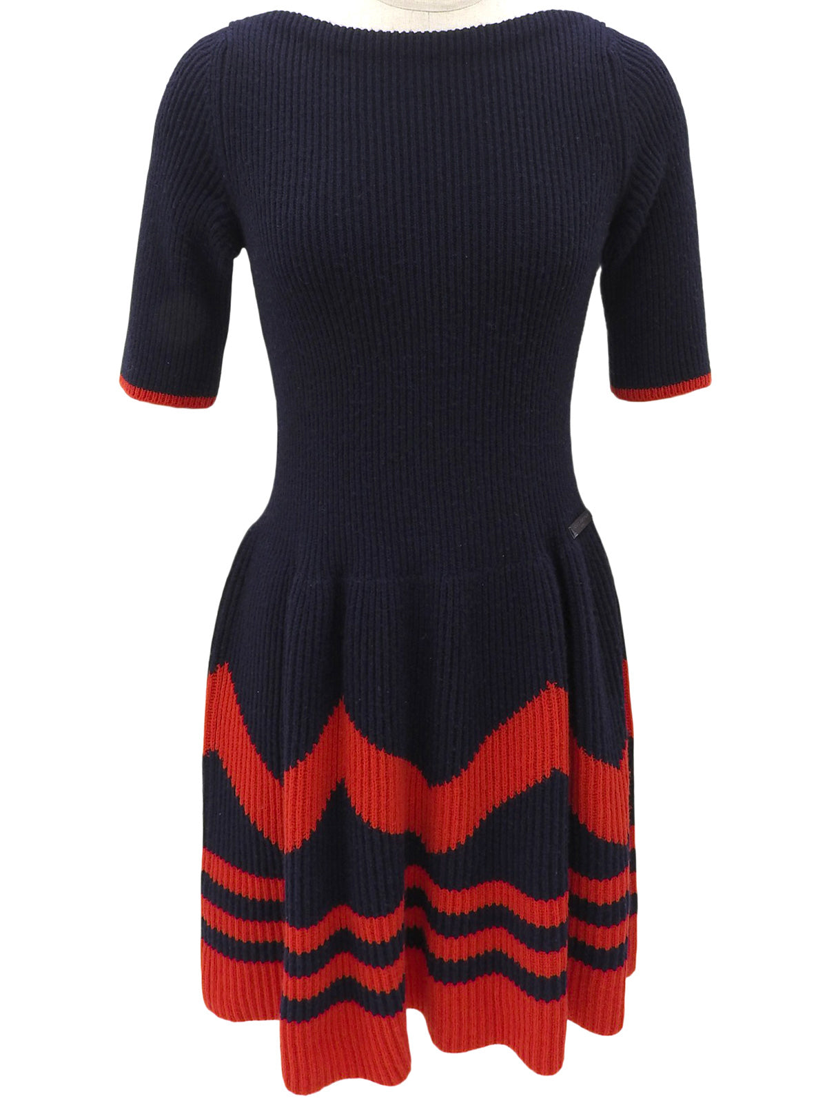 ロゴプレート半袖ニットワンピース ネイビー/レッド