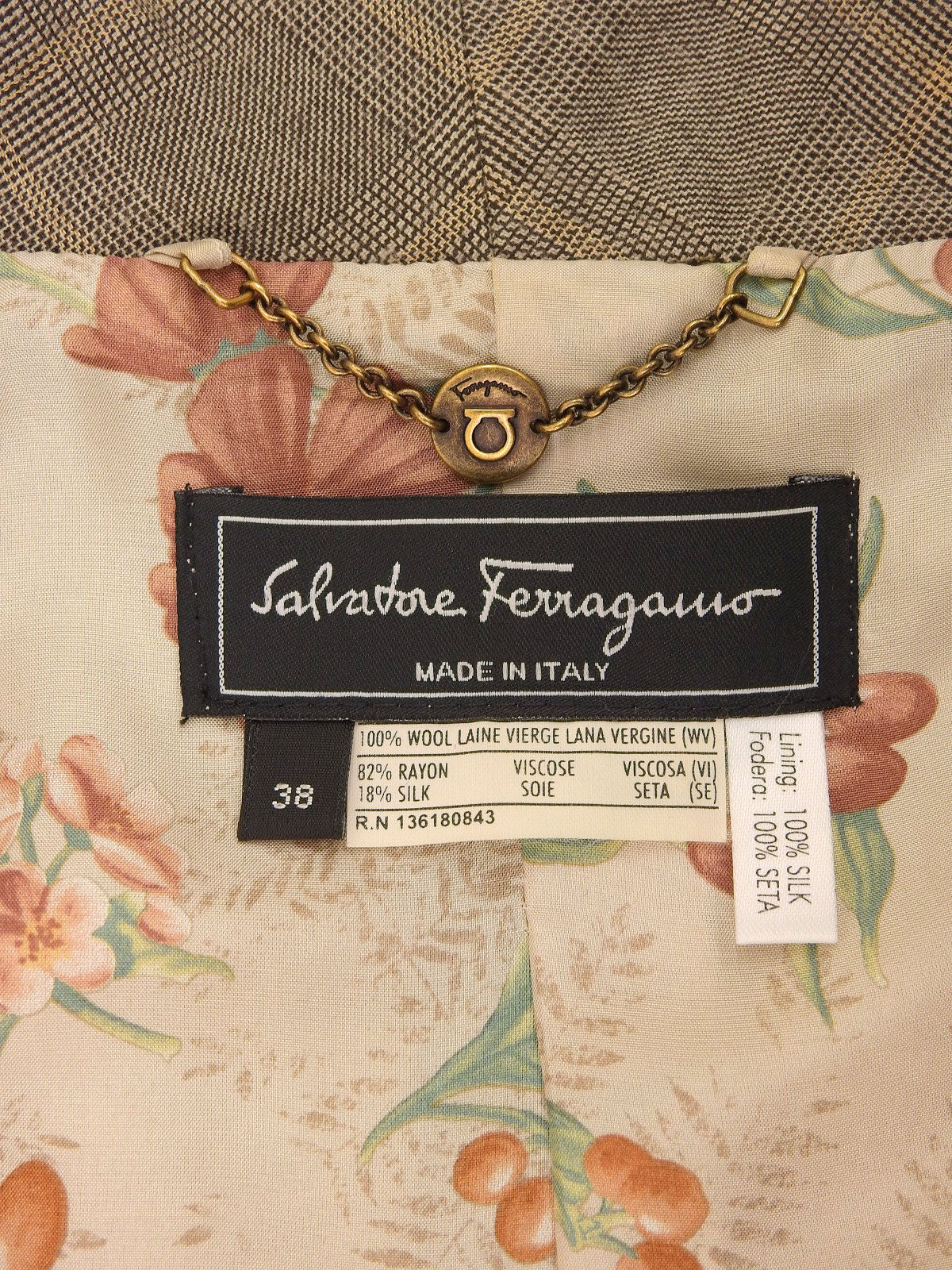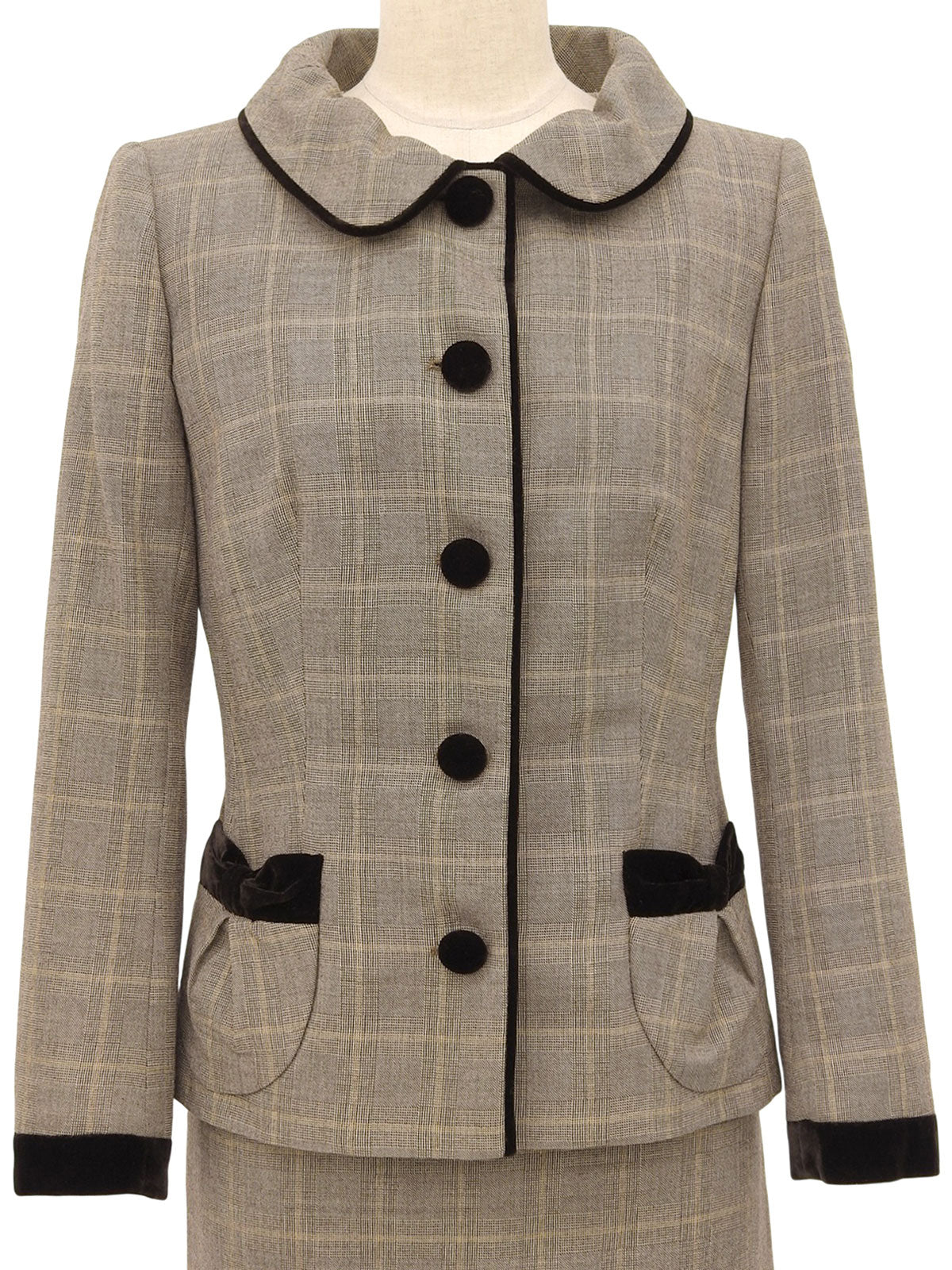 ウールベロアコンビチェックパターンセットアップ ブラウン
