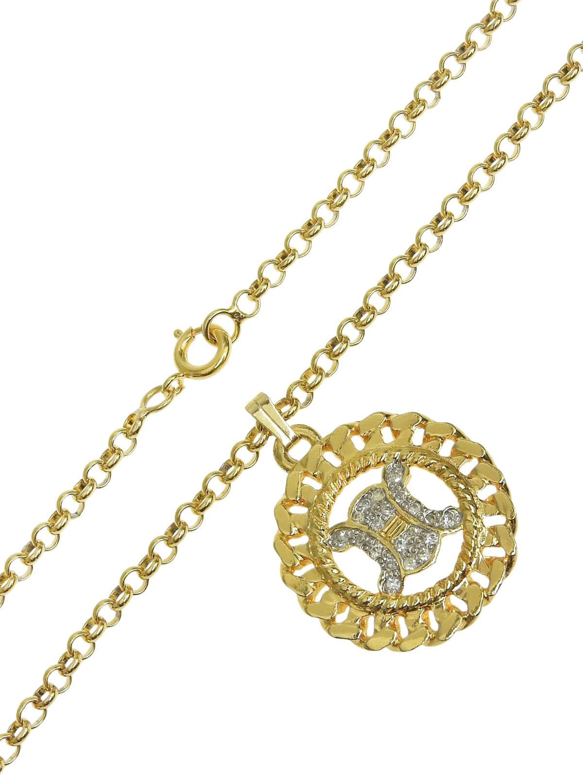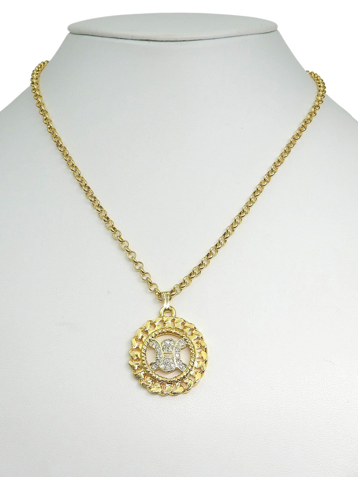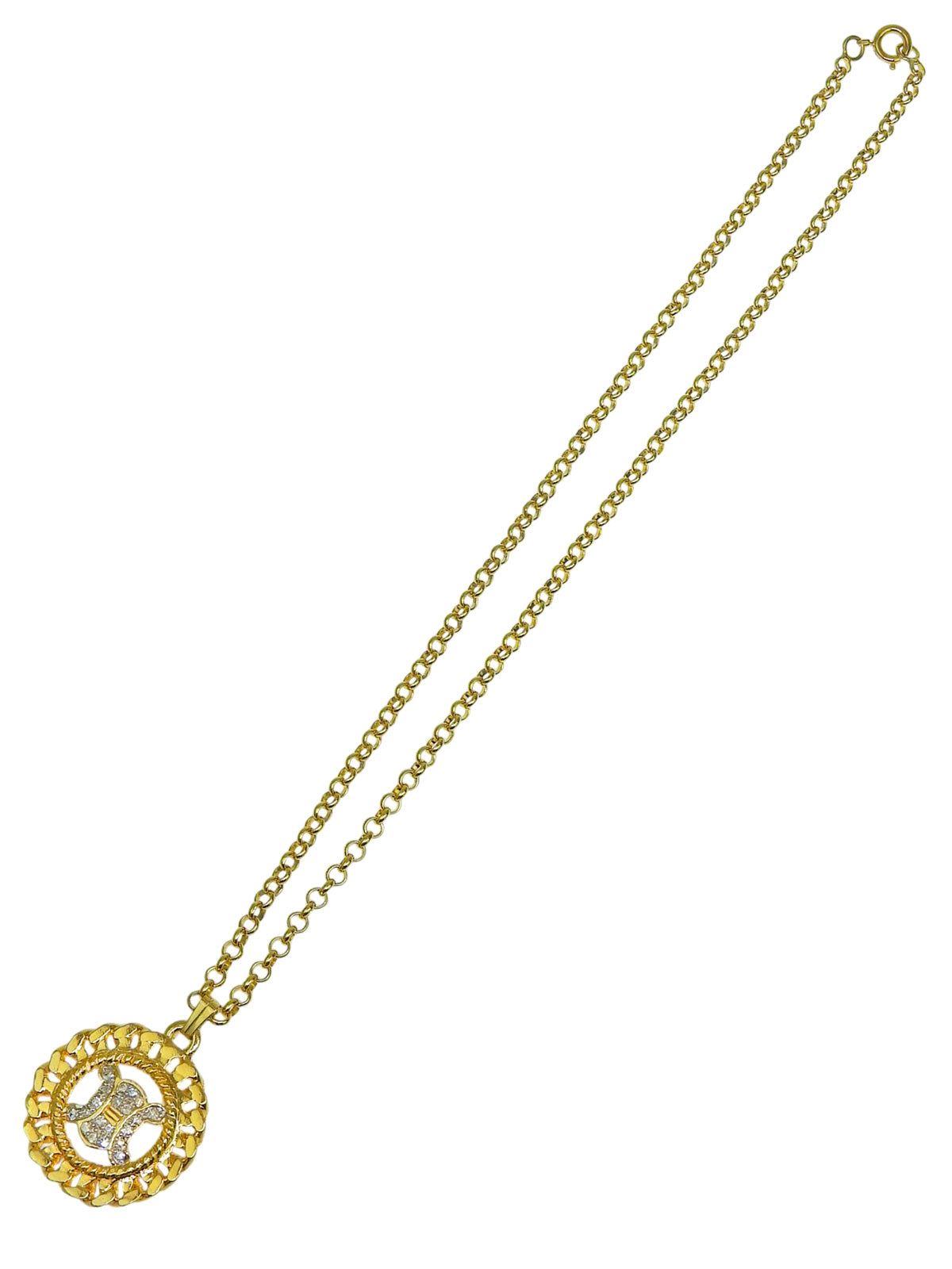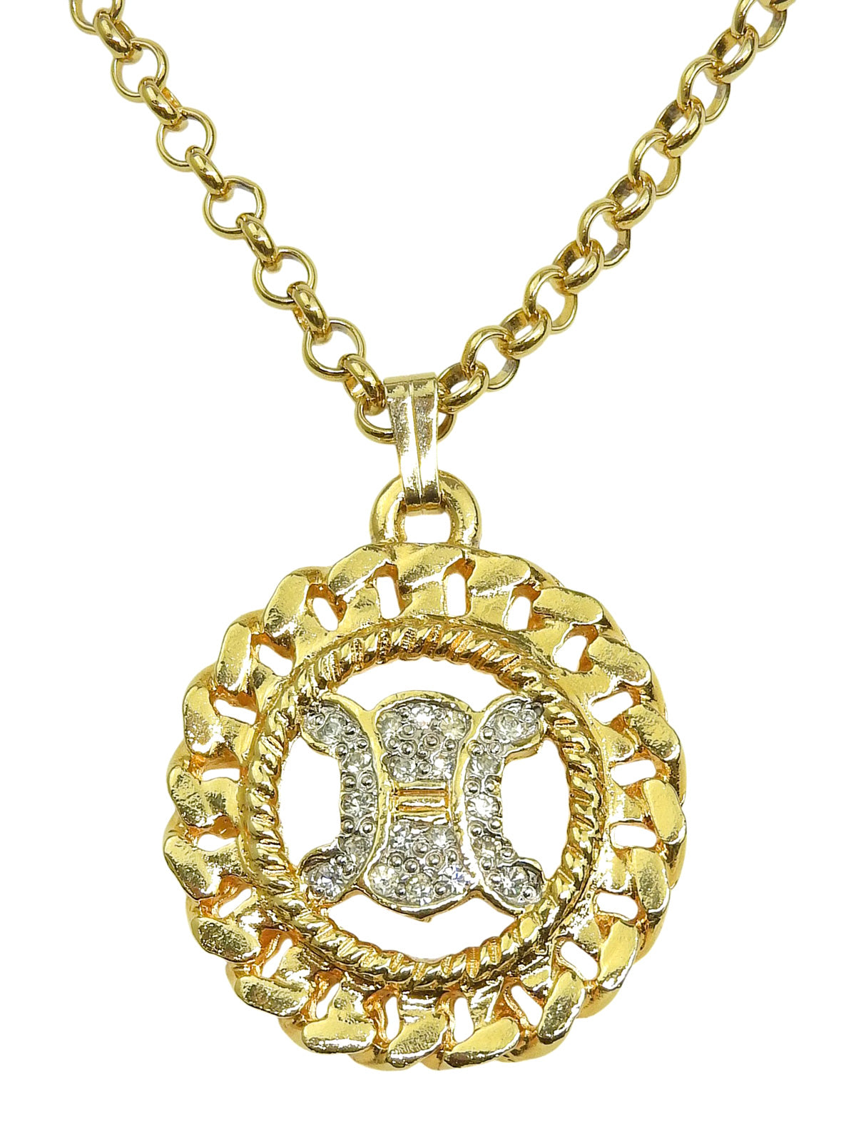 ラインストーンサークルマカダムプレートネックレス ゴールド