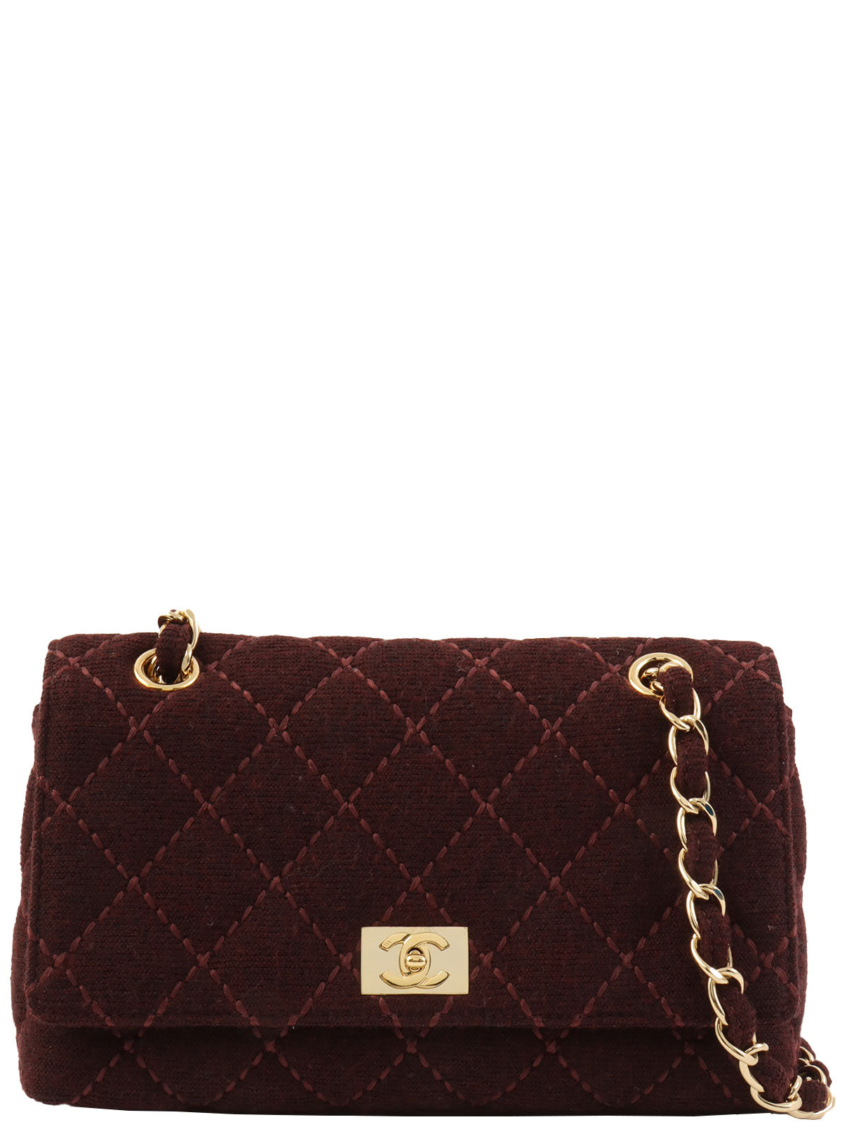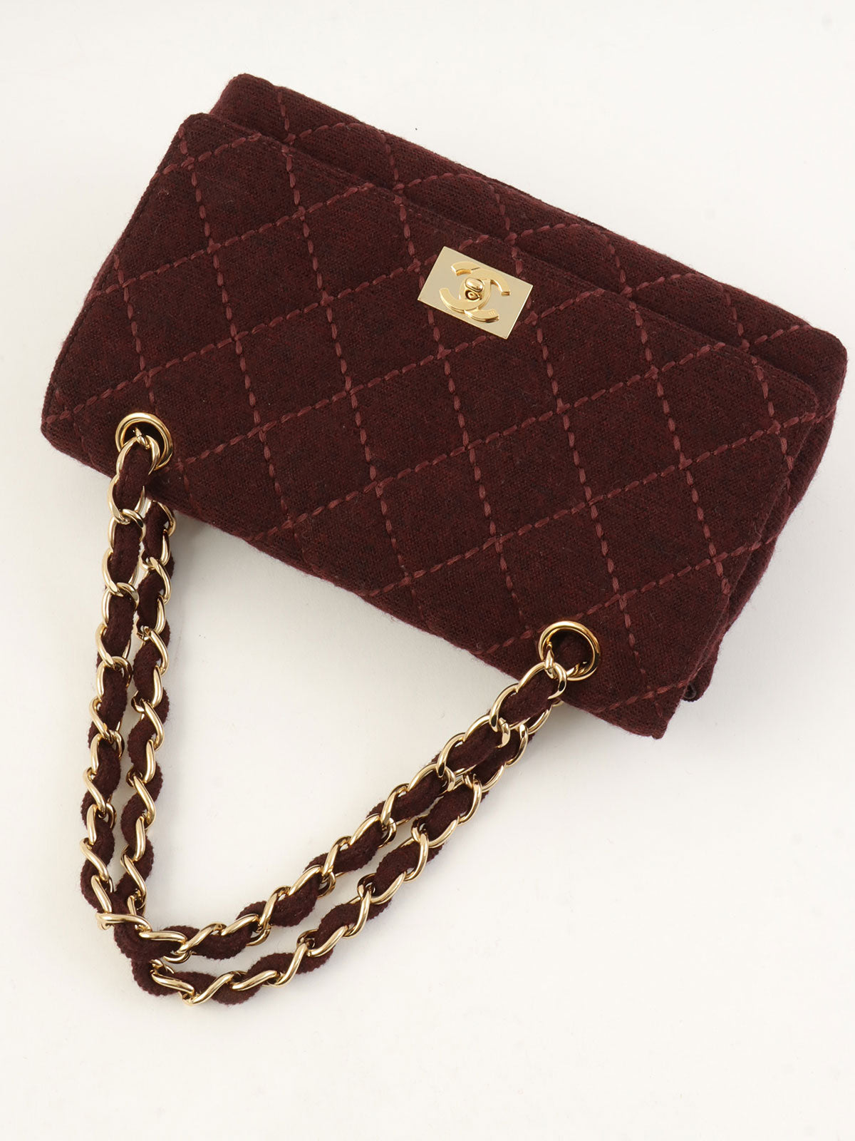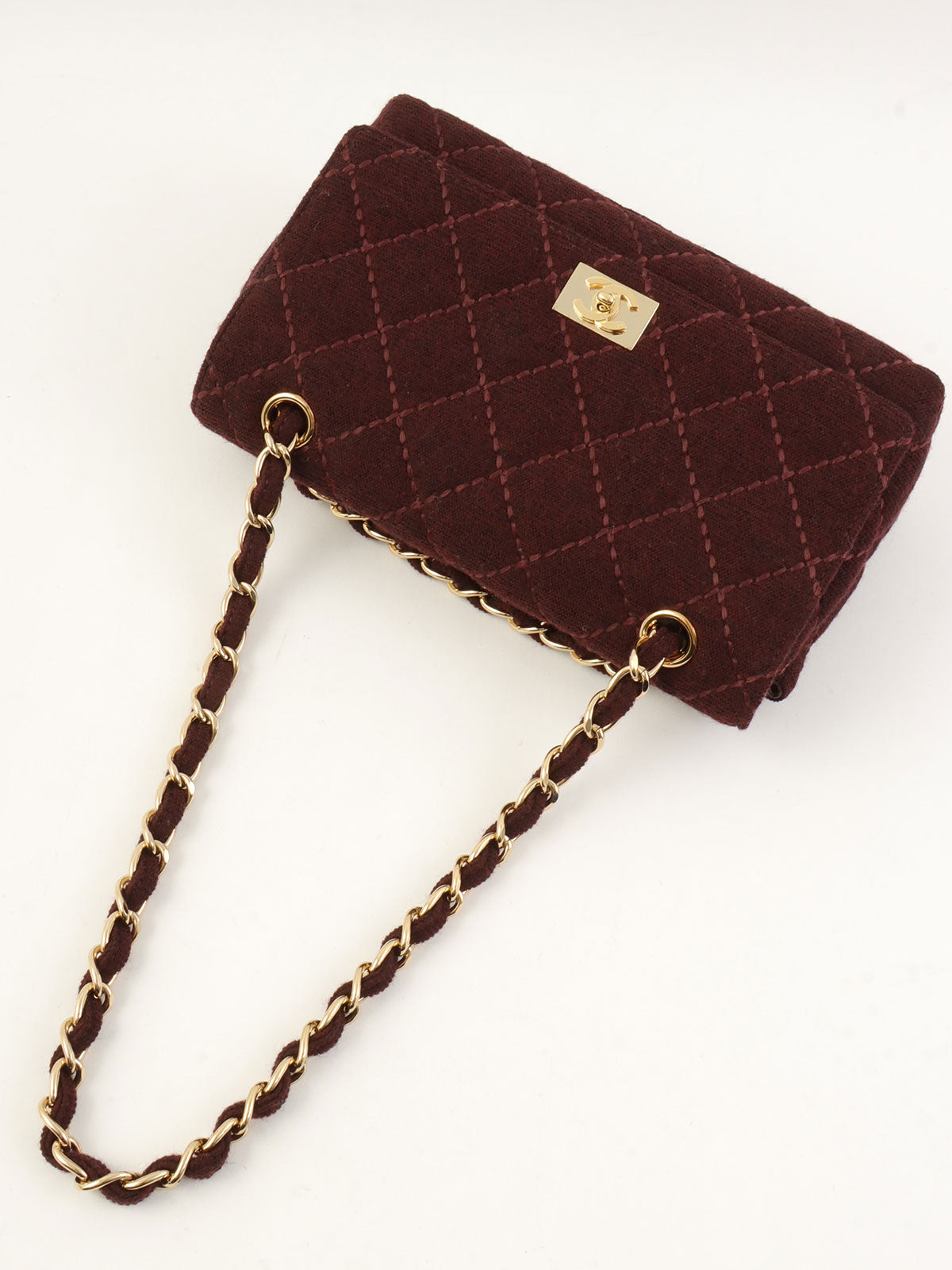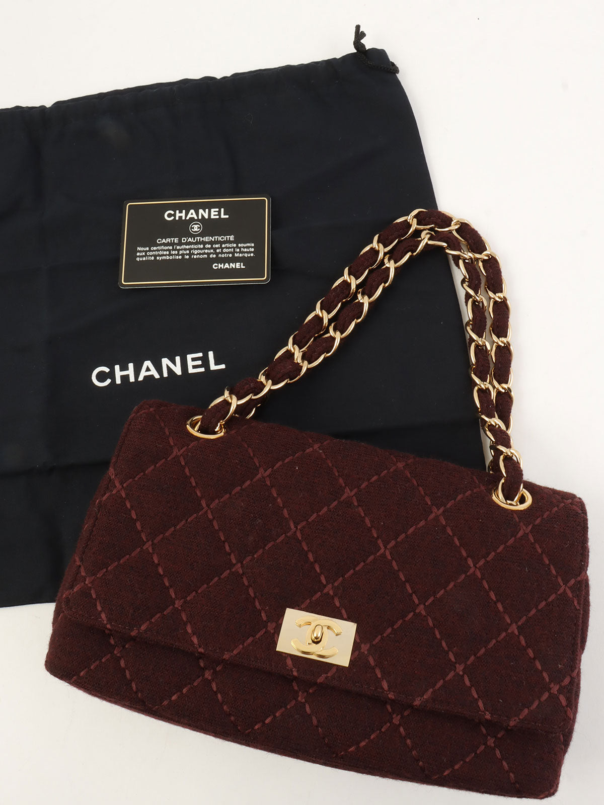 2001年頃製 ウールワイルドステッチCCターンロックチェーンショルダーバッグ ボルドー