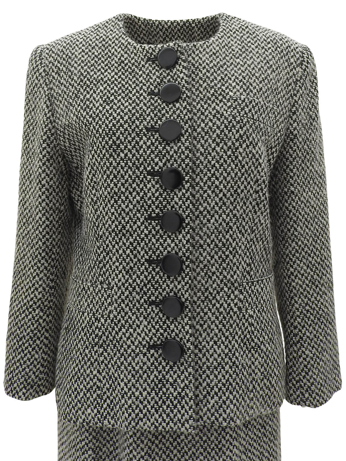 ツイードノーカラーセットアップ ホワイト/ブラック