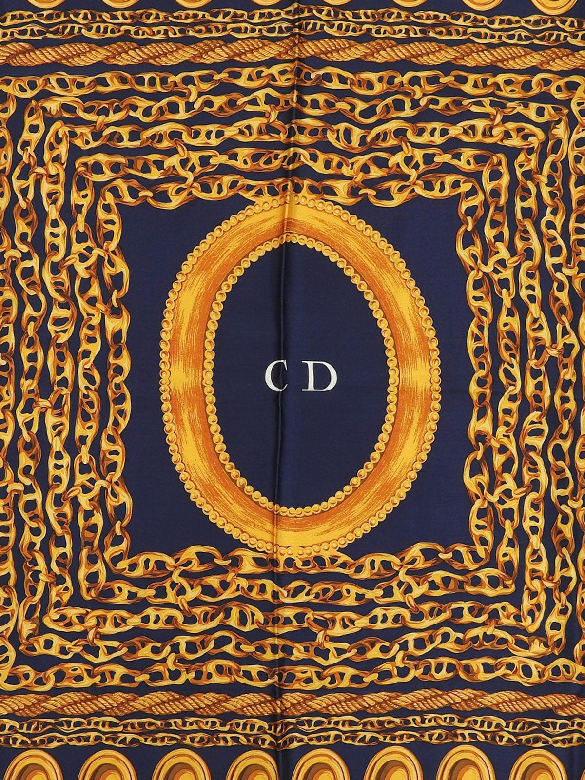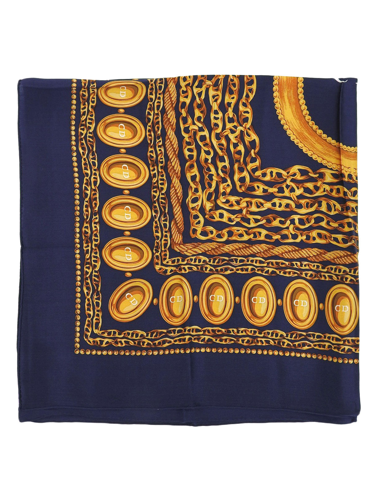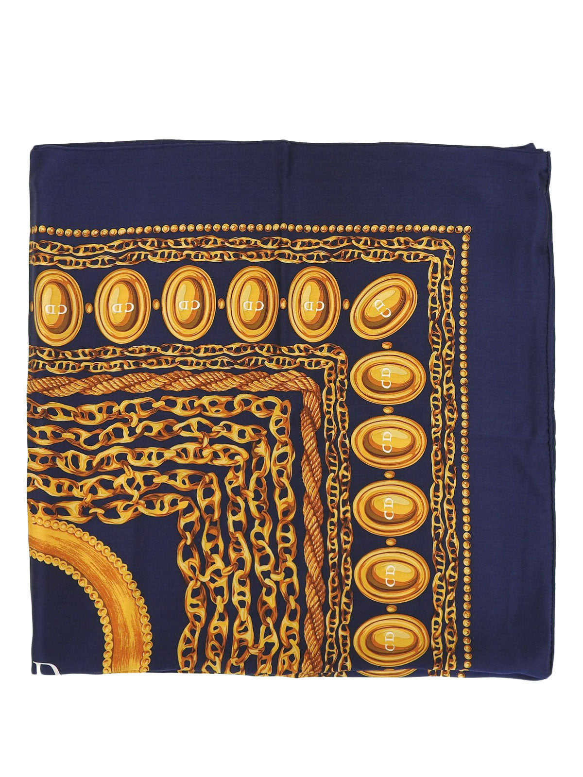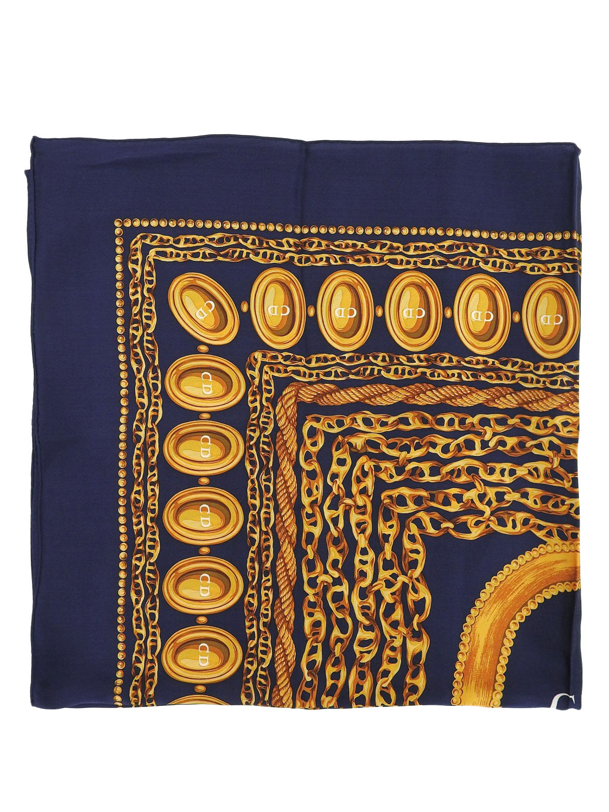 シルクチェーンモチーフスカーフ ネイビー/ゴールド