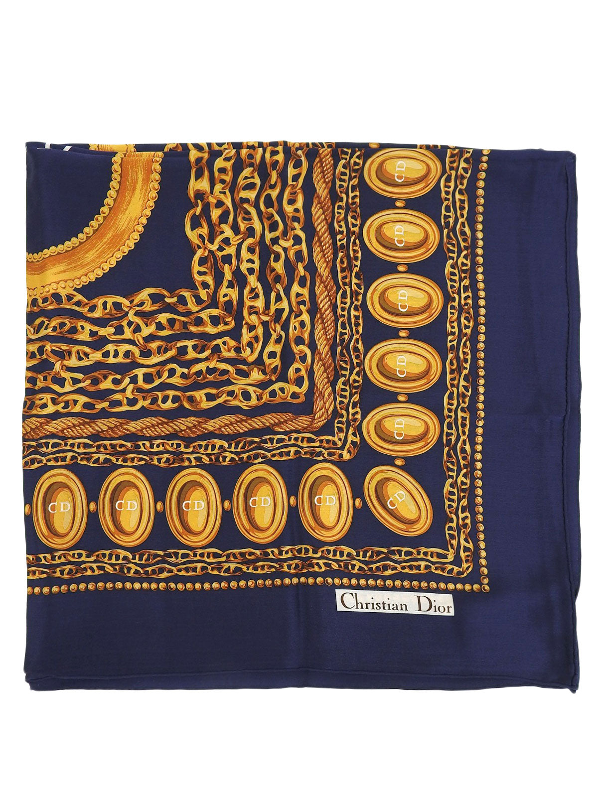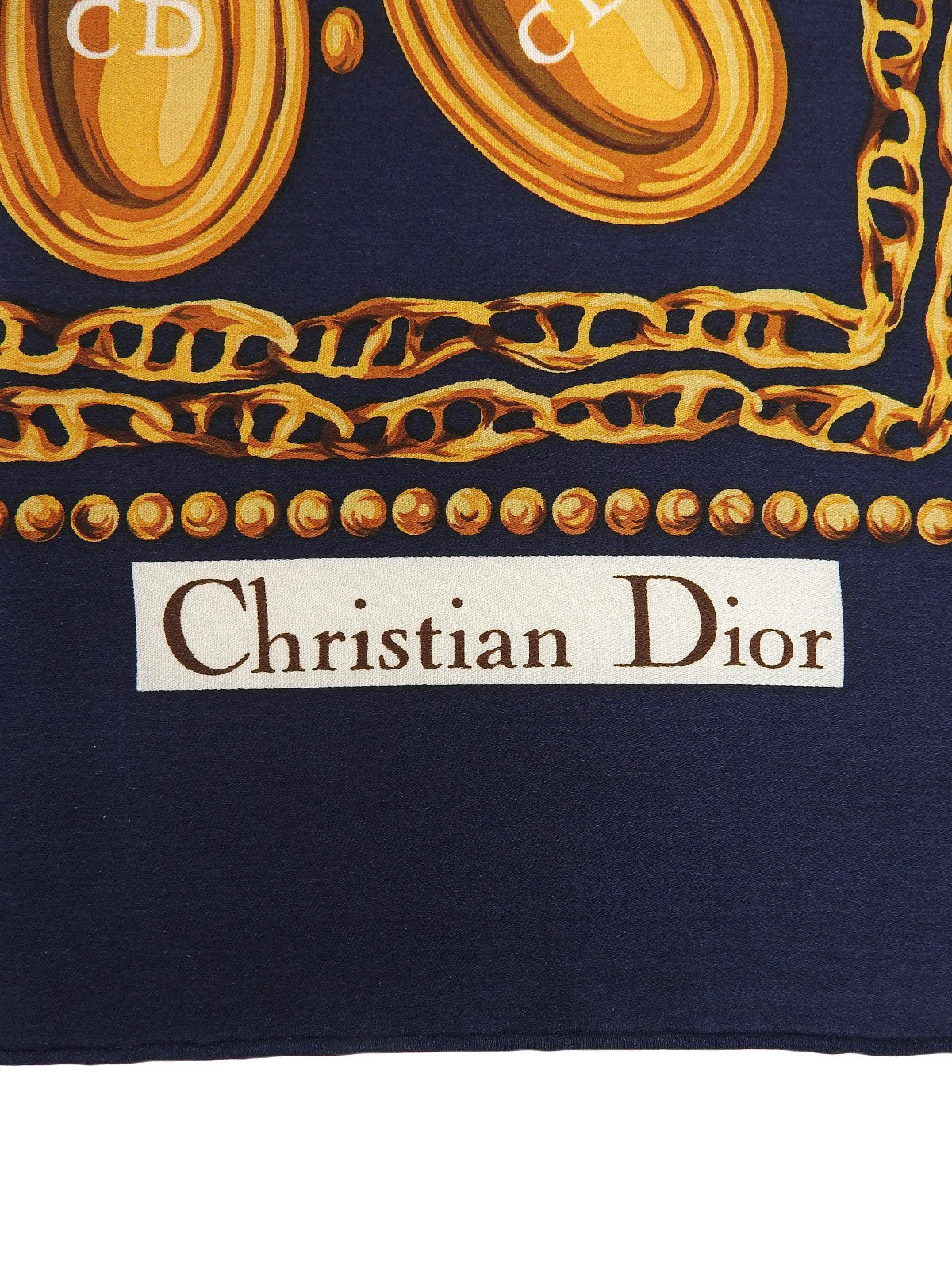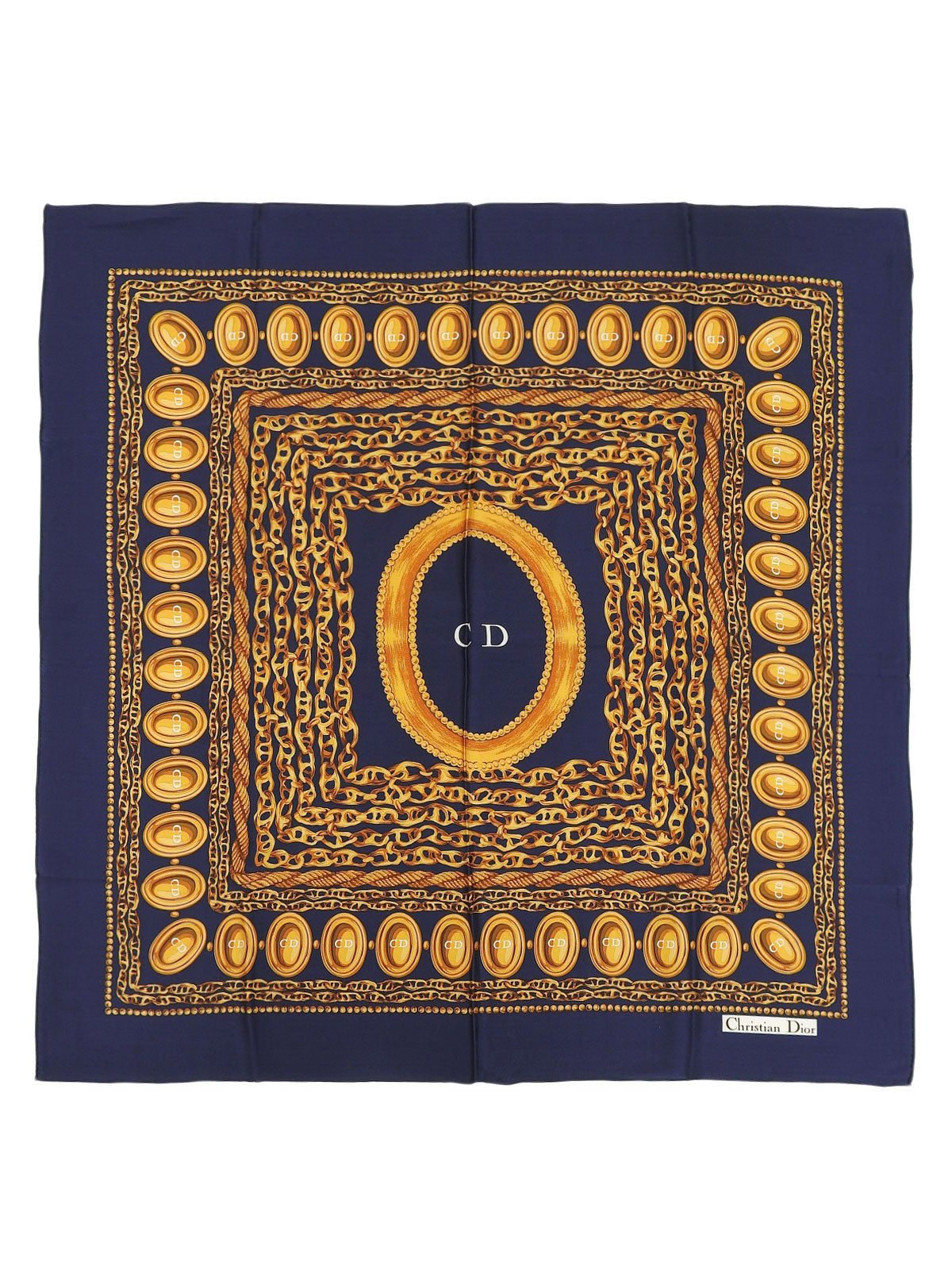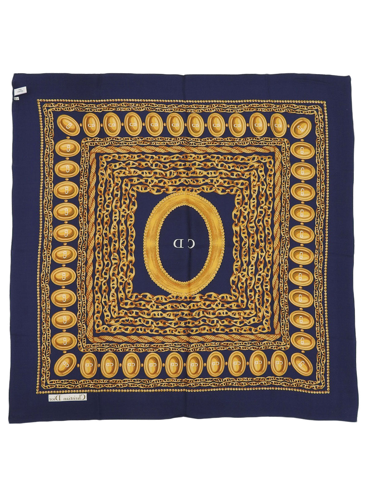 シルクチェーンモチーフスカーフ ネイビー/ゴールド