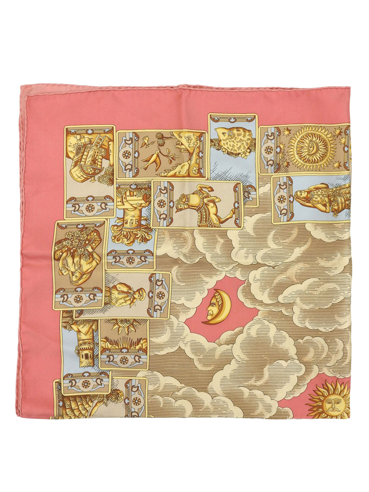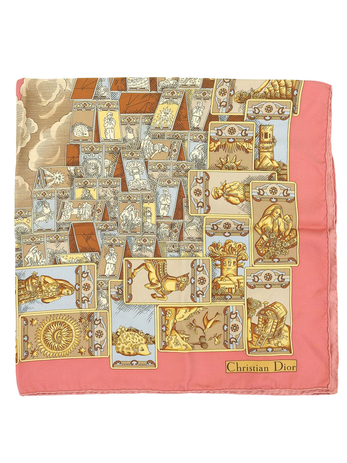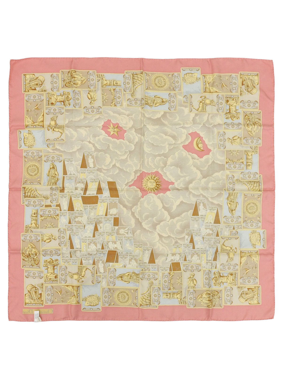 シルクタロットカードモチーフスカーフ ピンク/イエロー/マルチ