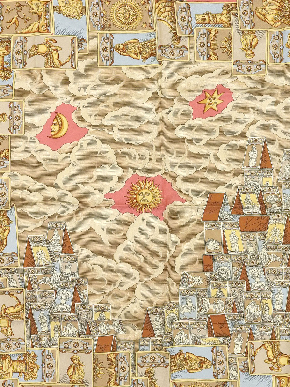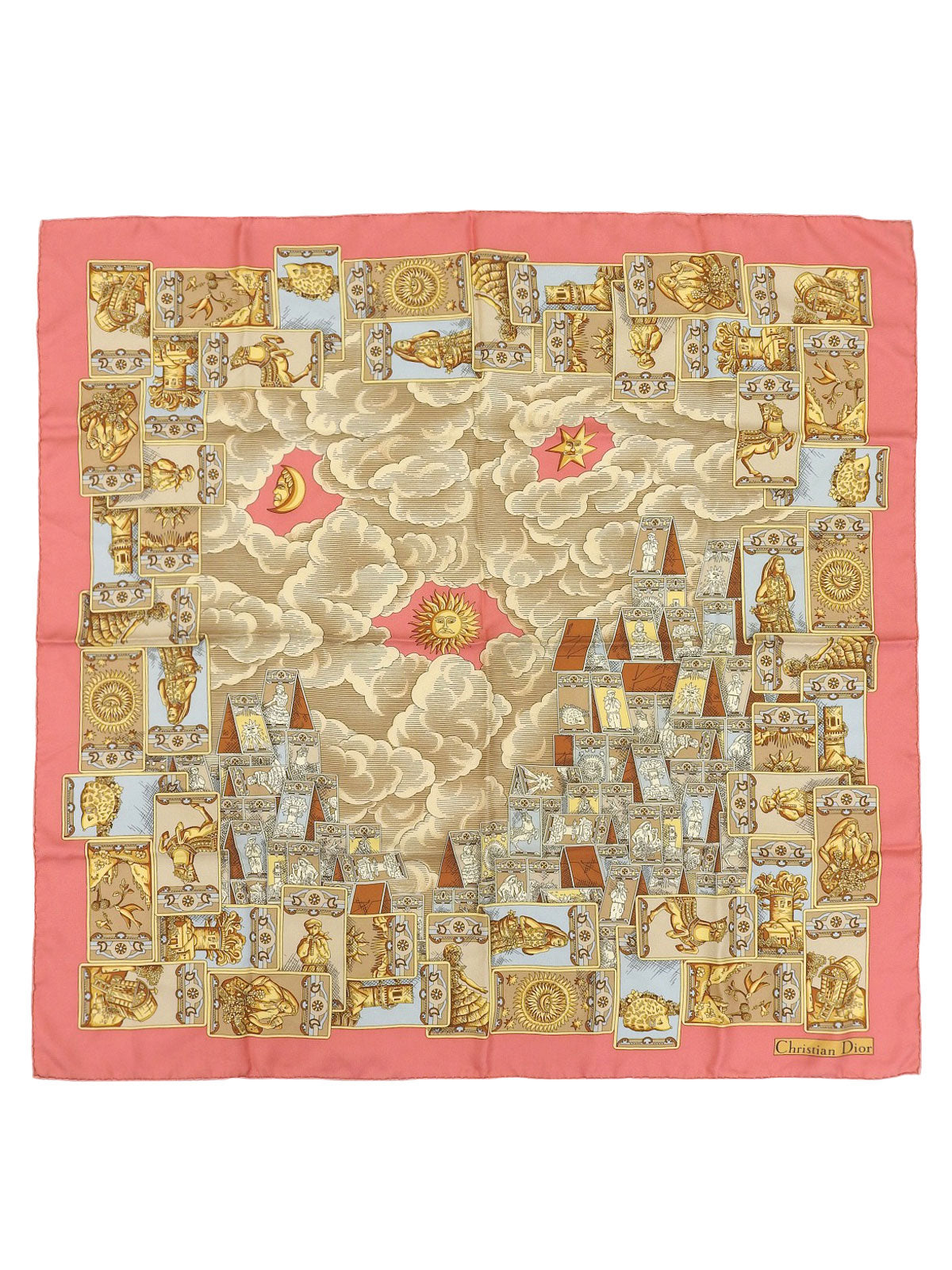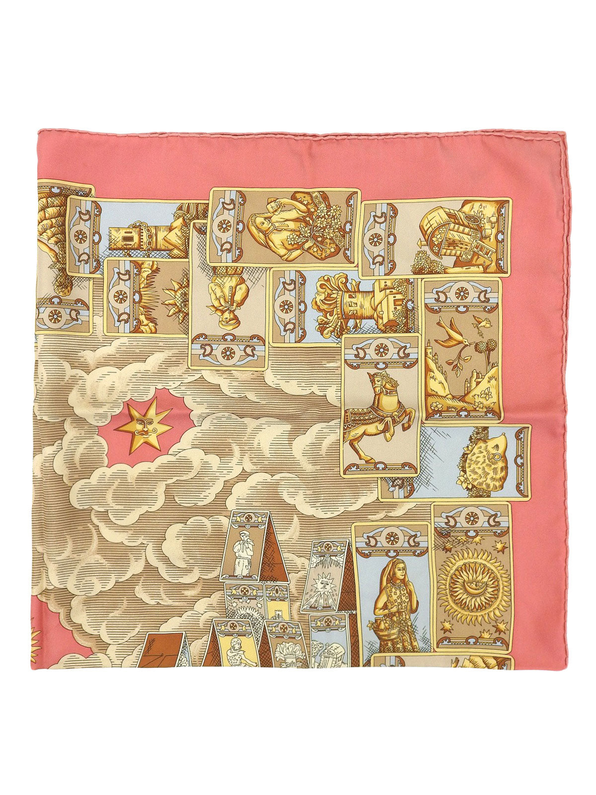 シルクタロットカードモチーフスカーフ ピンク/イエロー/マルチ