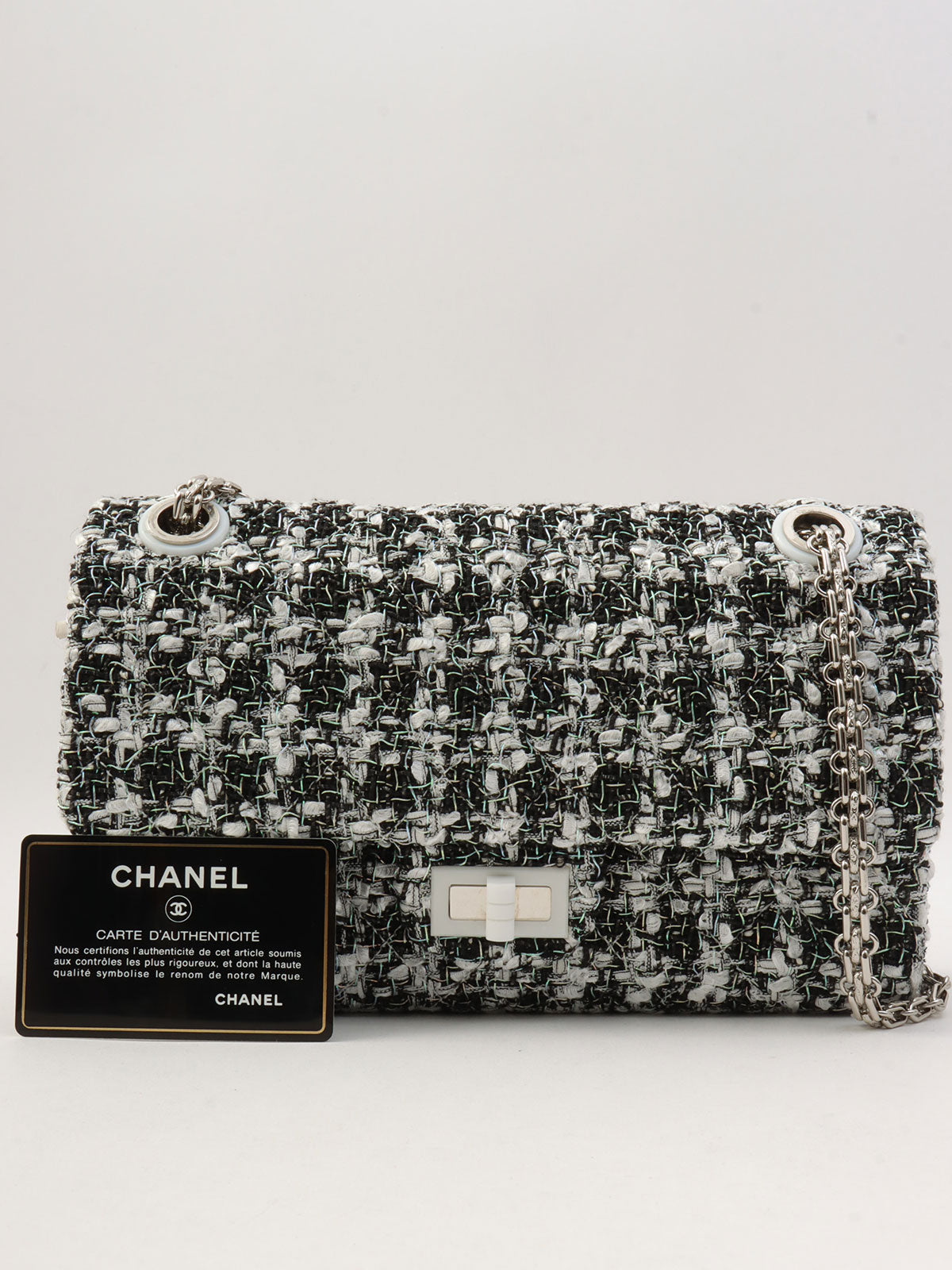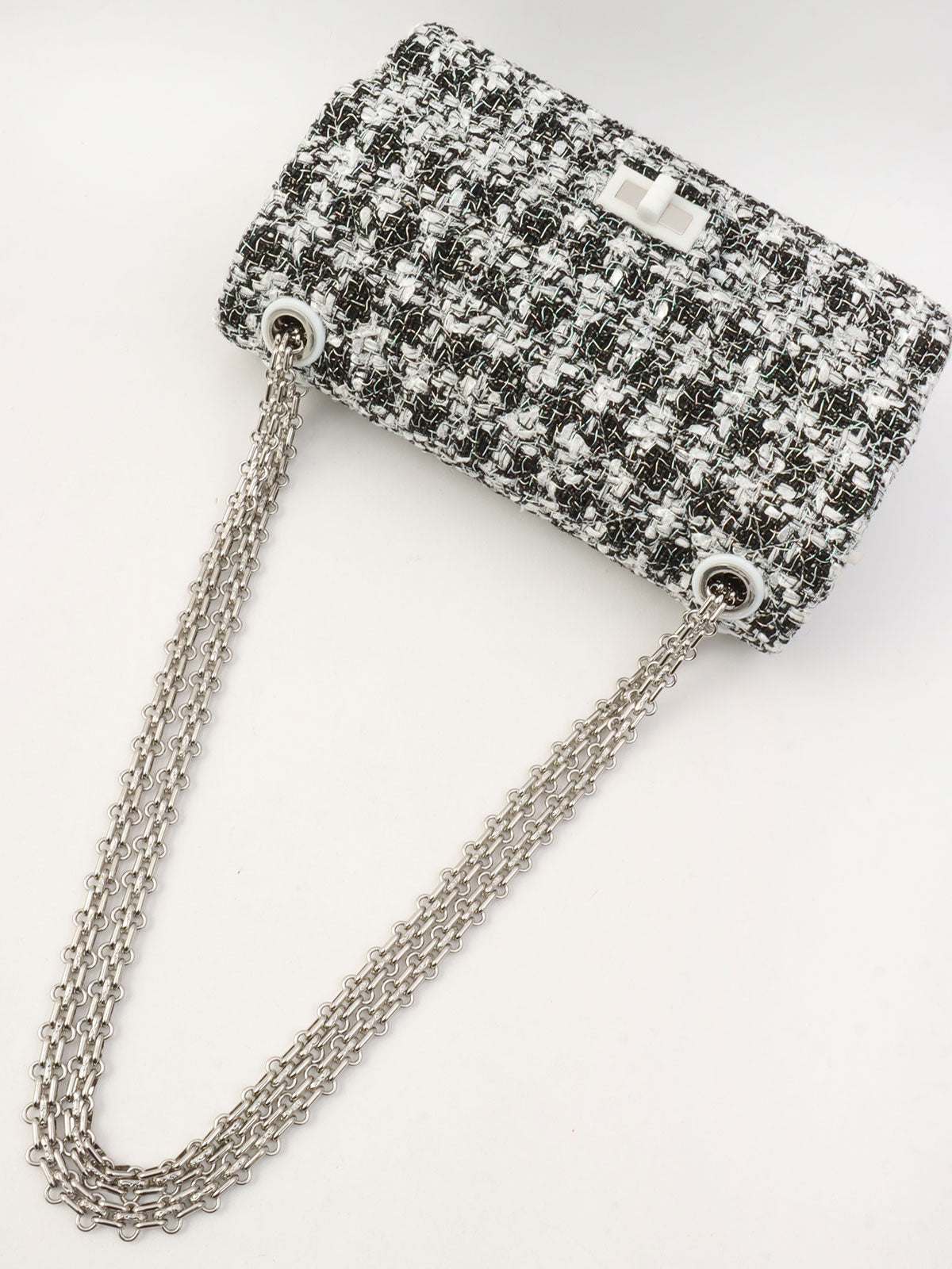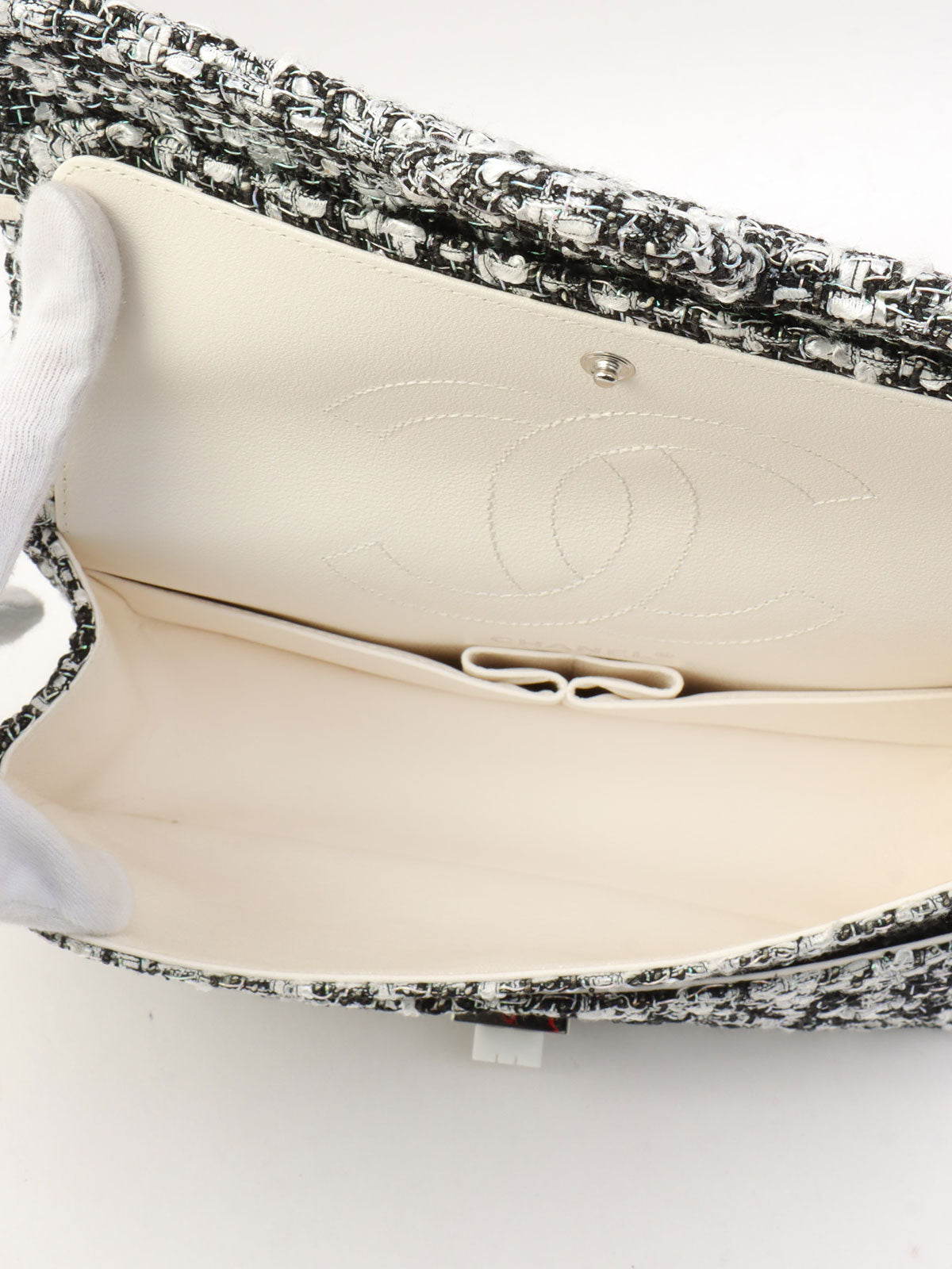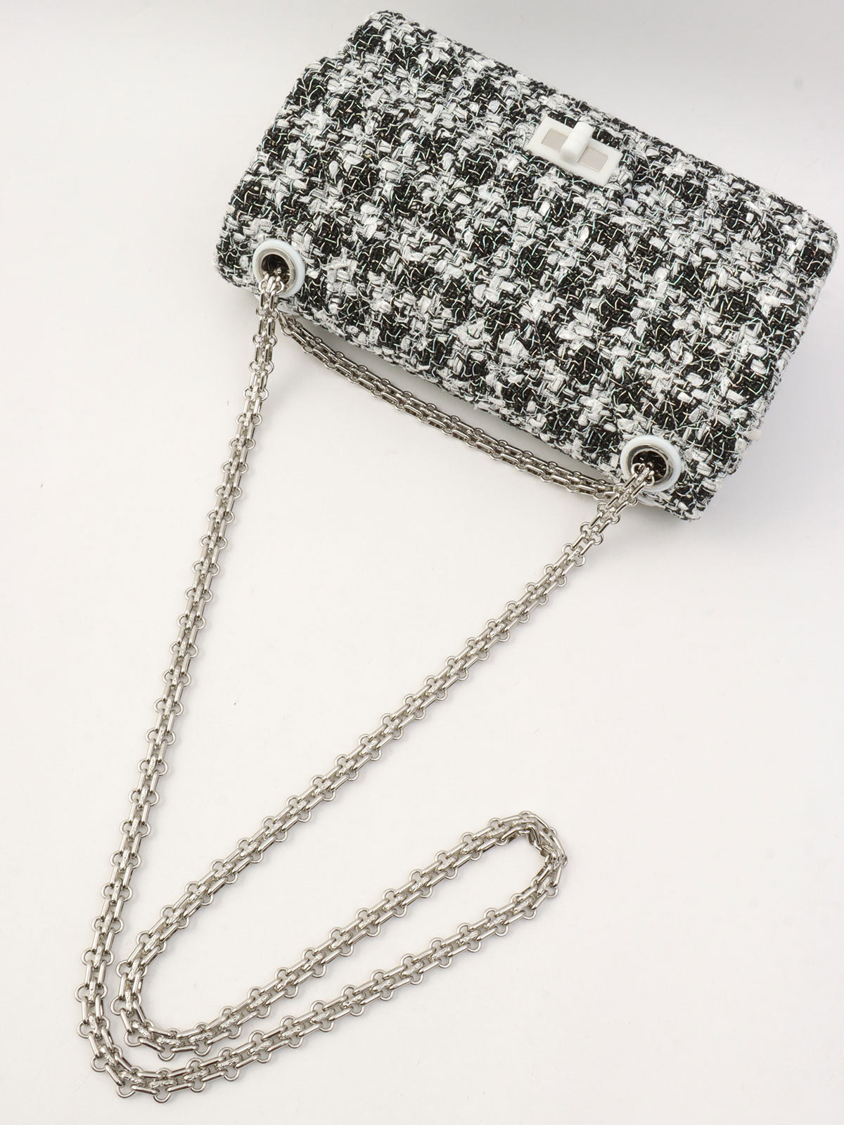 2020年頃製 ラメツイードダブルフラップ2.55チェーンショルダーバッグ ブラック/ホワイト