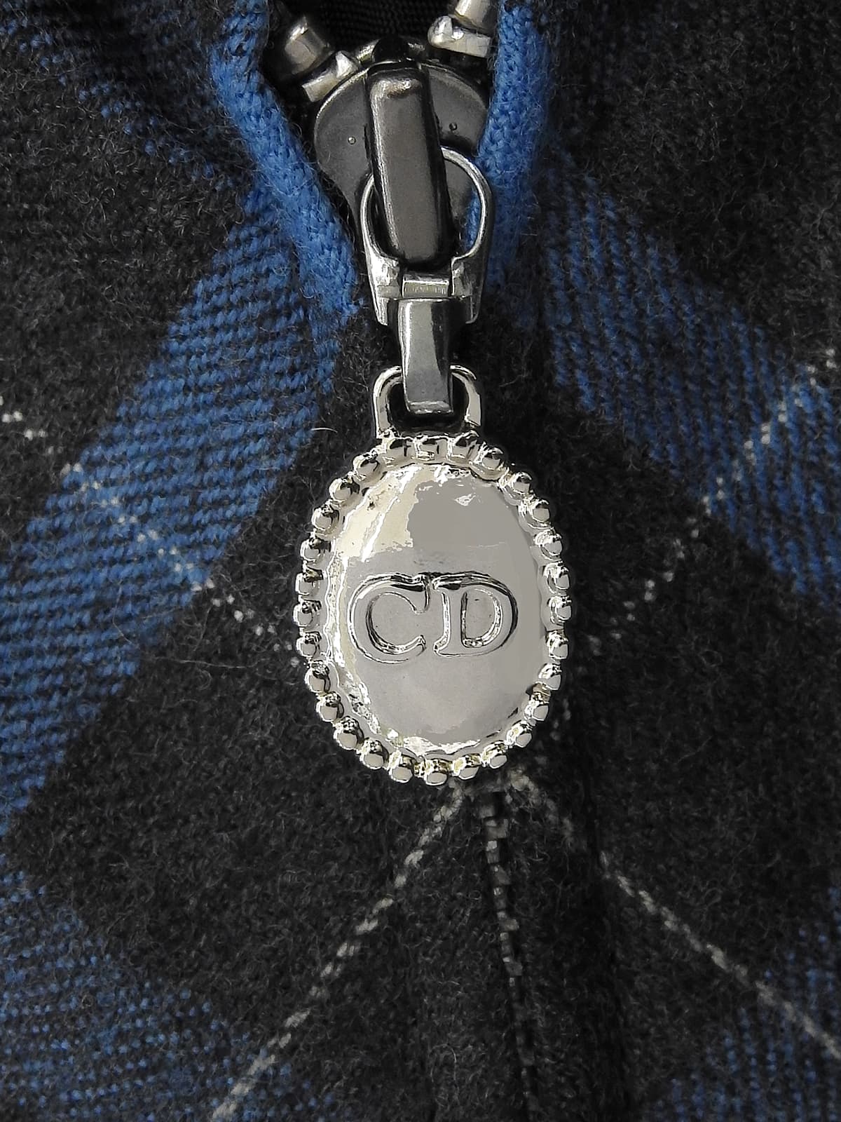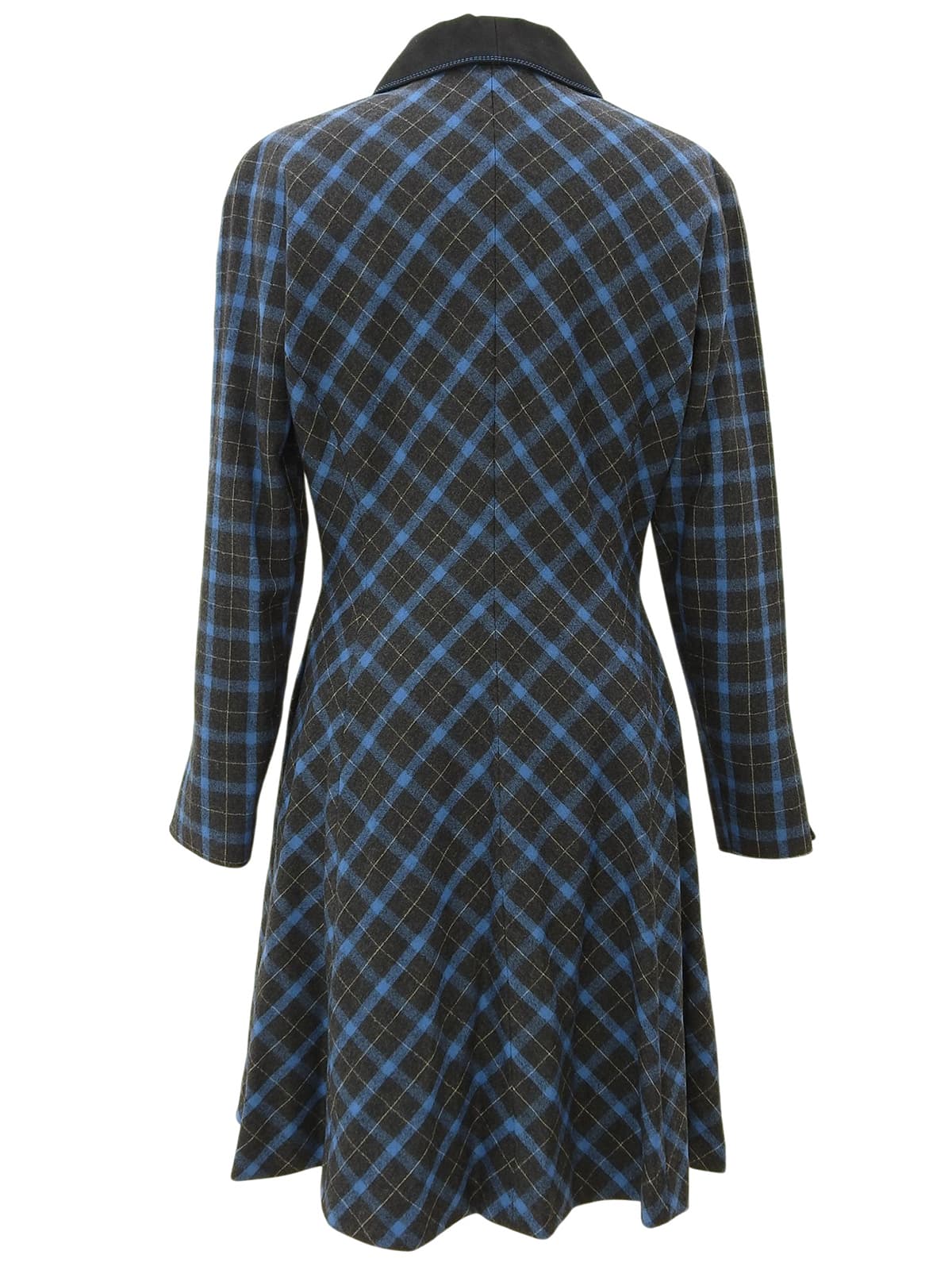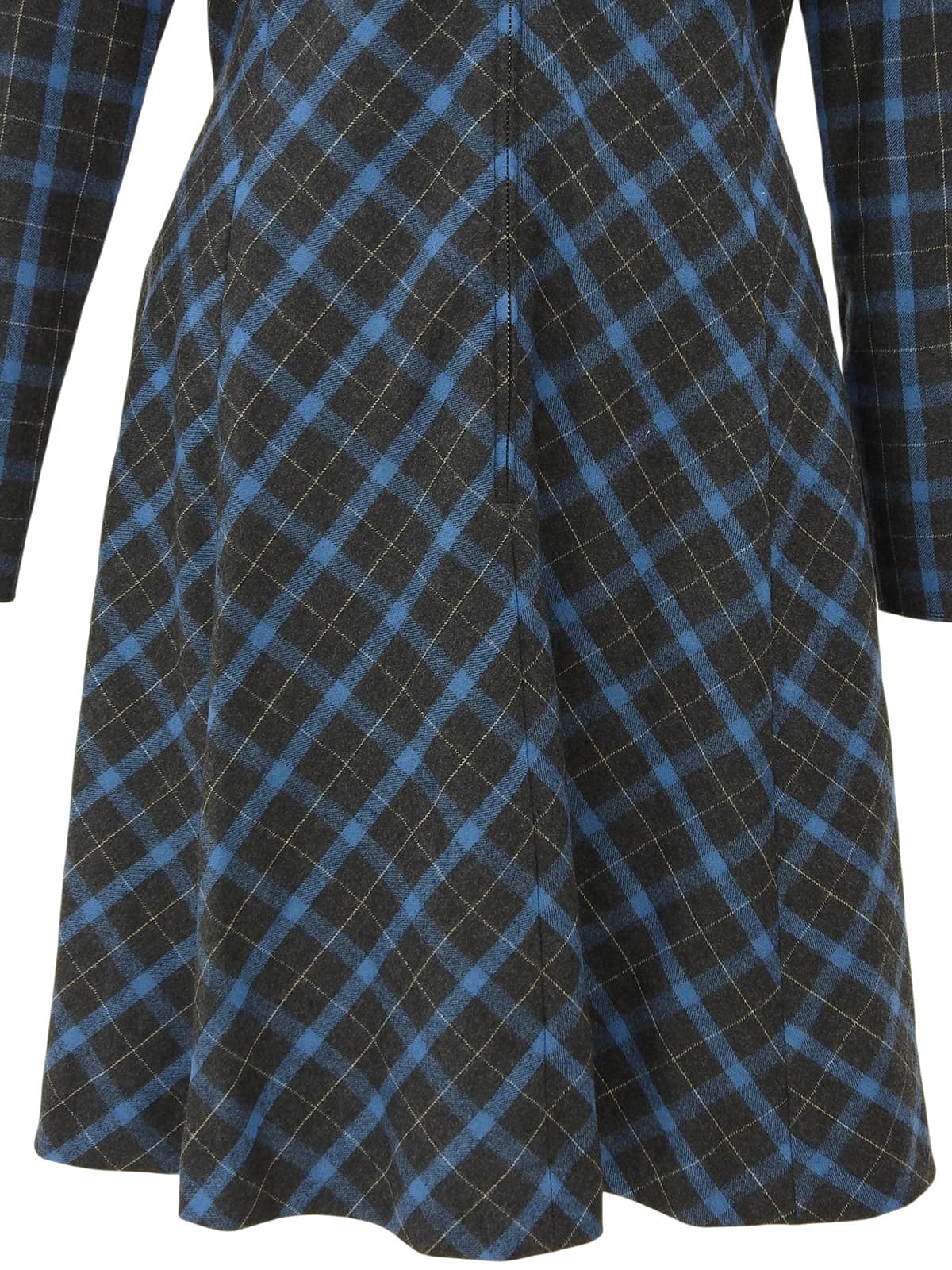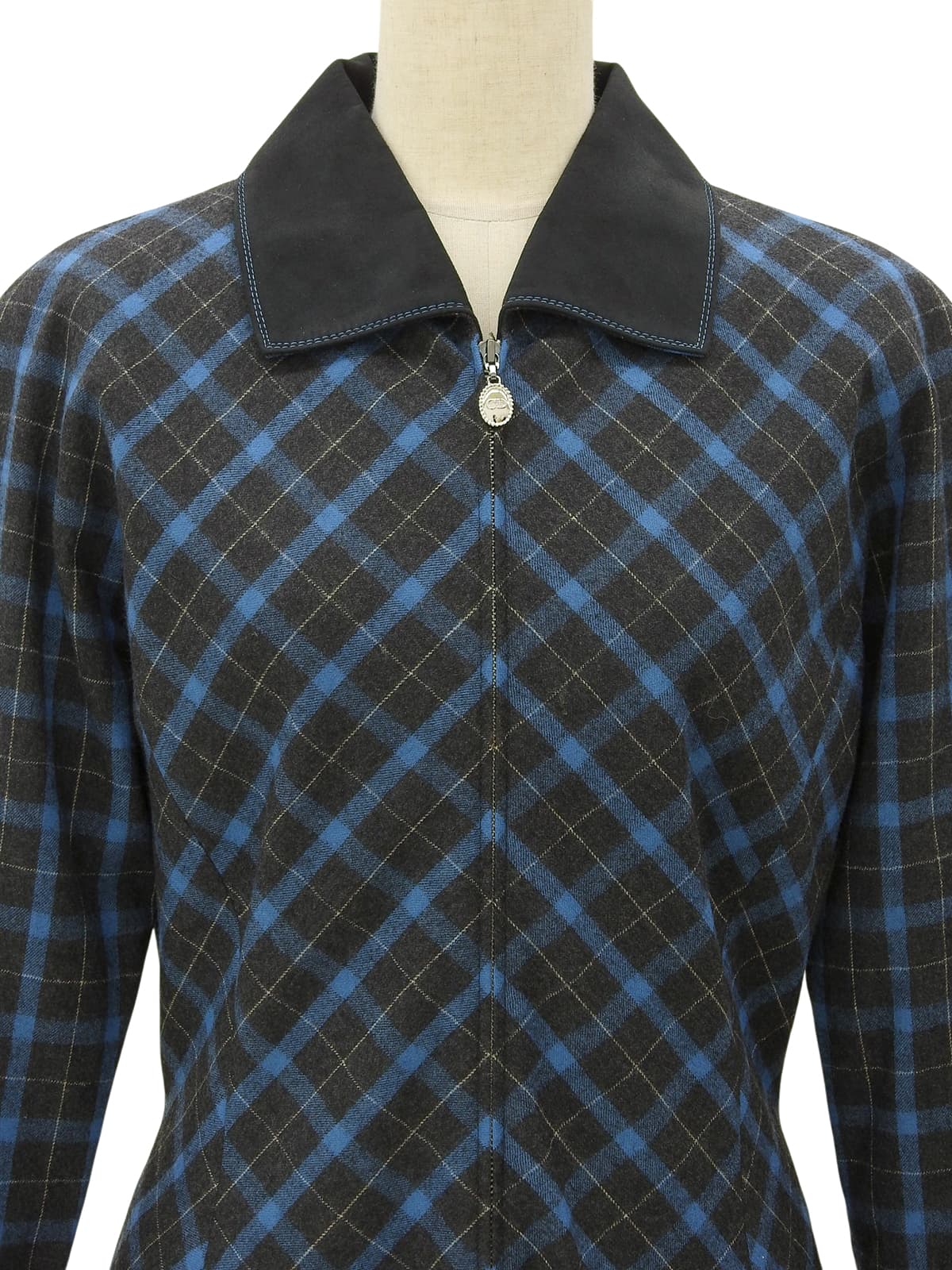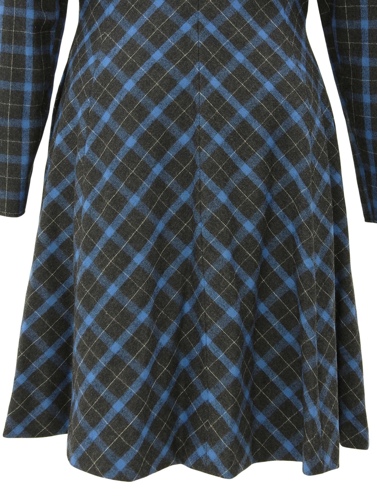 チェックパターンロゴジップアップ長袖ワンピース #L チャコールグレー/ブルー