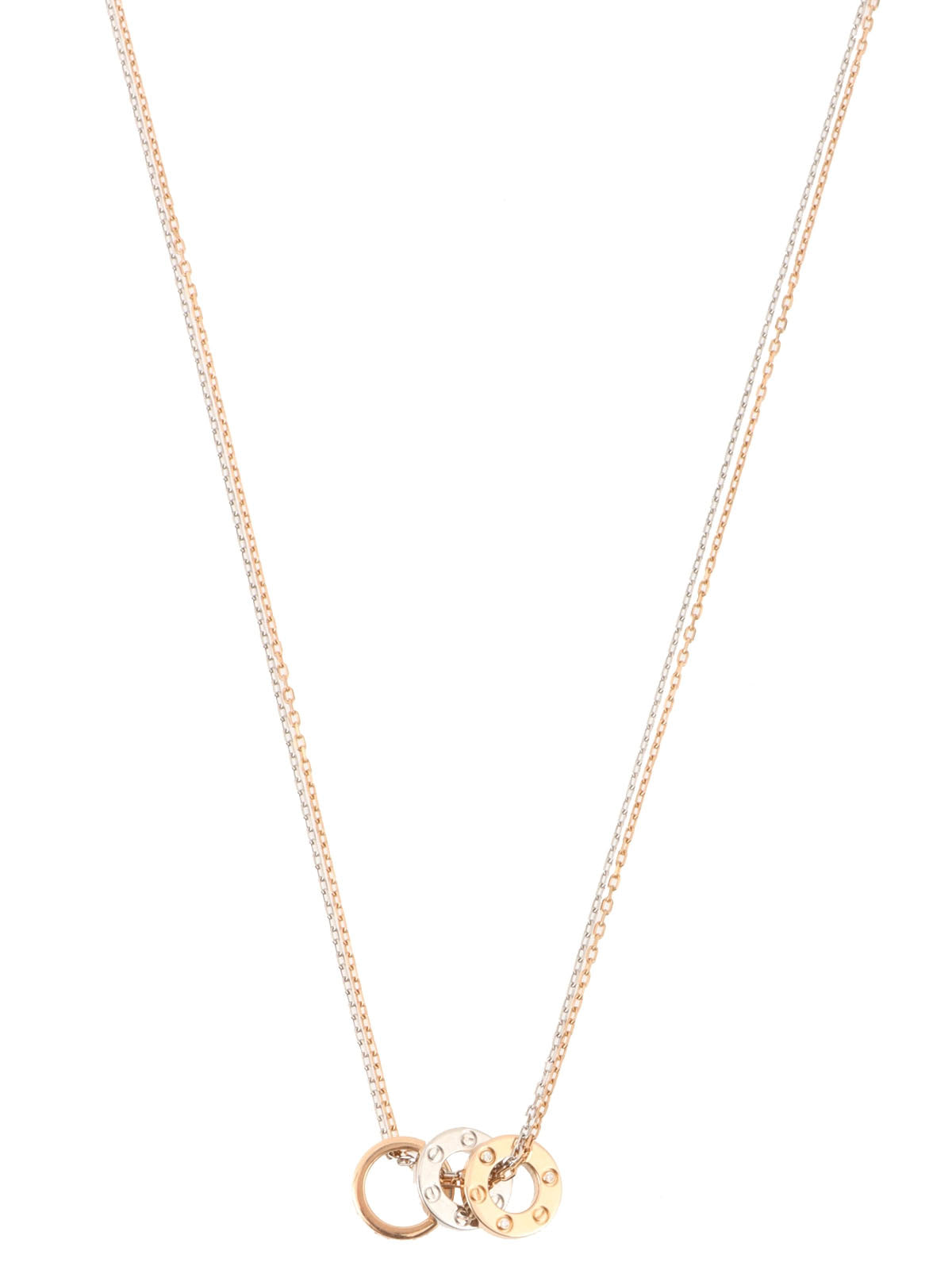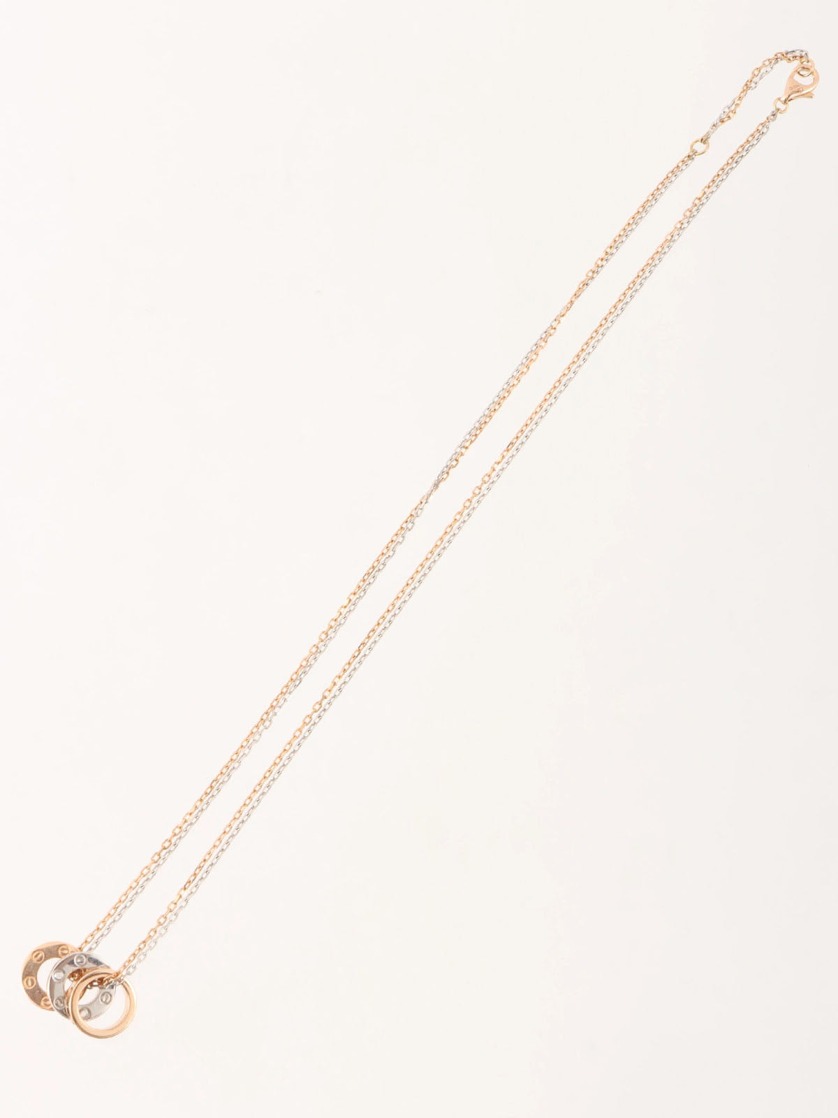 18Kダイヤモンドラブスリーフープネックレス シルバー/ローズゴールド