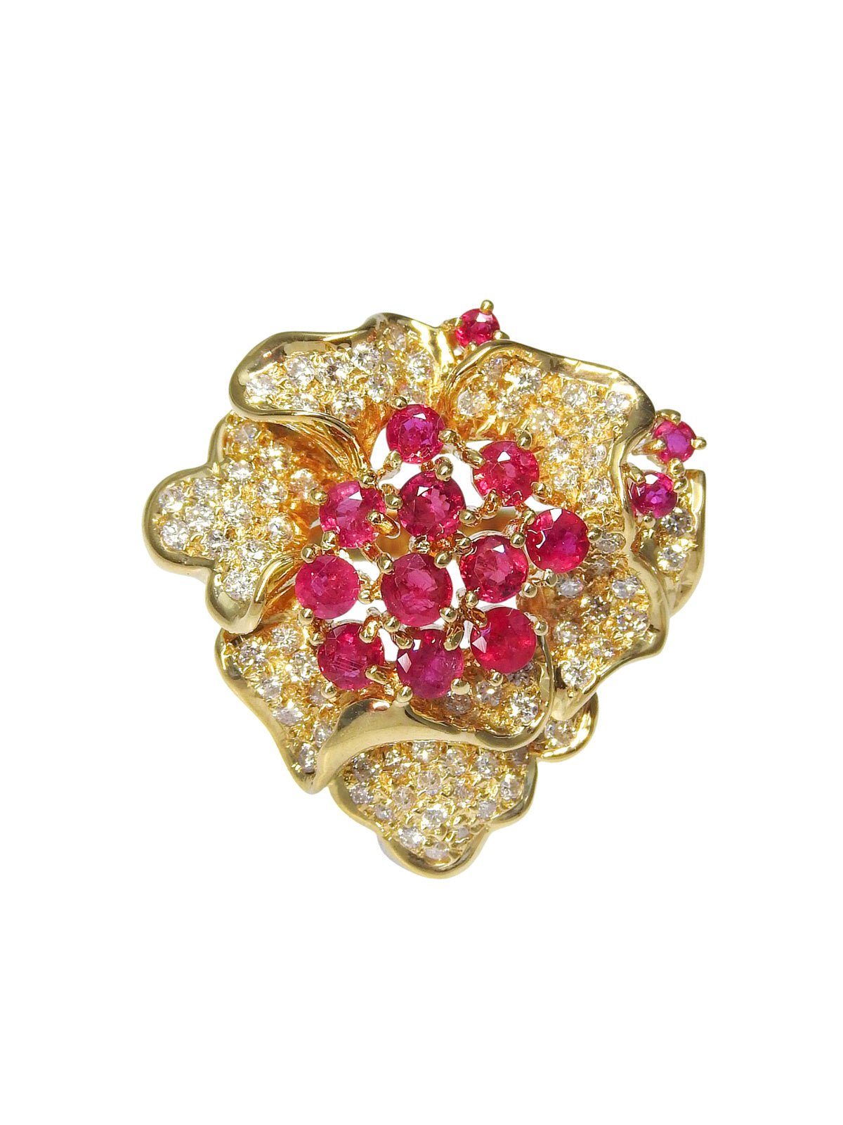 18Kルビーダイヤモンドデザインリング フューシャピンク/ゴールド