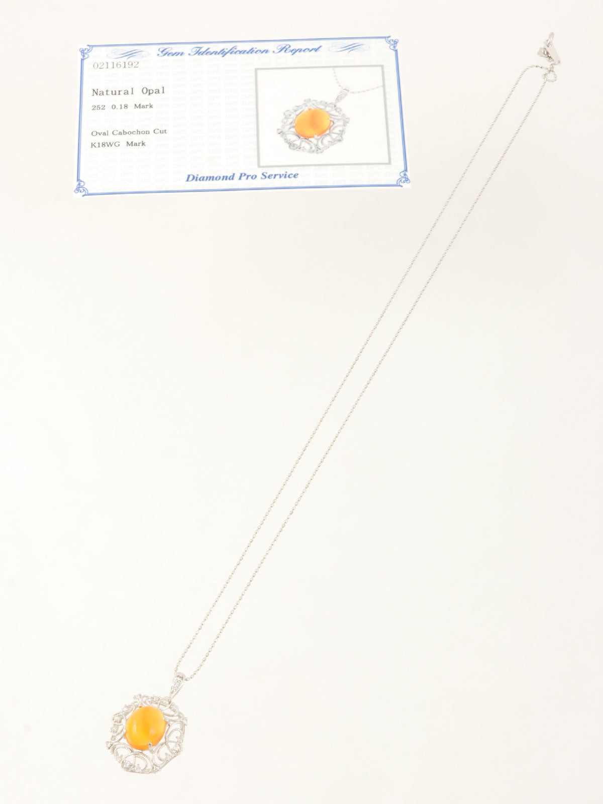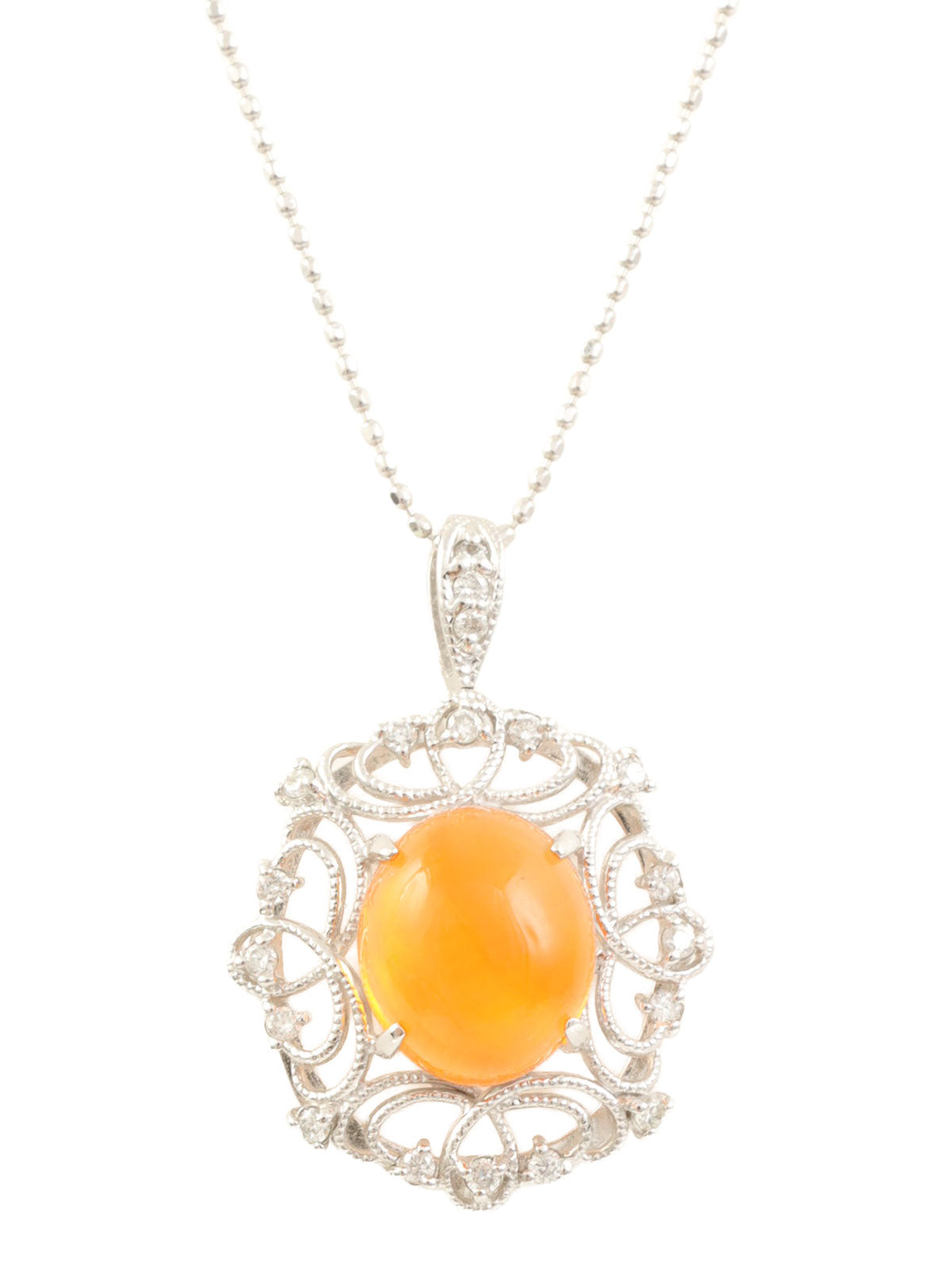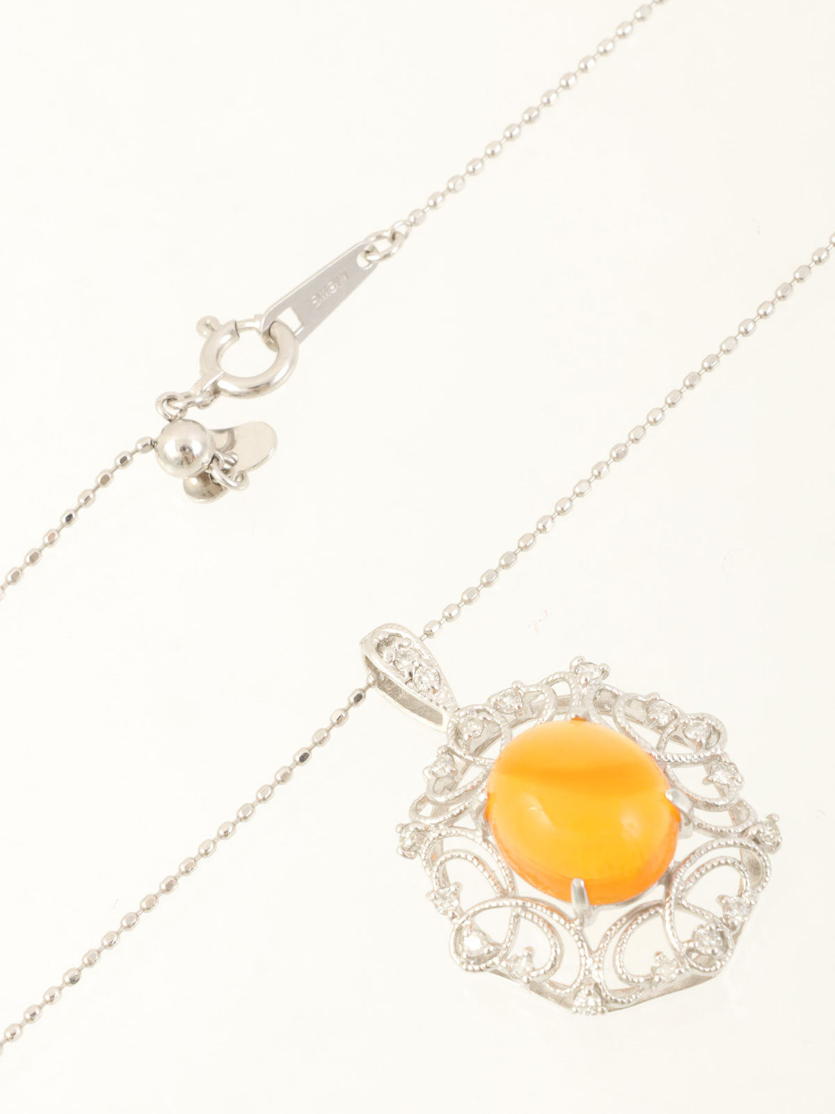 18Kオパールダイヤモンドデザインネックレス シルバー/オレンジ