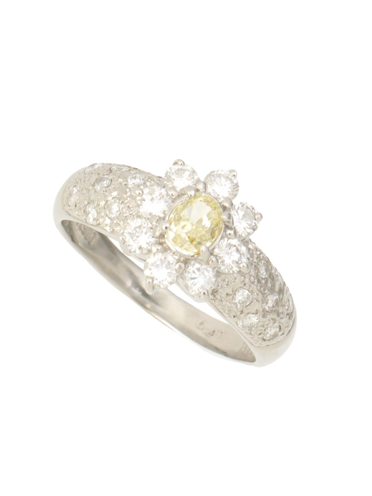 プラチナダイヤモンドフラワーモチーフリング シルバー/イエロー #13