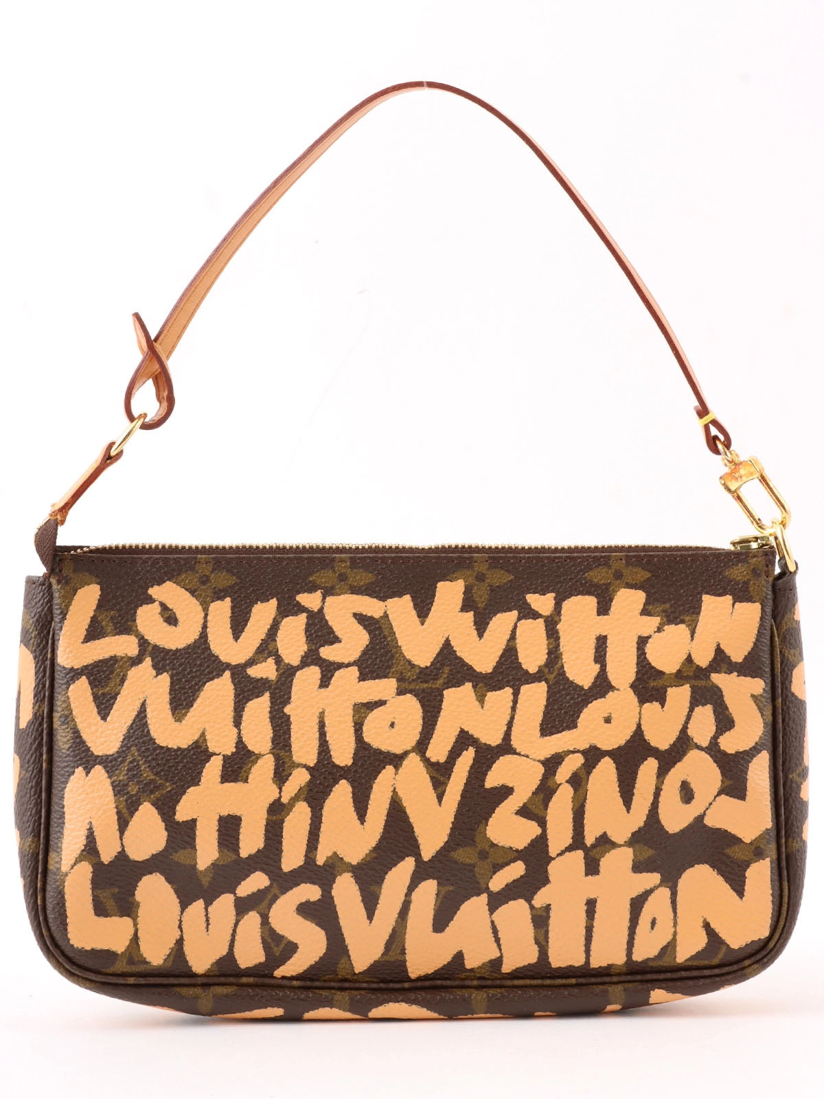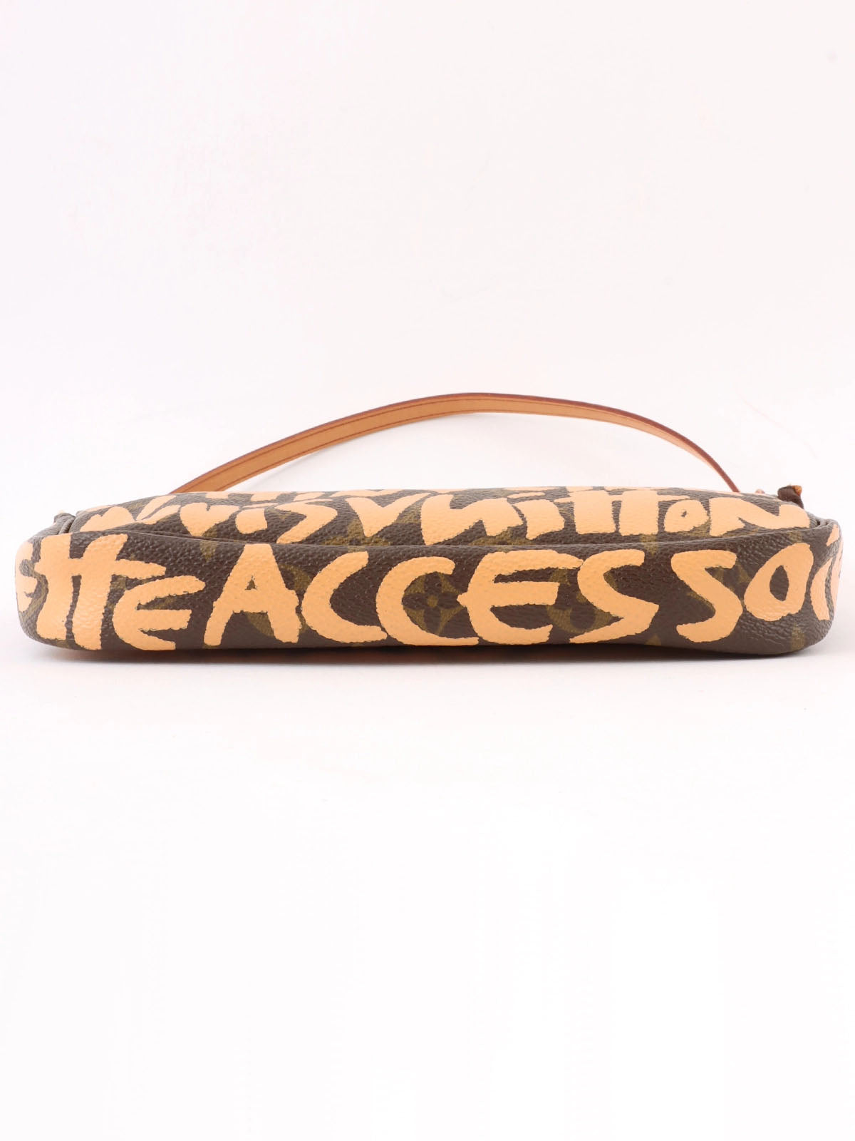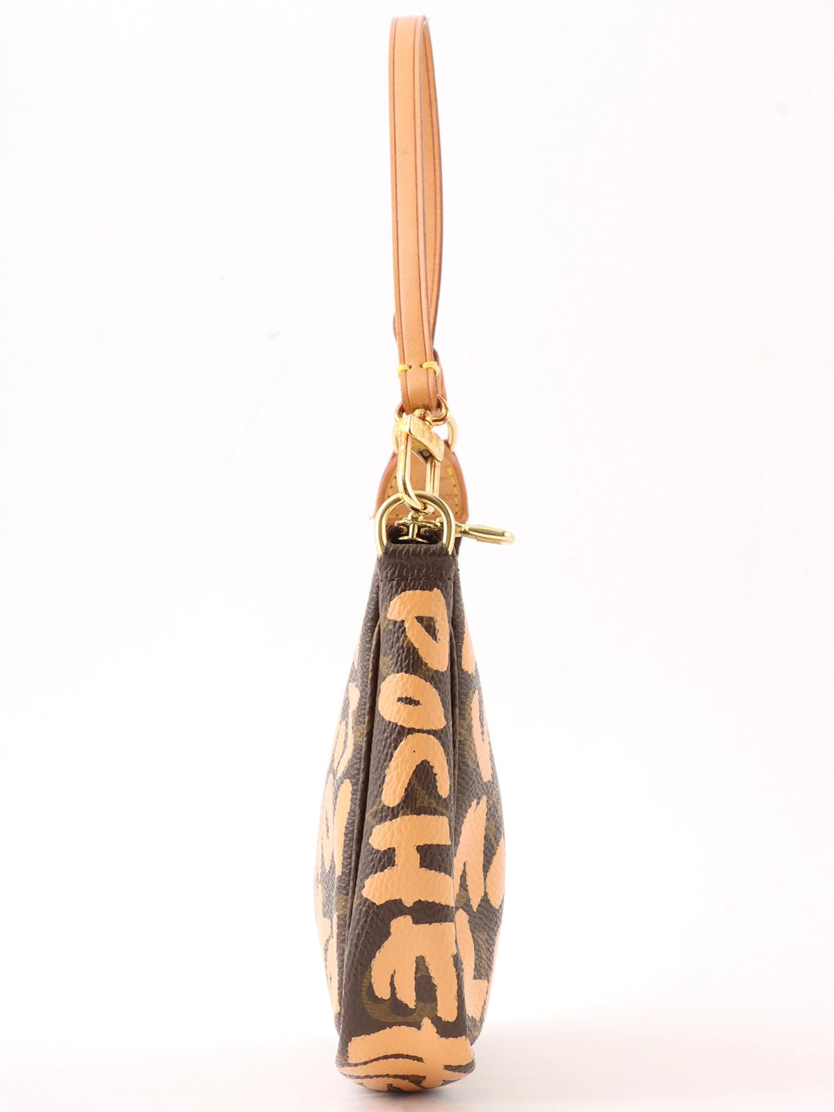2001 年帆布花押字涂鸦手拿包配件棕色/橙色