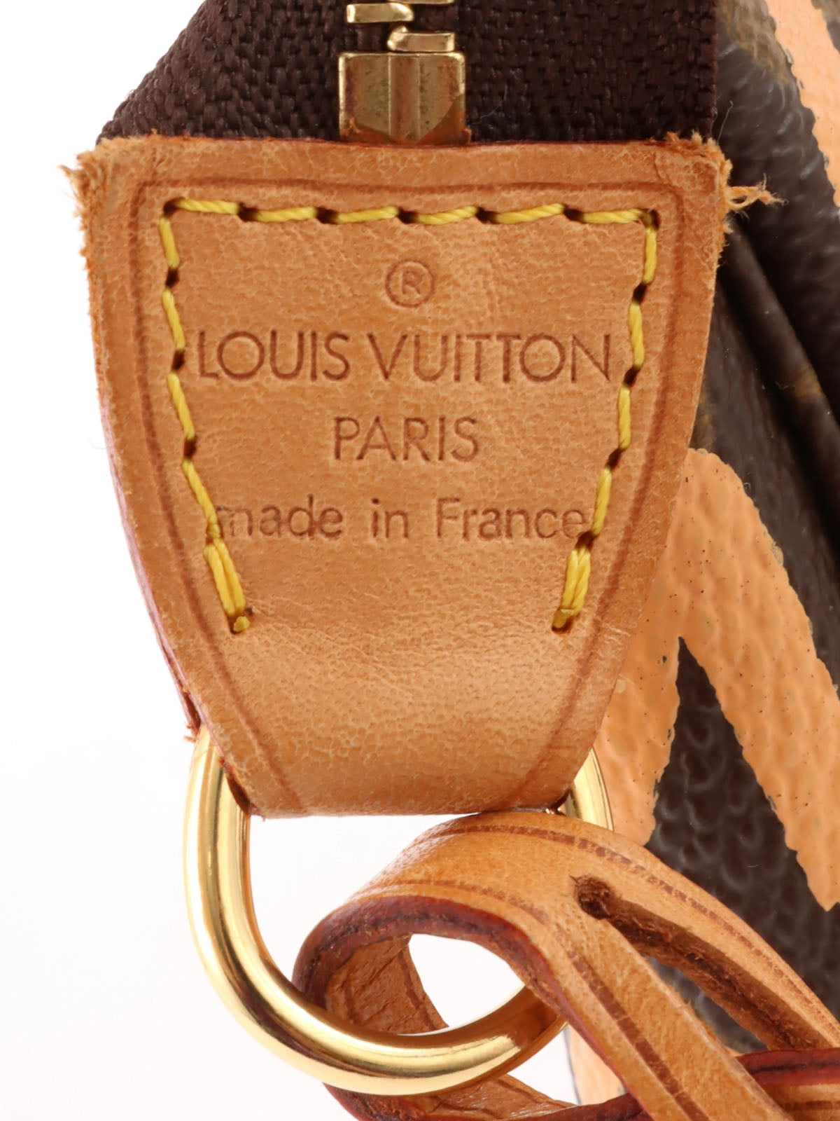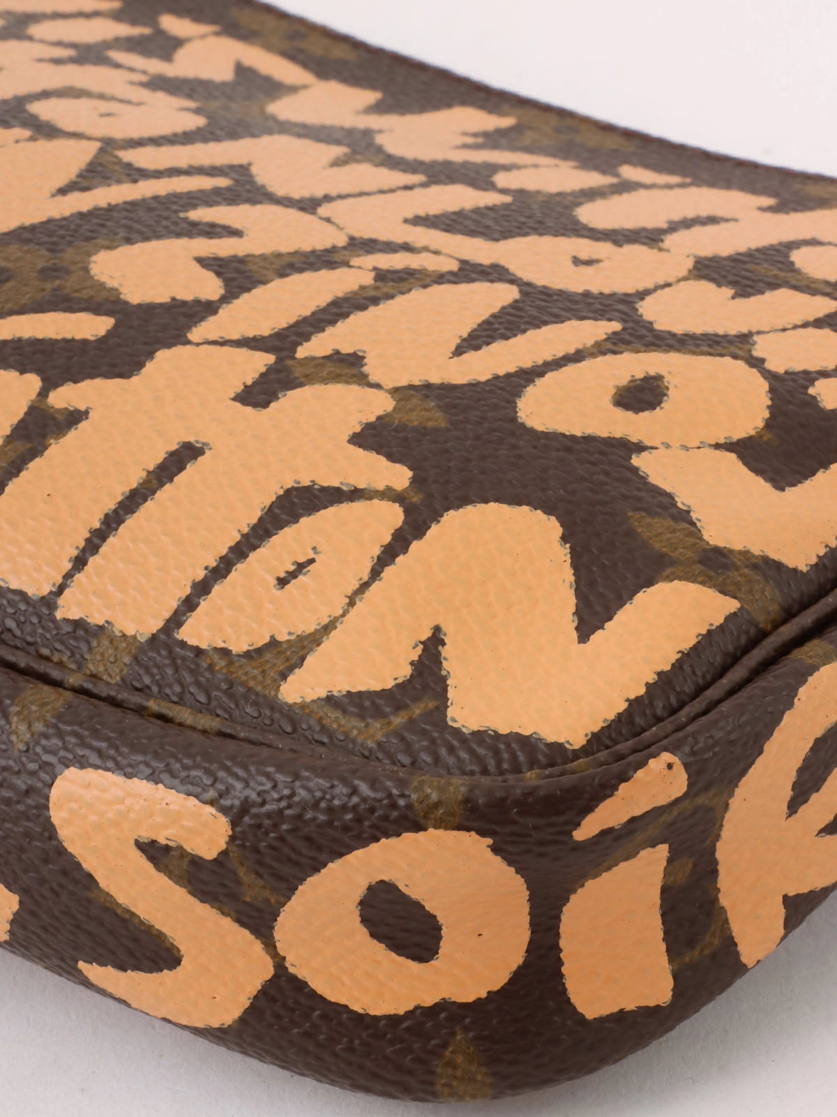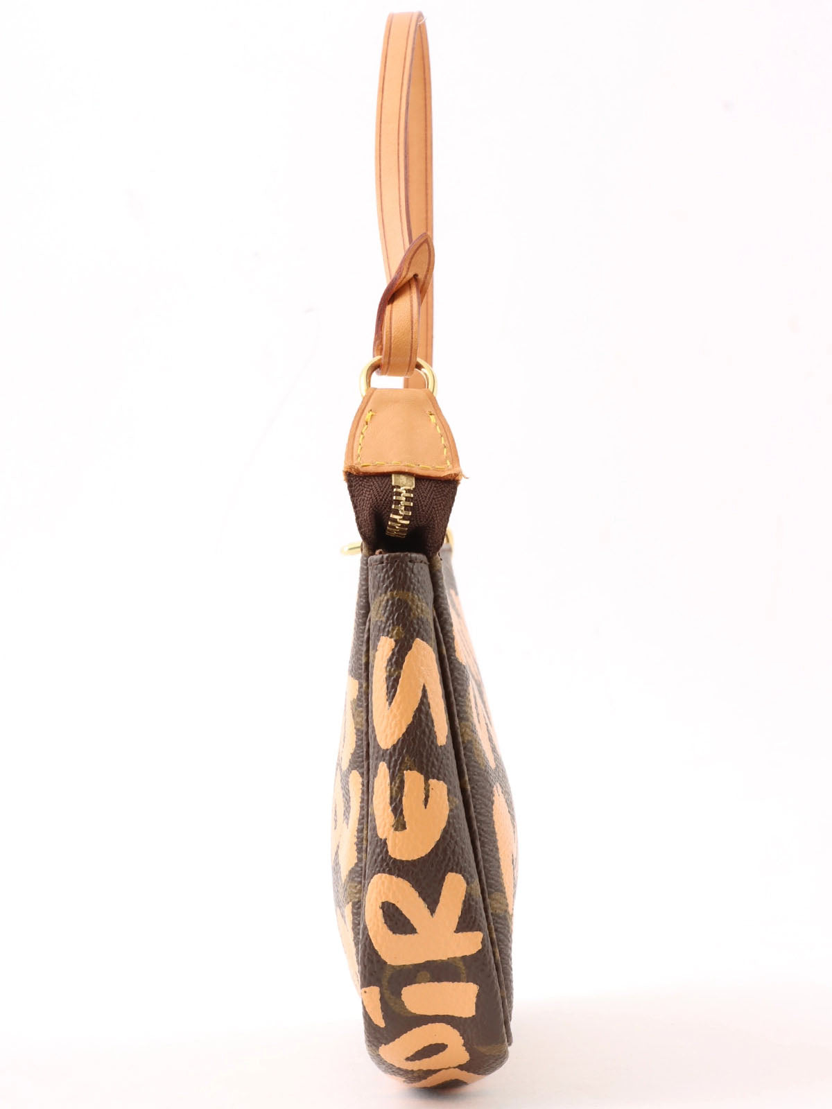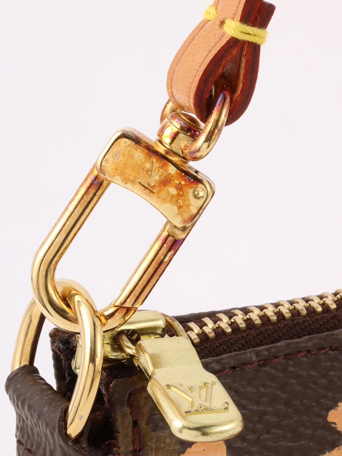 2001 年帆布花押字涂鸦手拿包配件棕色/橙色